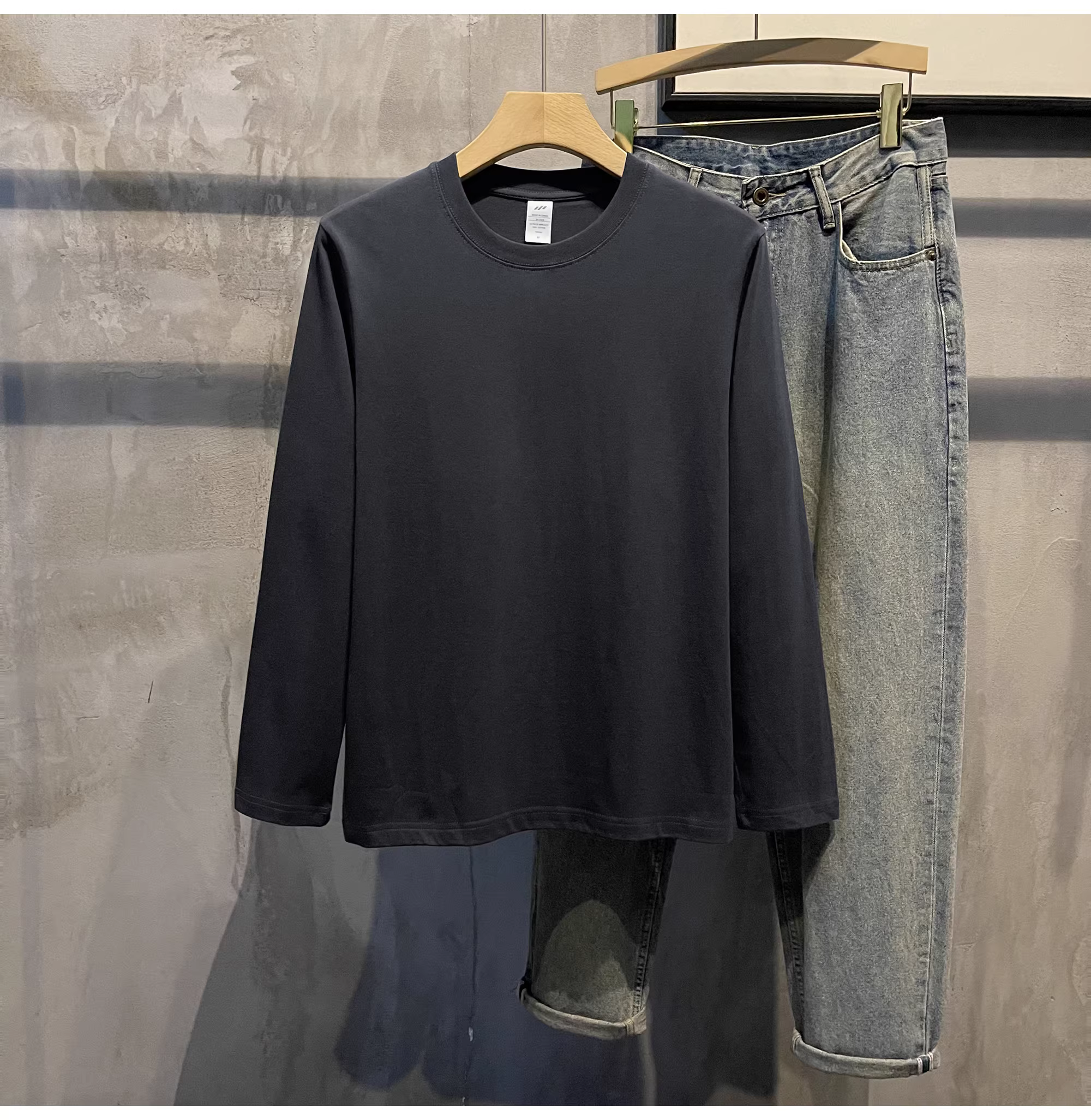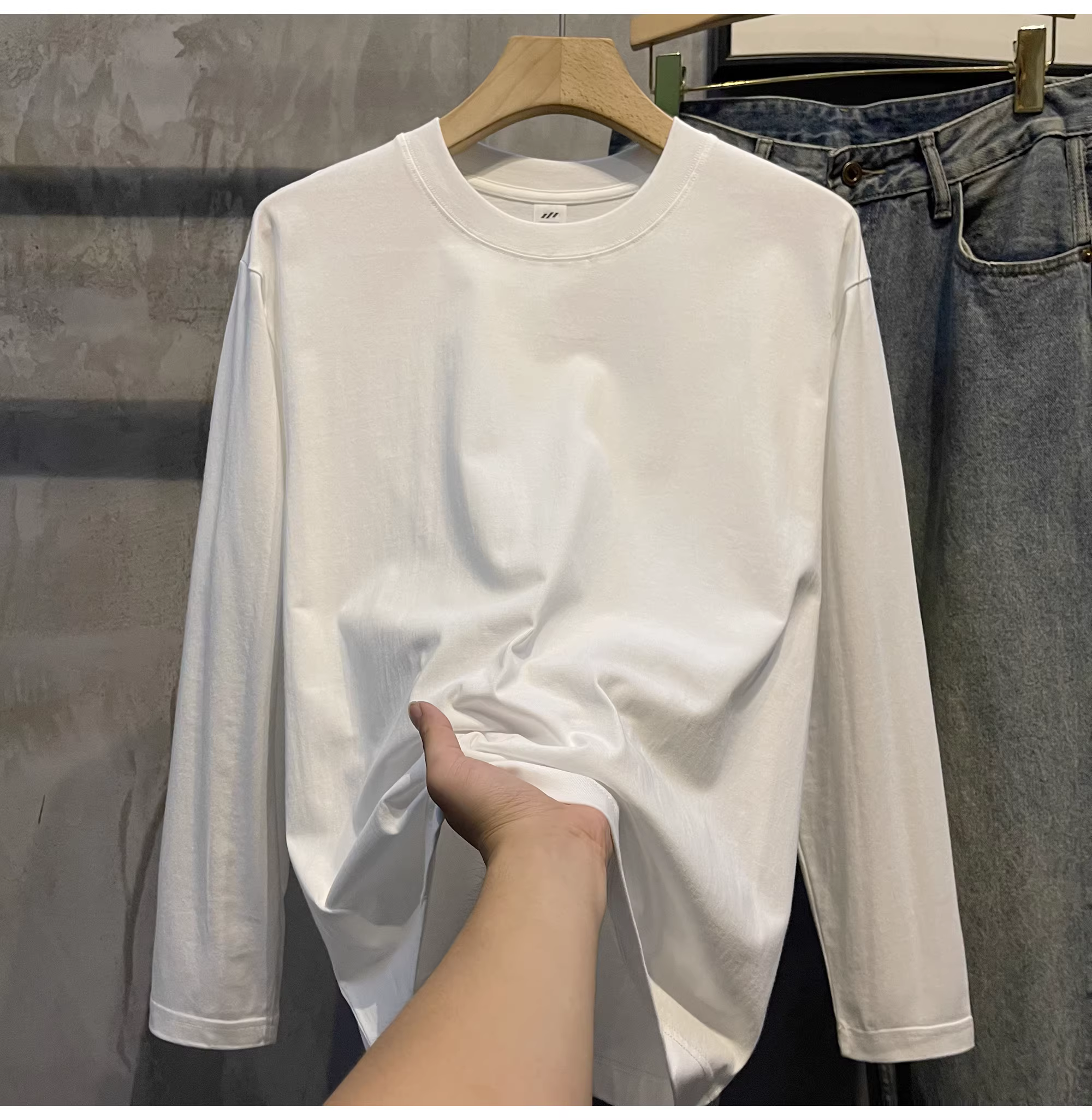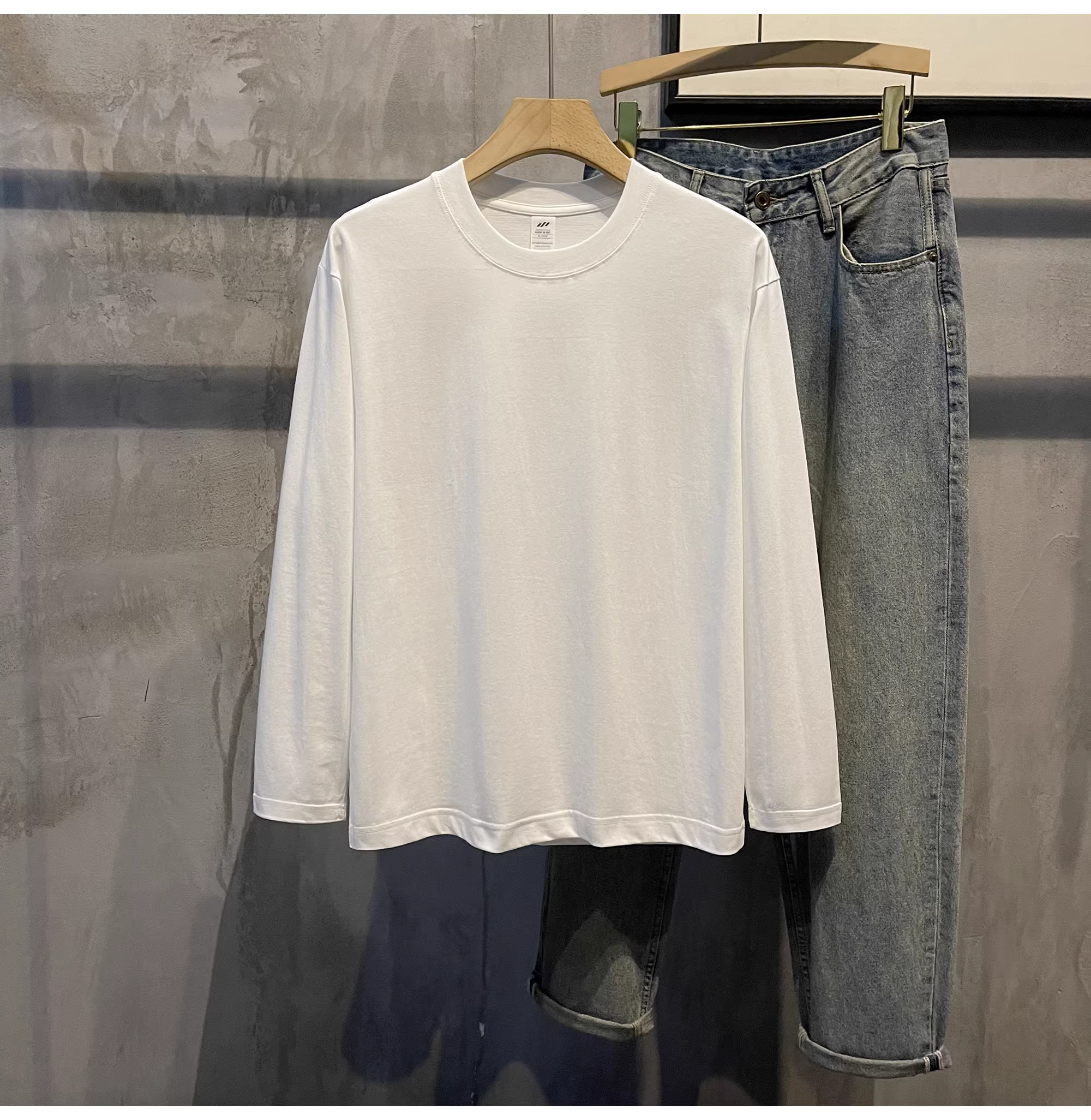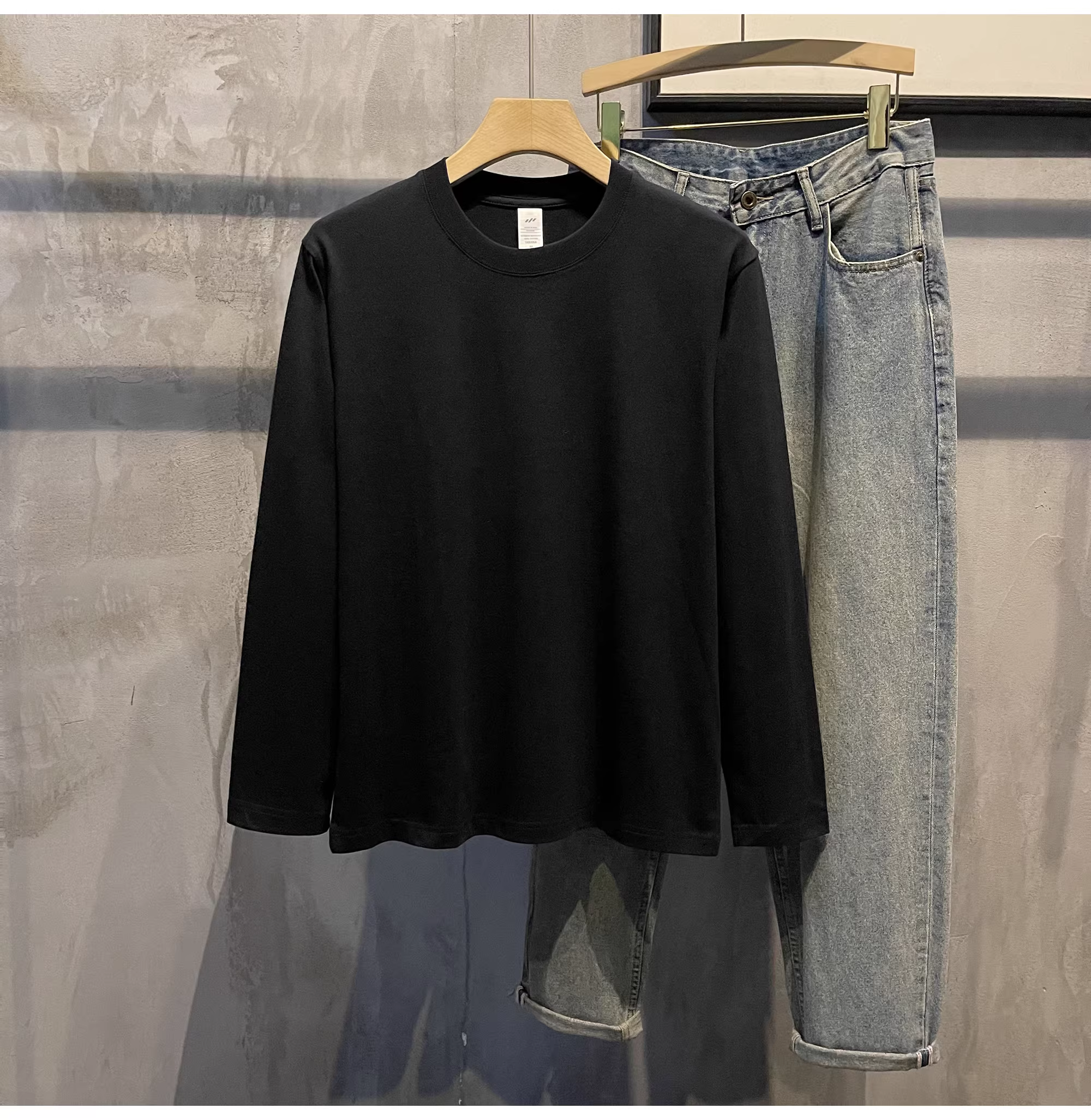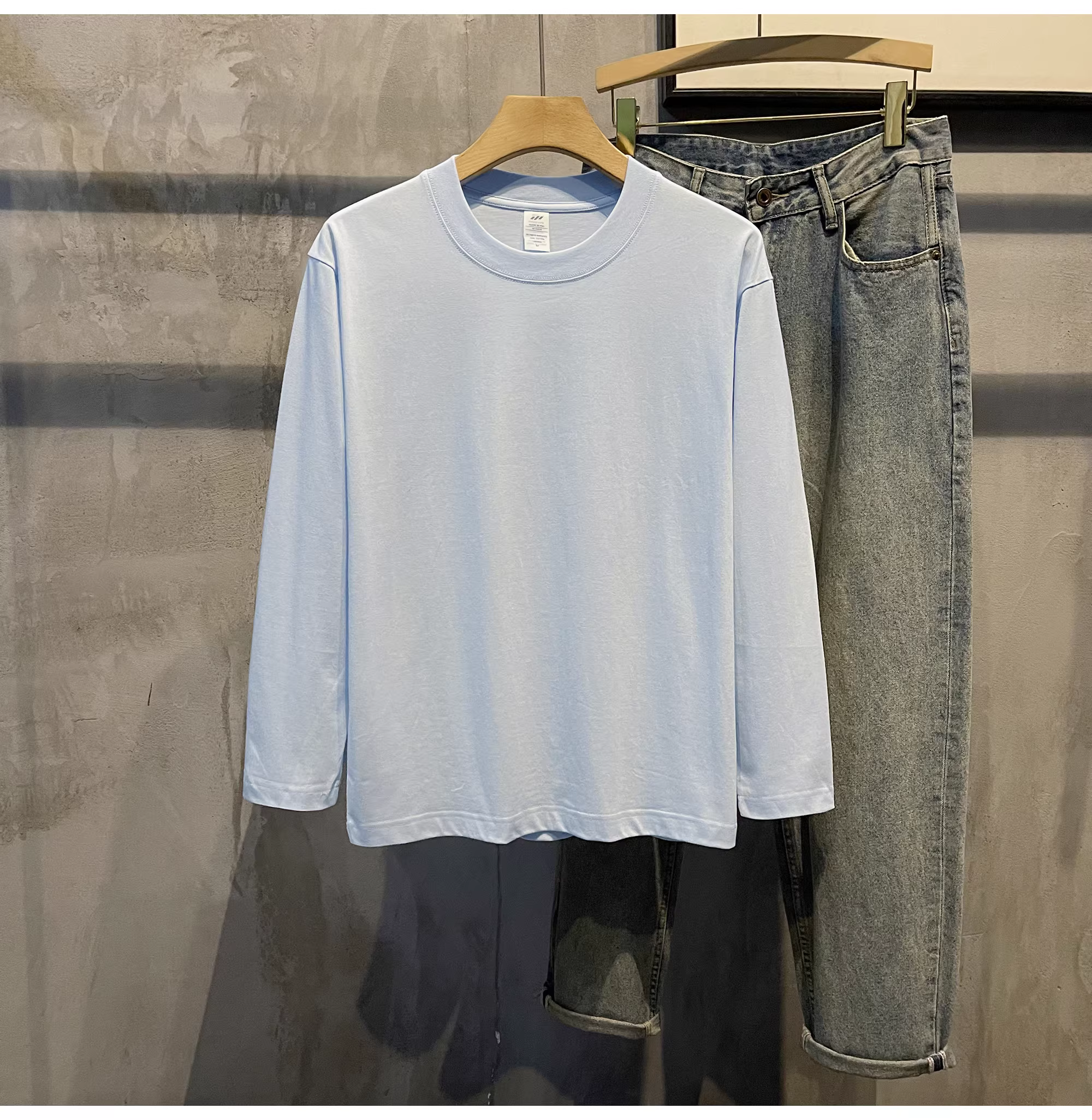 - Áo thun dài tay LUUD 230G bằng cotton chải kỹ dành cho nam, áo màu trơn, áo lót thoải mái, áo chui đầu cổ tròn, hợp thời trang.