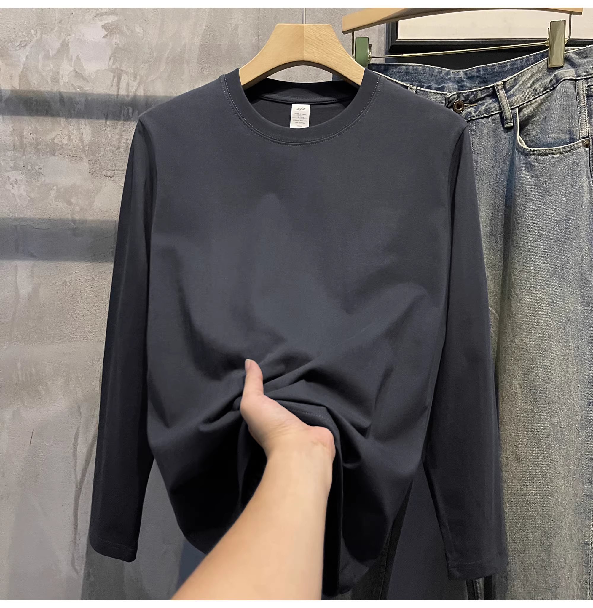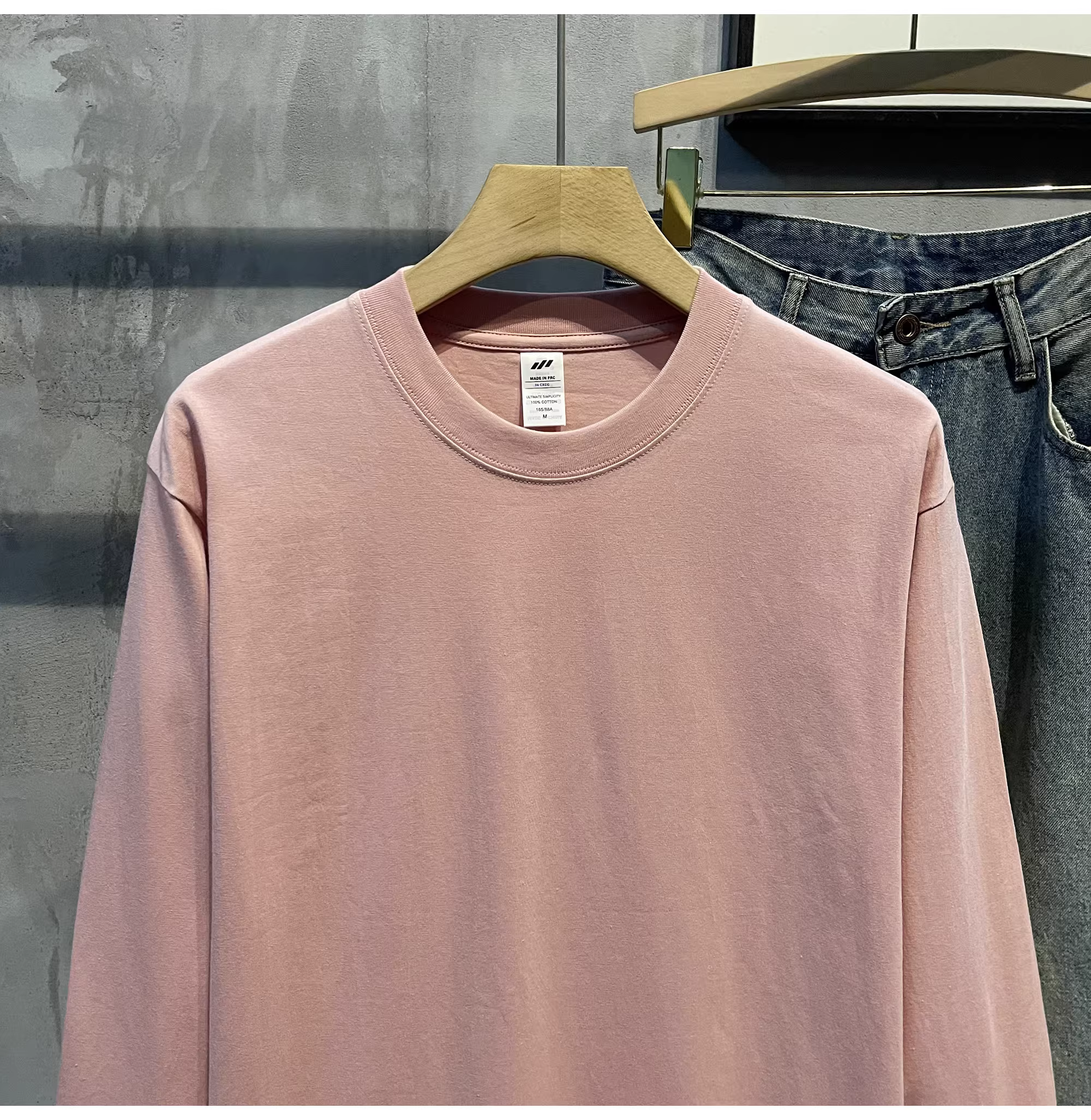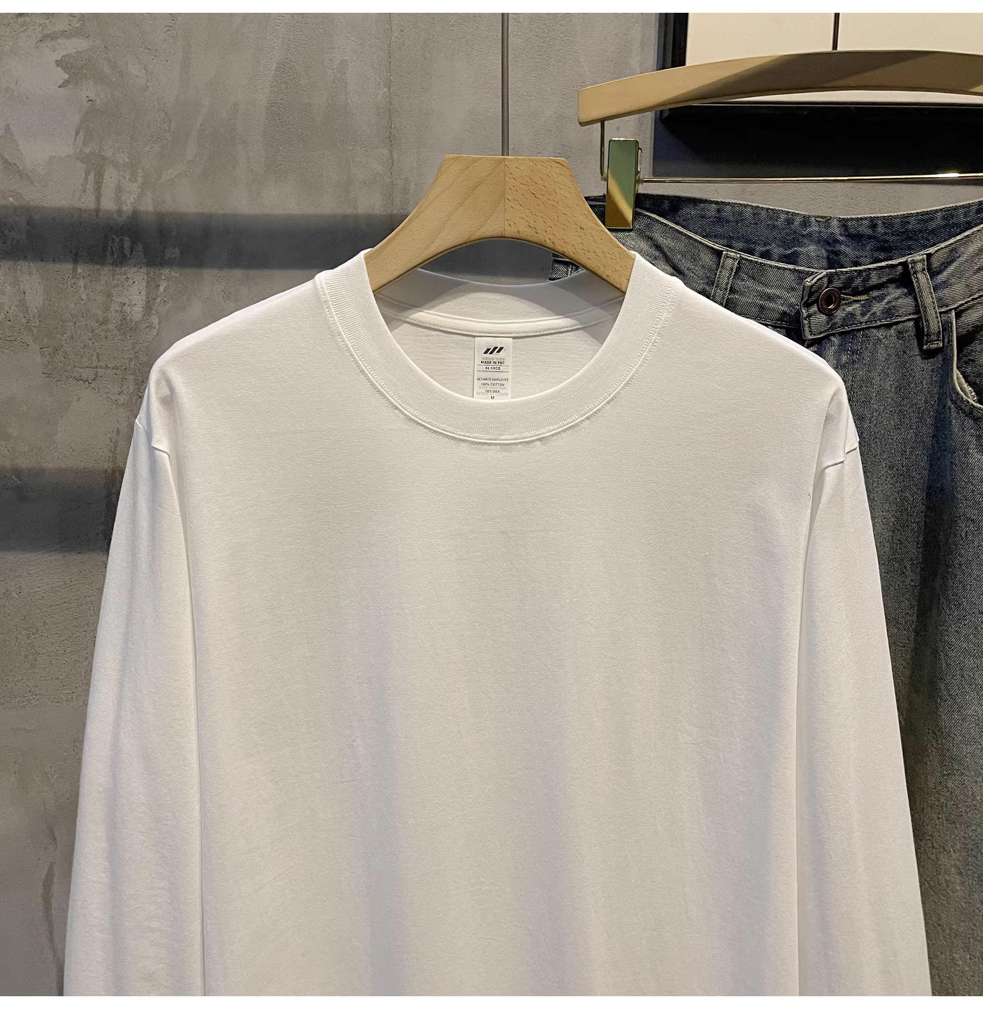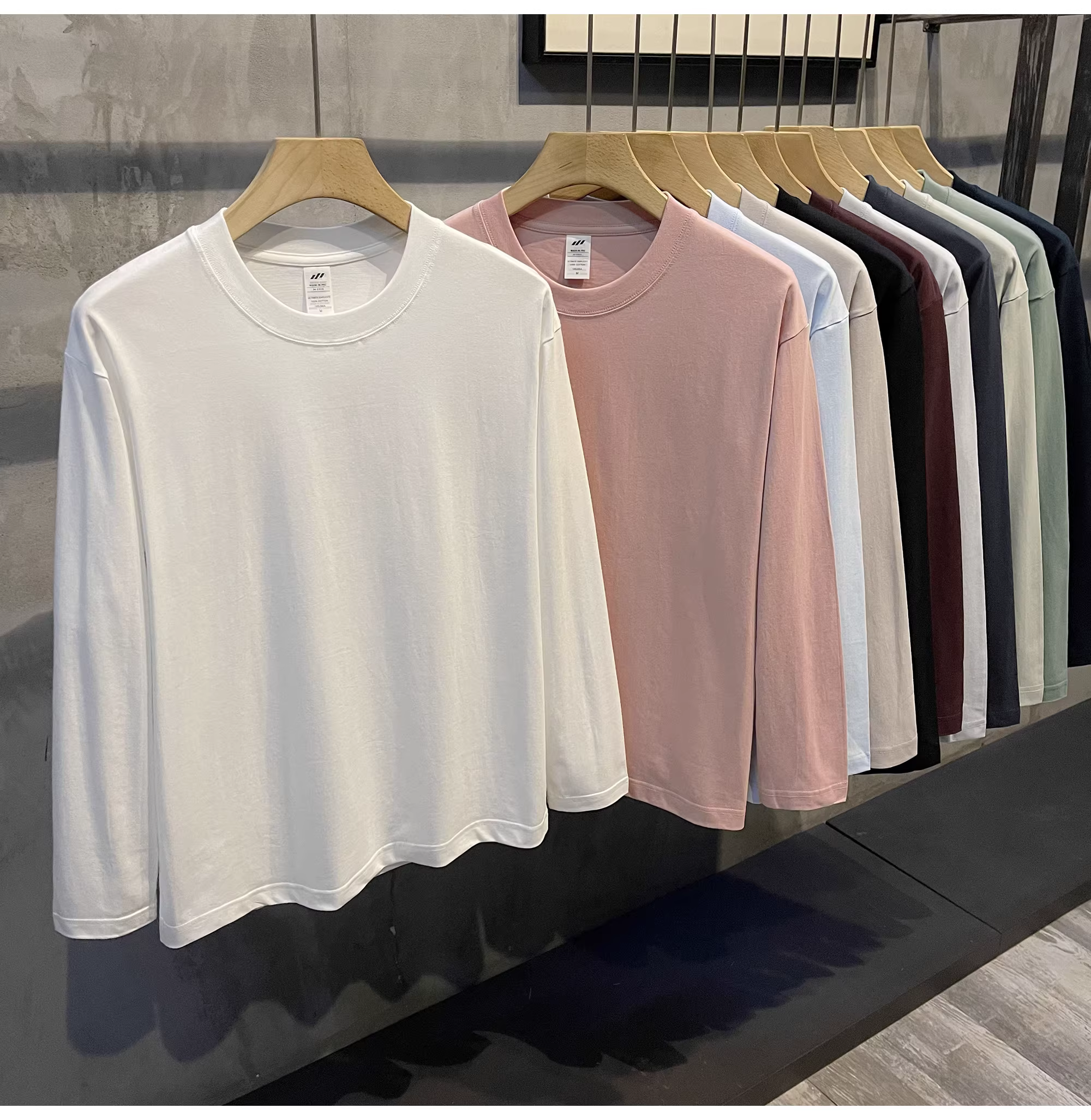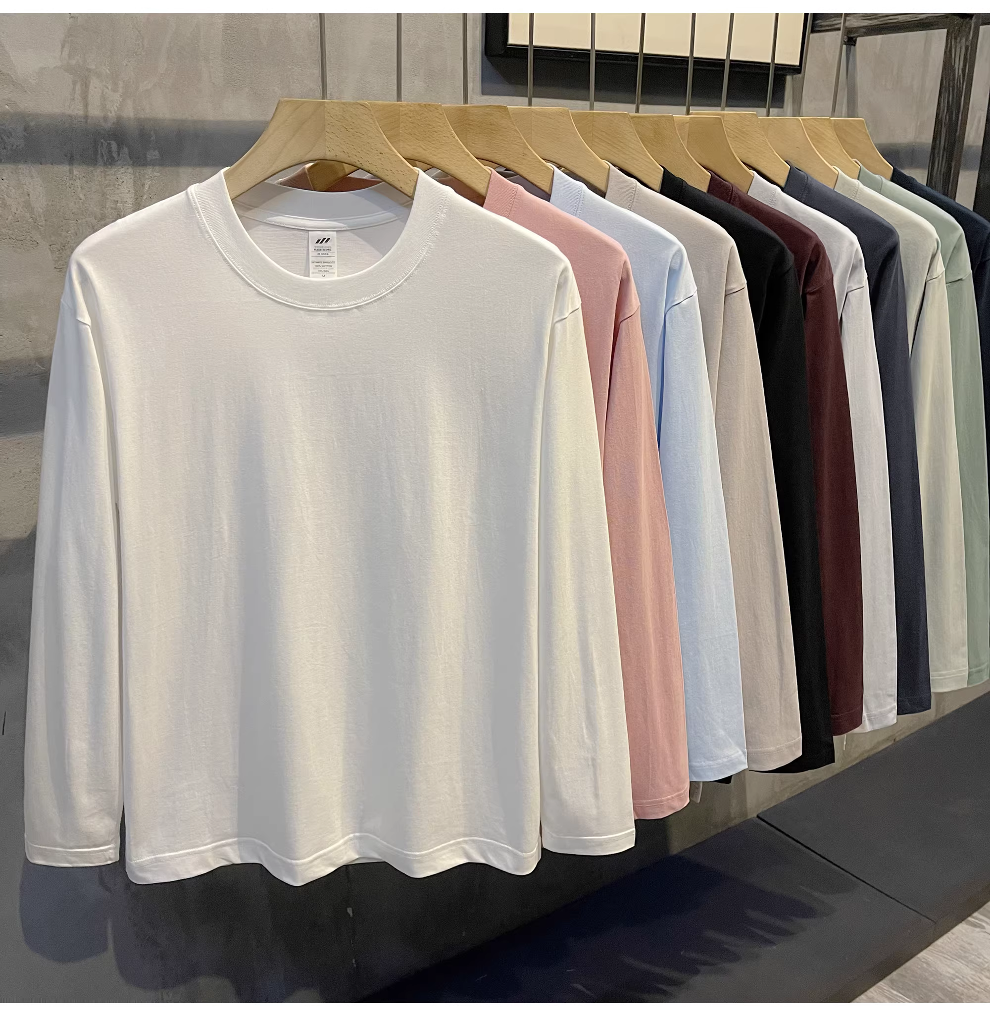 Áo thun dài tay LUUD 230G bằng cotton chải kỹ dành cho nam, áo màu trơn, áo lót thoải mái, áo chui đầu cổ tròn, hợp thời trang.