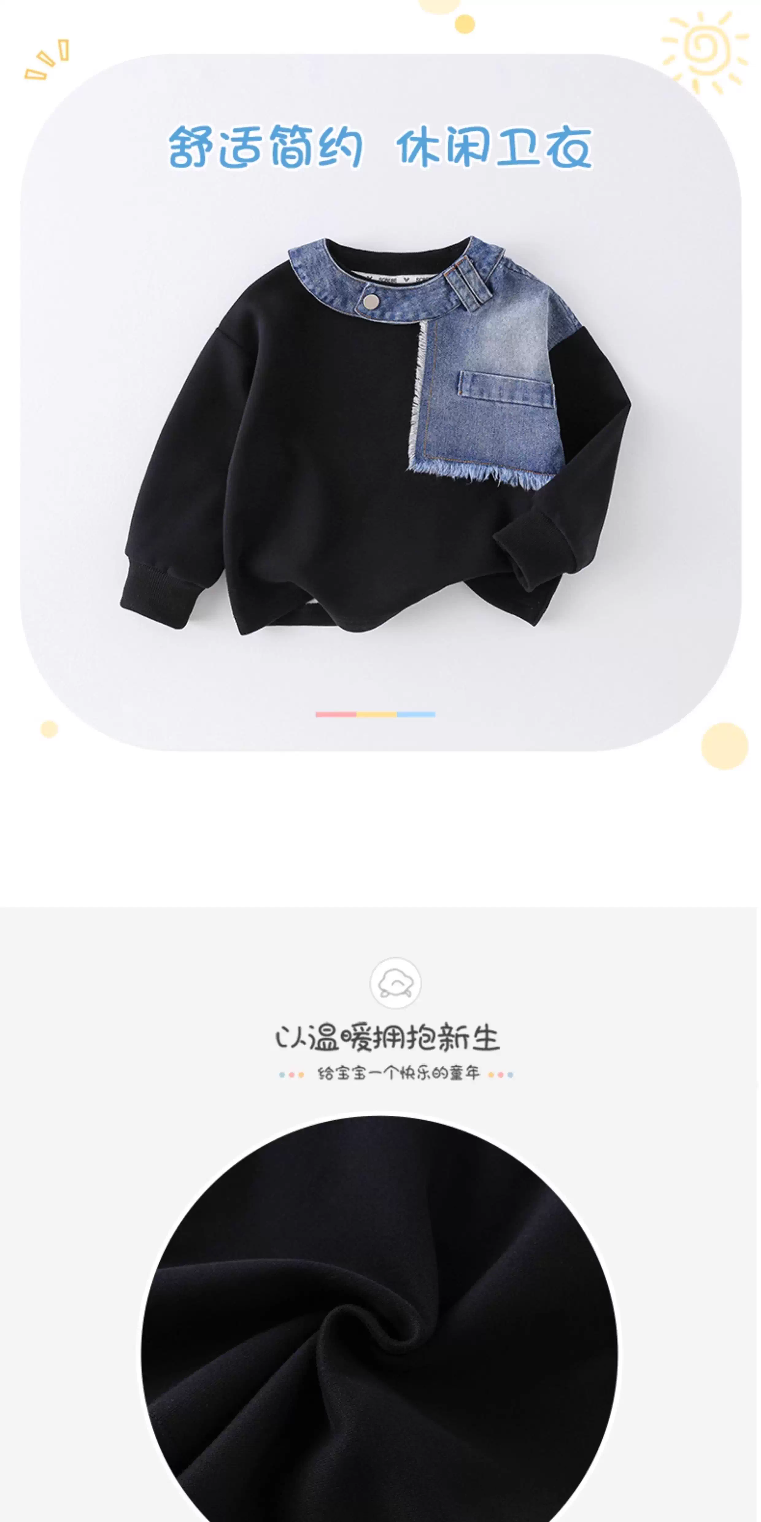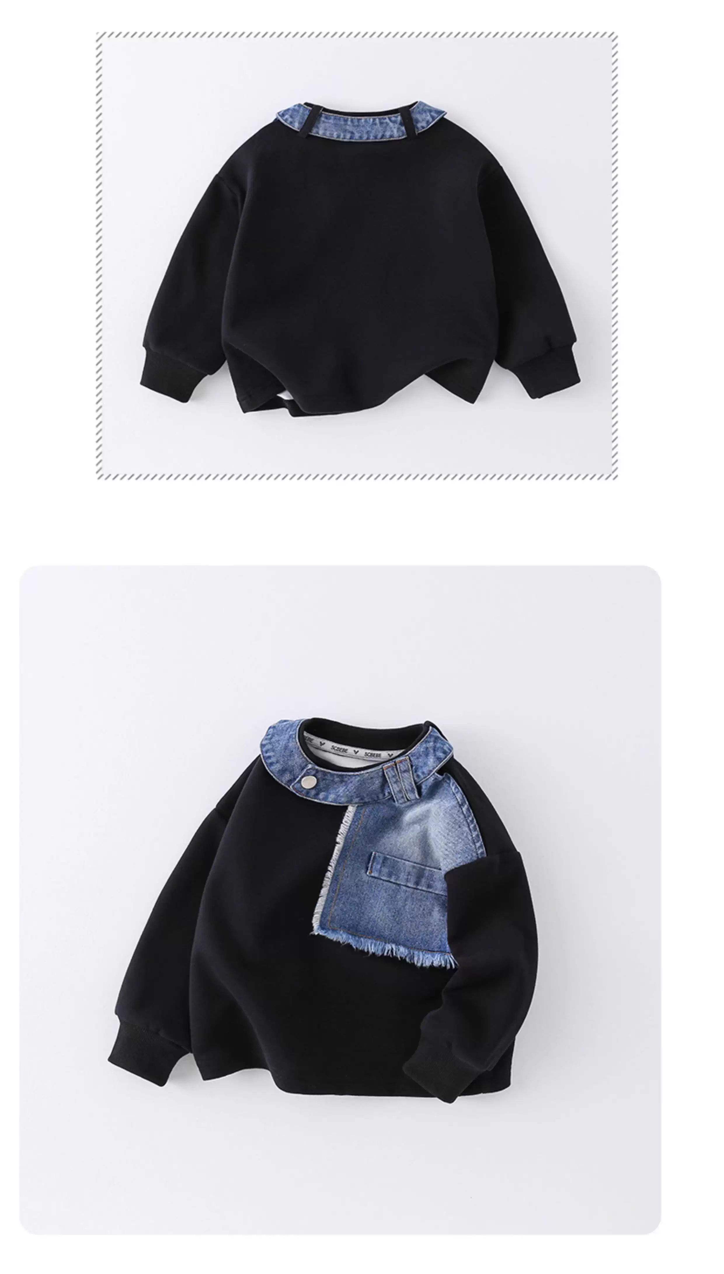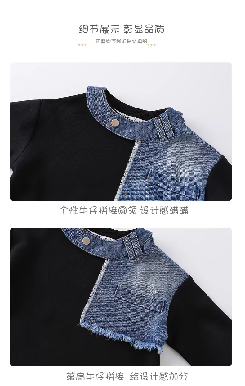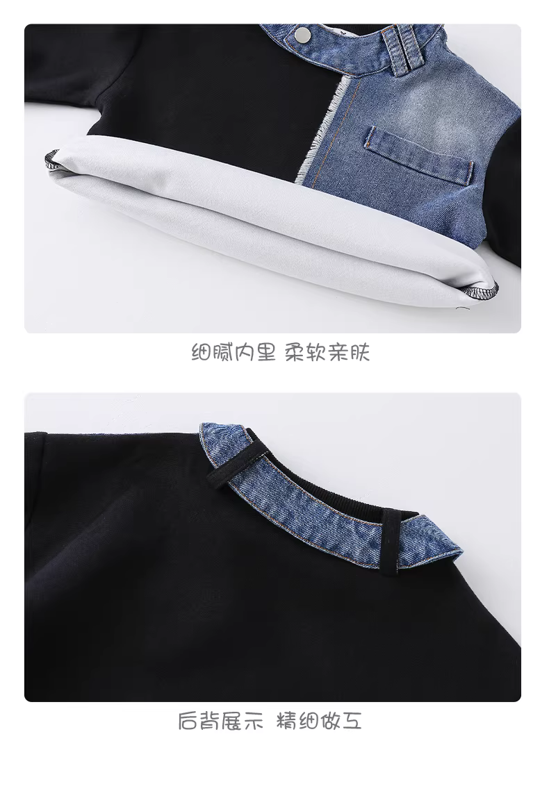 - Áo thun dài tay phối denim cho bé và trẻ nhỏ, mẫu mới thu đông 2025, áo lót thời trang cho bé