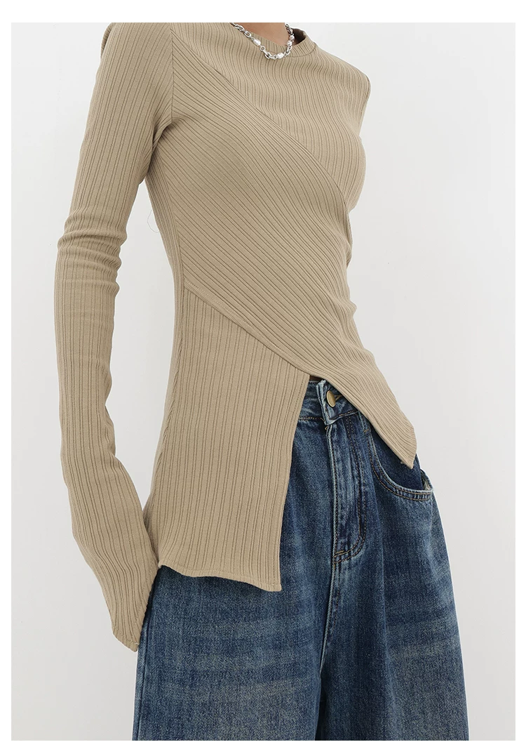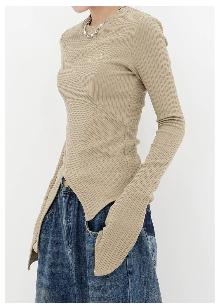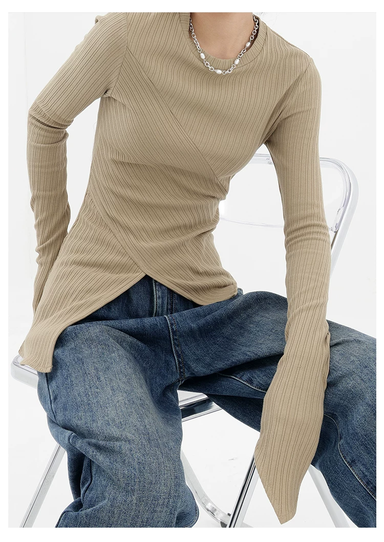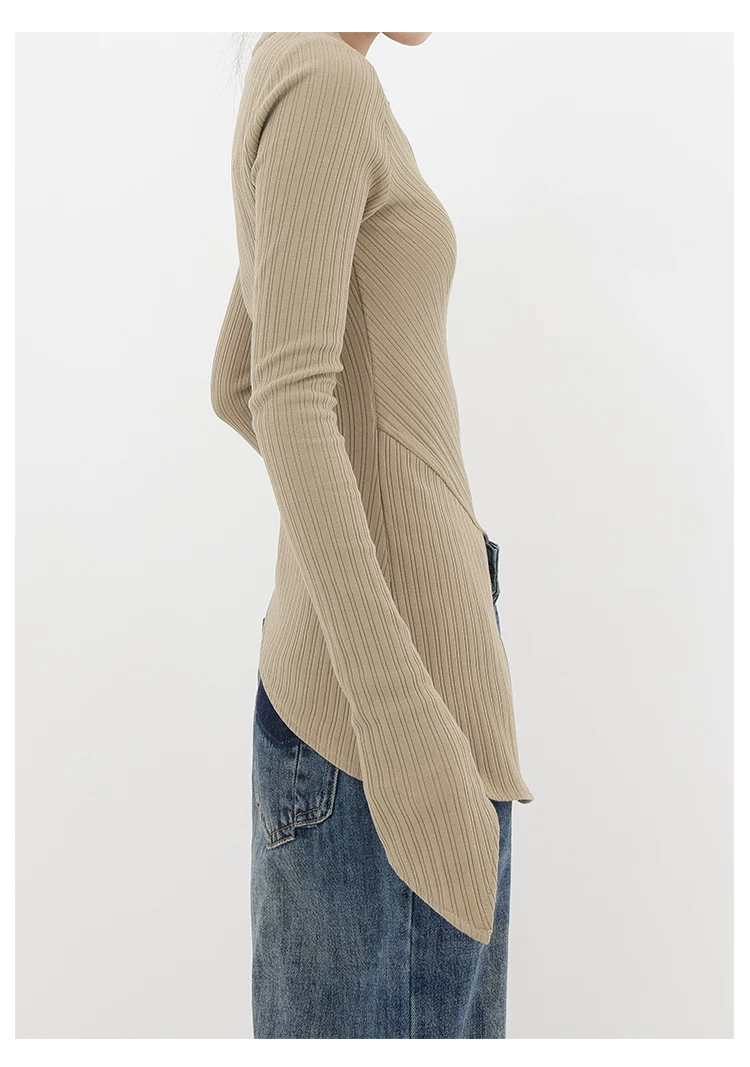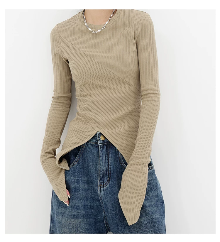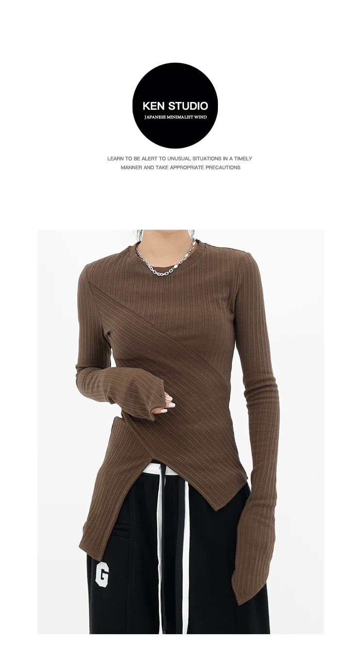 - Áo thun dài tay thu đông mới lấy cảm hứng từ thiết kế của KEN STUDIO dành cho nữ, áo dệt kim ôm sát dáng suông không đều, áo lót.