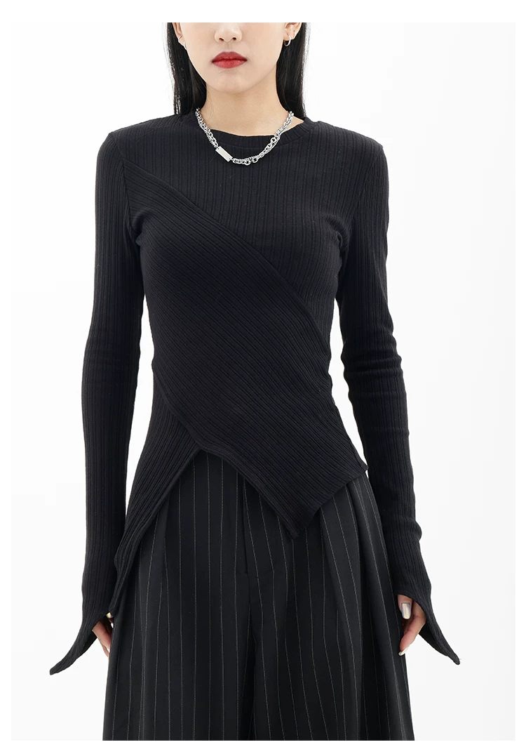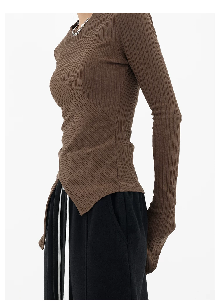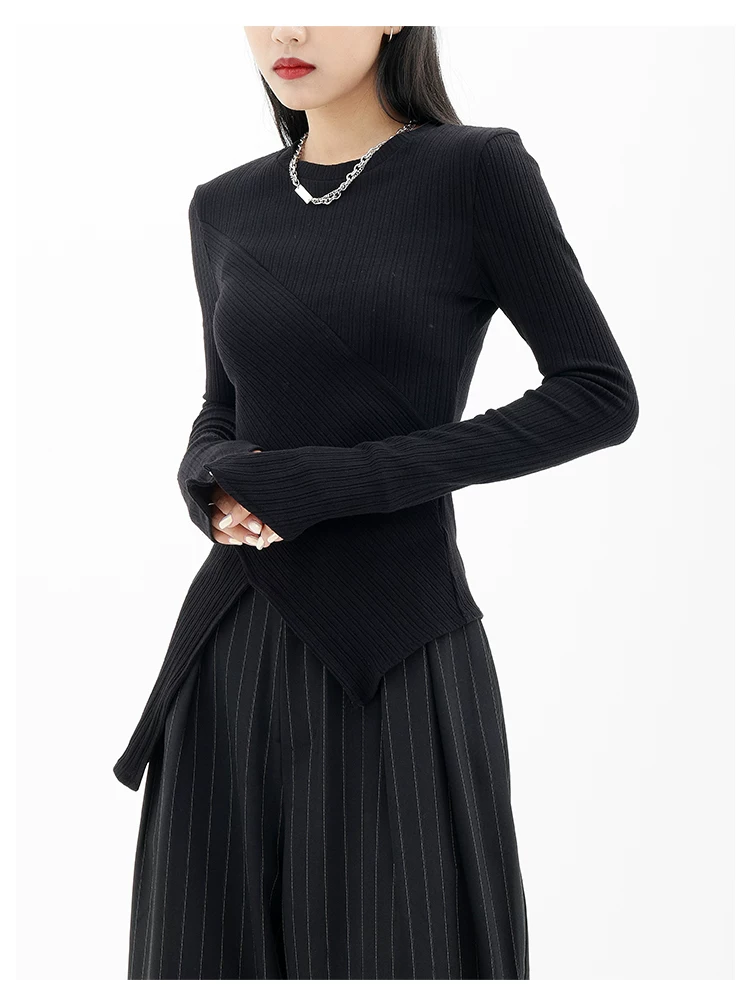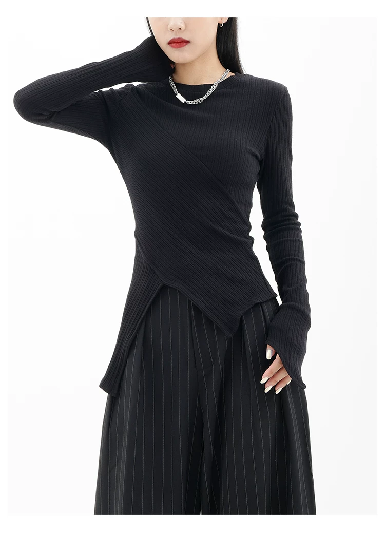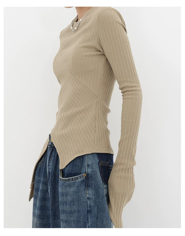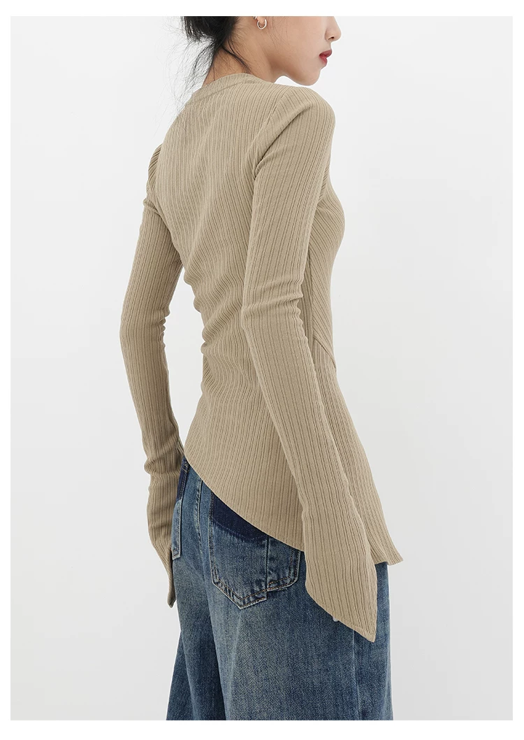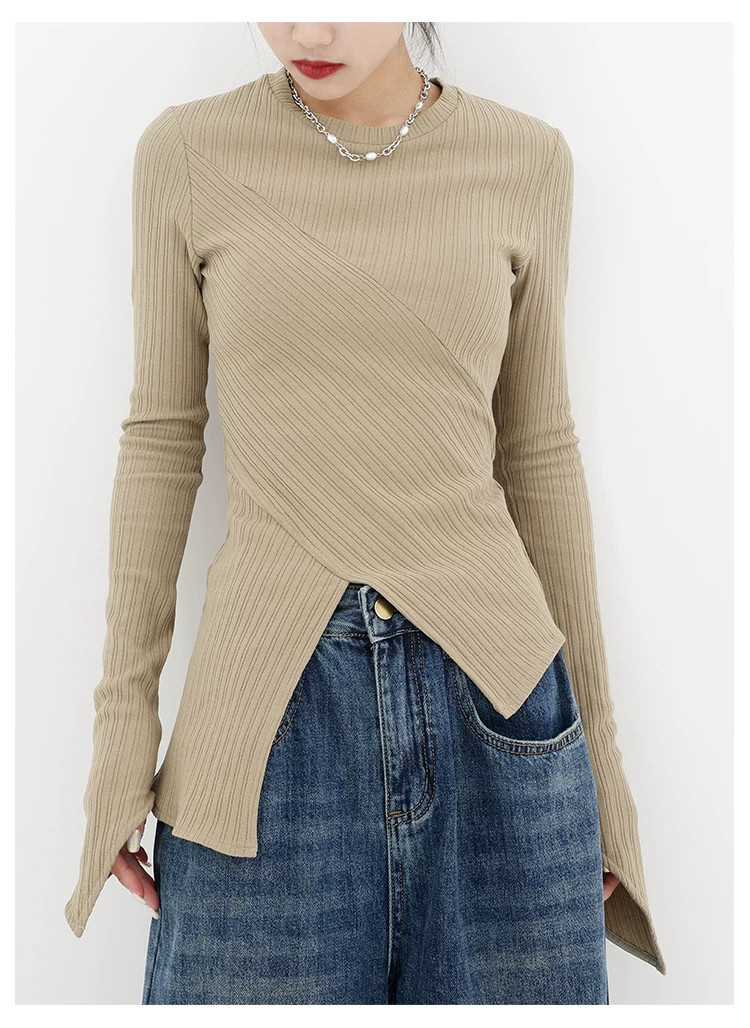 - Áo thun dài tay thu đông mới lấy cảm hứng từ thiết kế của KEN STUDIO dành cho nữ, áo dệt kim ôm sát dáng suông không đều, áo lót.