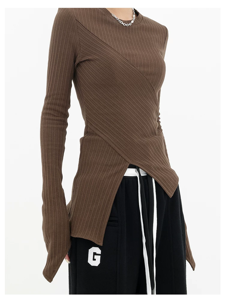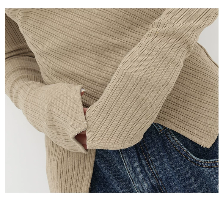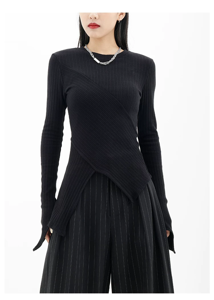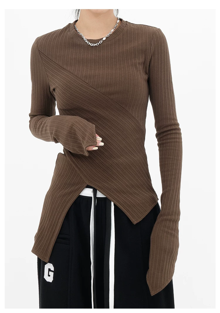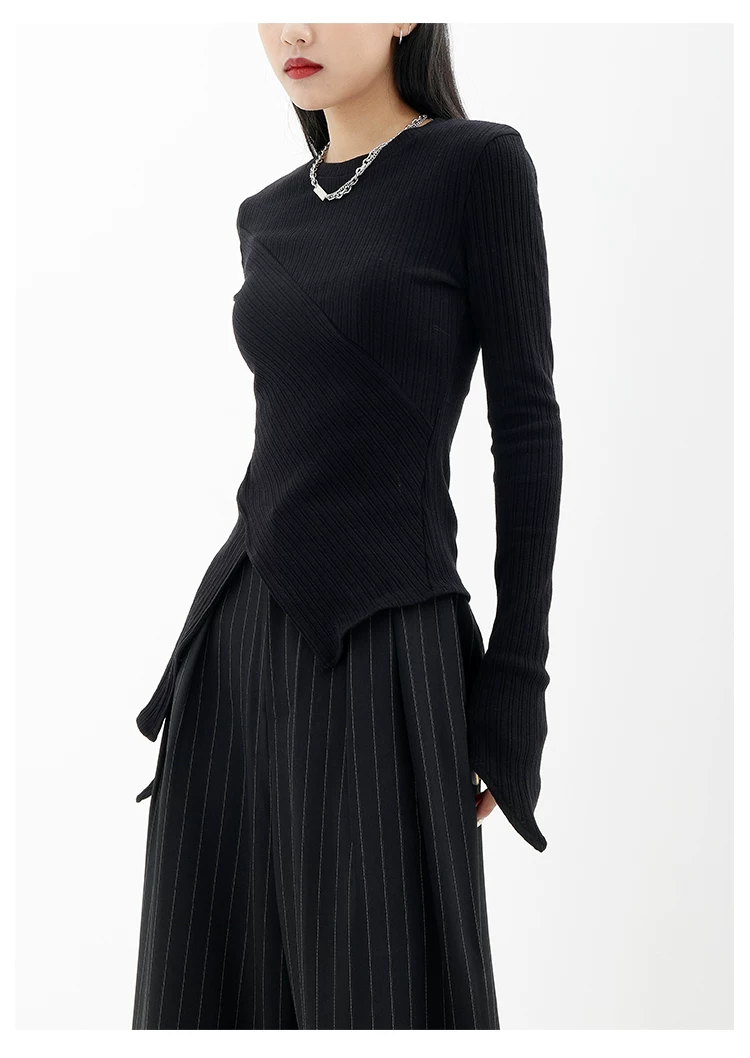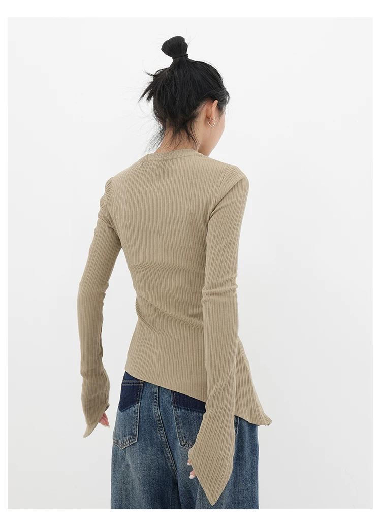 - Áo thun dài tay thu đông mới lấy cảm hứng từ thiết kế của KEN STUDIO dành cho nữ, áo dệt kim ôm sát dáng suông không đều, áo lót.