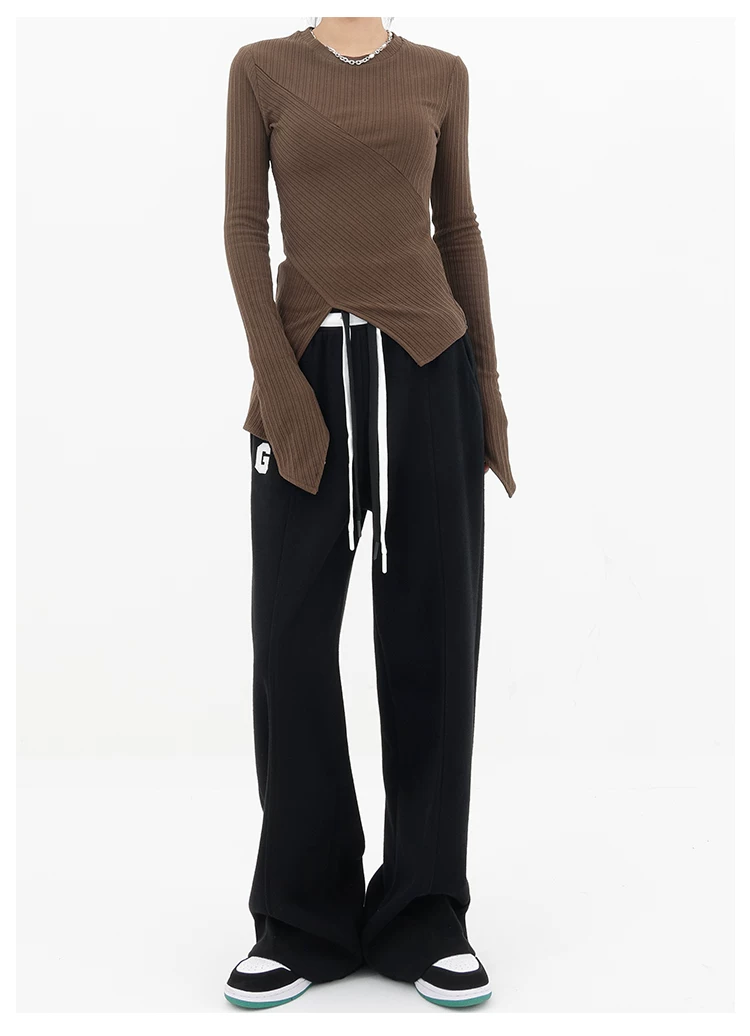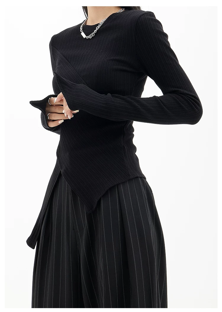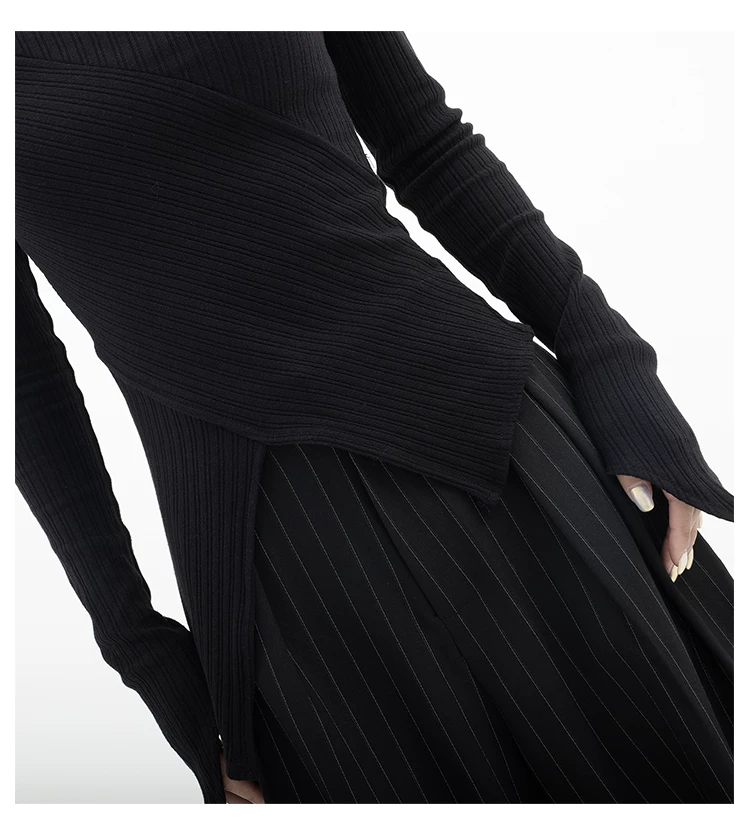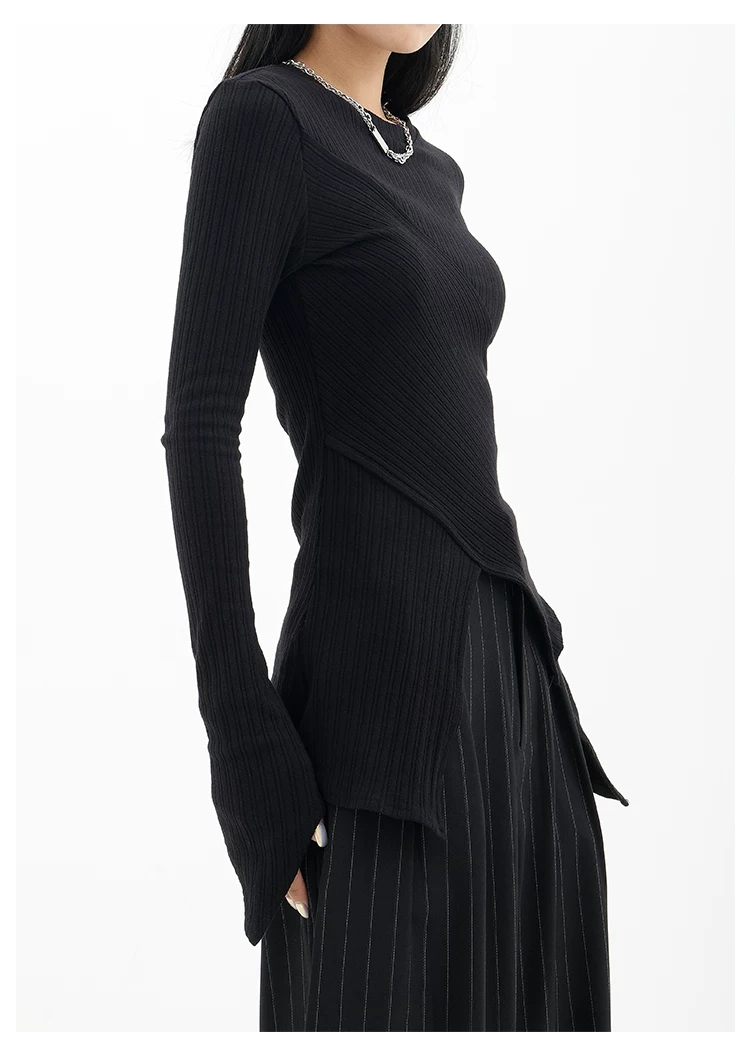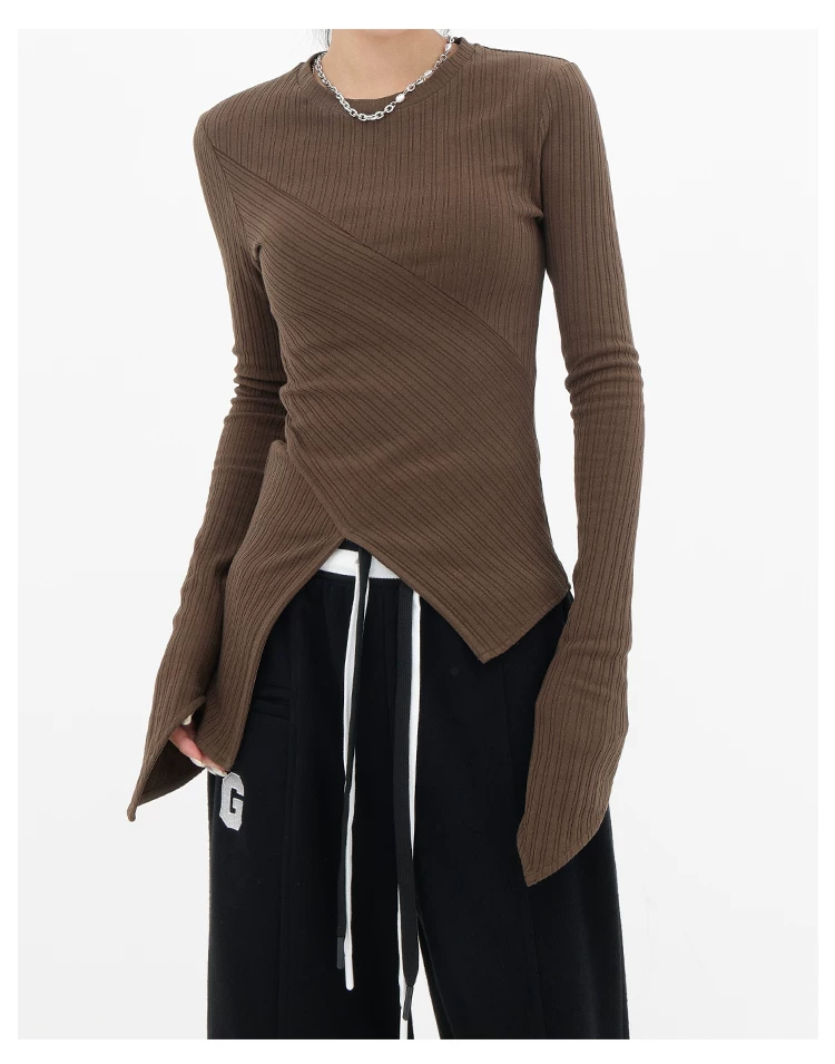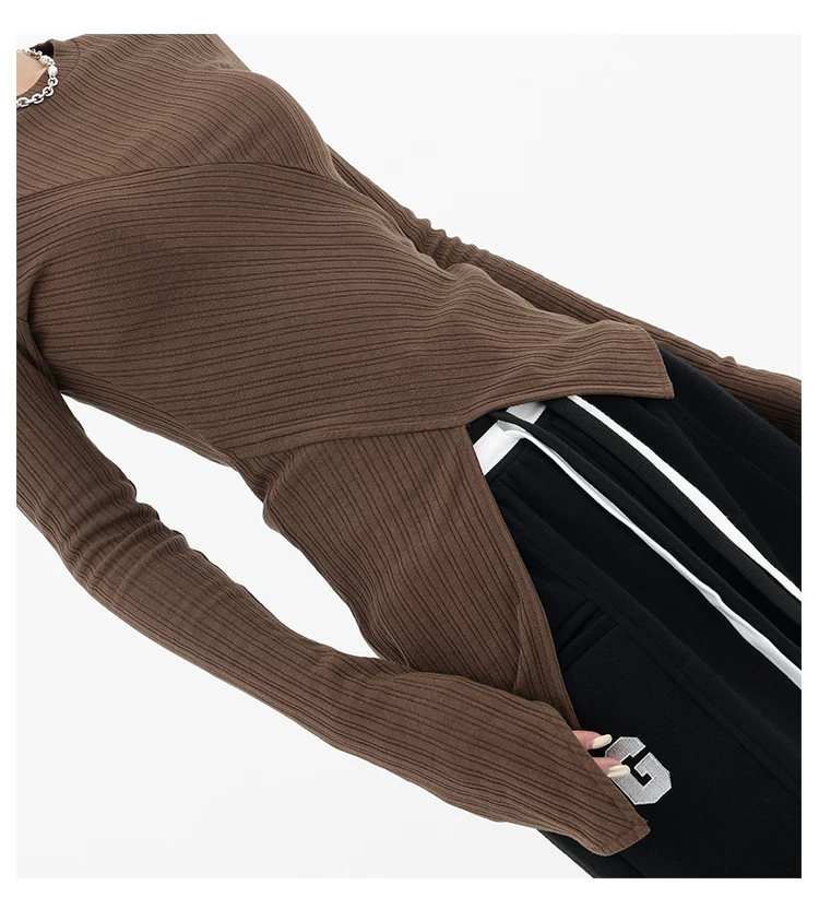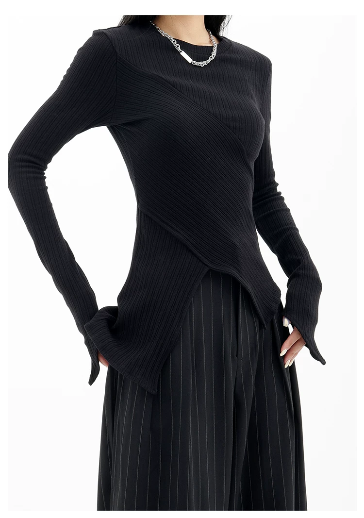 - Áo thun dài tay thu đông mới lấy cảm hứng từ thiết kế của KEN STUDIO dành cho nữ, áo dệt kim ôm sát dáng suông không đều, áo lót.