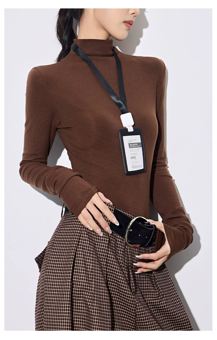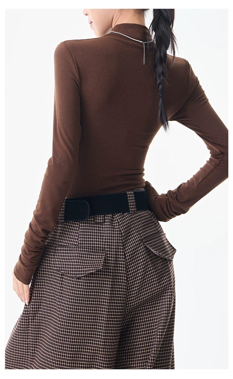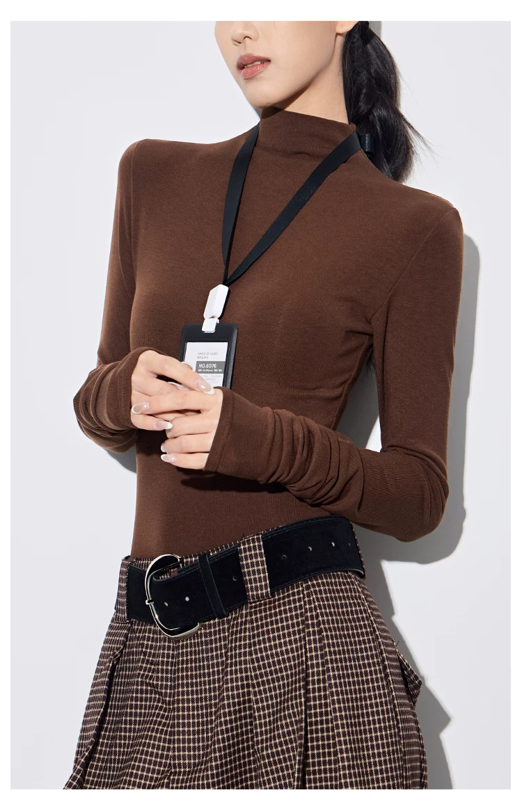 Áo thun dệt kim dài tay cổ cao nửa cổ kiểu Maillard của KEN STUDIO dành cho nữ, kiểu dáng ôm sát và tôn dáng bên trong