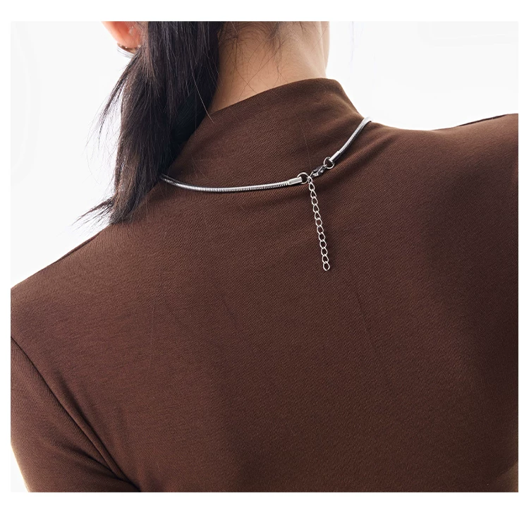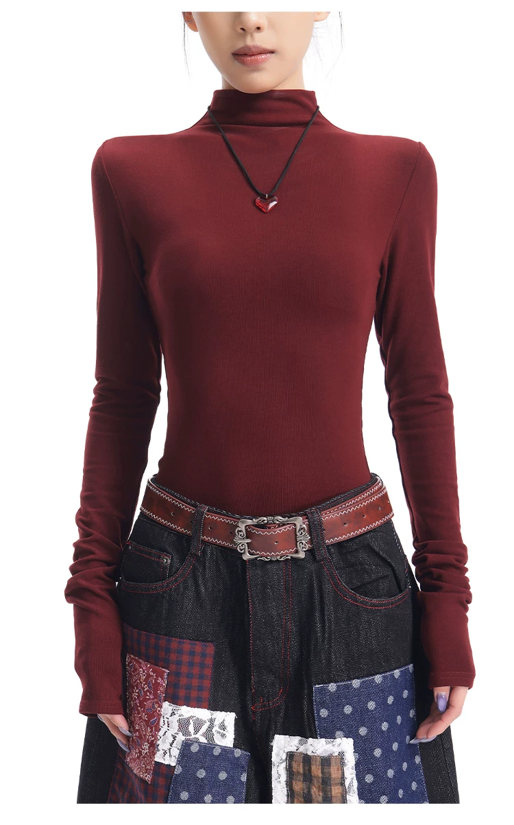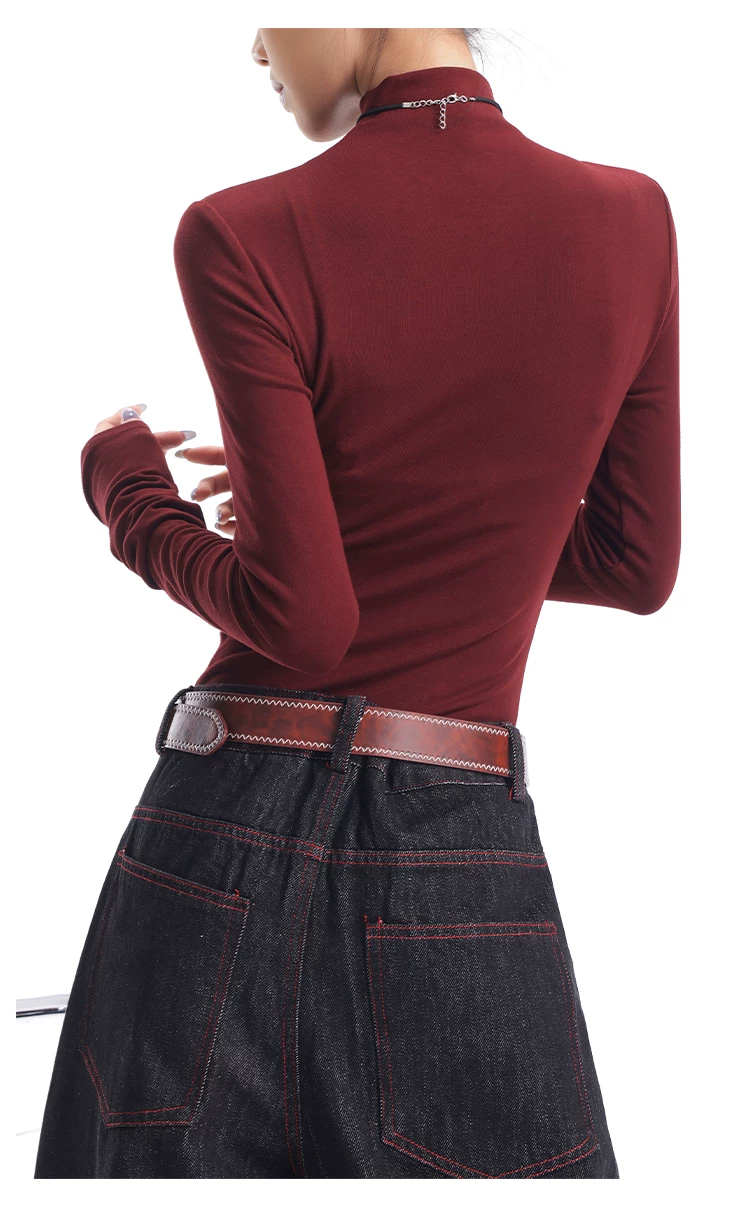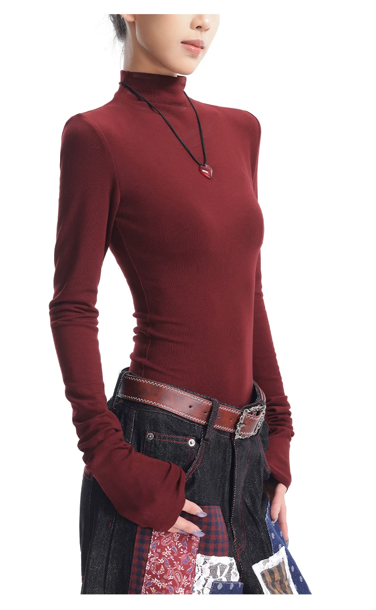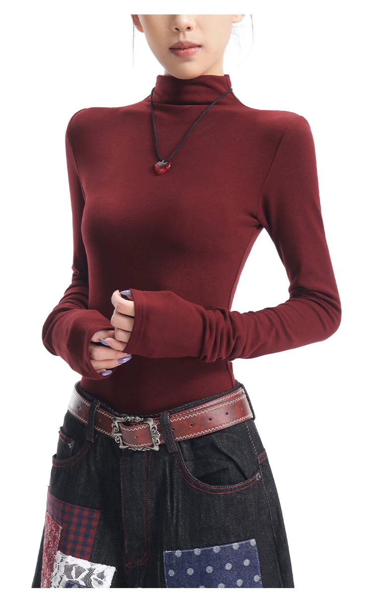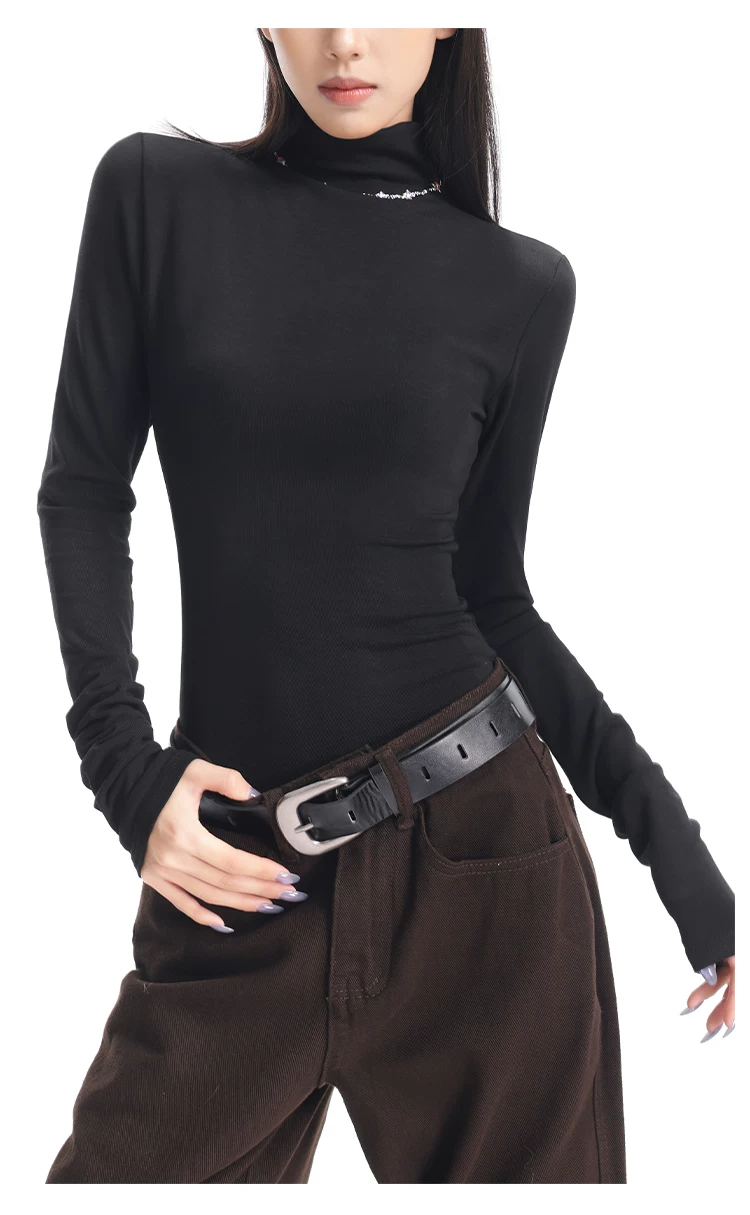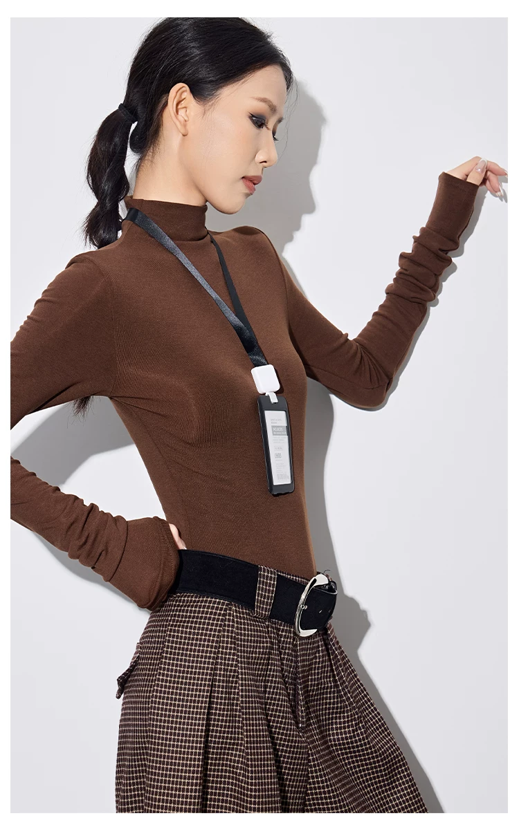 - Áo thun dệt kim dài tay cổ cao nửa cổ kiểu Maillard của KEN STUDIO dành cho nữ, kiểu dáng ôm sát và tôn dáng bên trong
