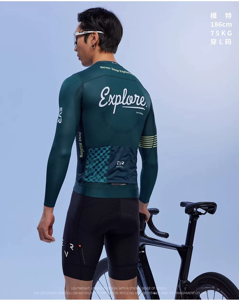 Áo thun đi xe đạp dài tay EVR dành cho nam, áo khoác đi xe đạp mùa hè có độ đàn hồi cao, thoáng khí, đi xe đạp ngoài trời EXP