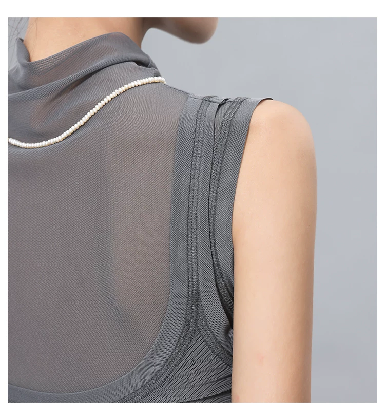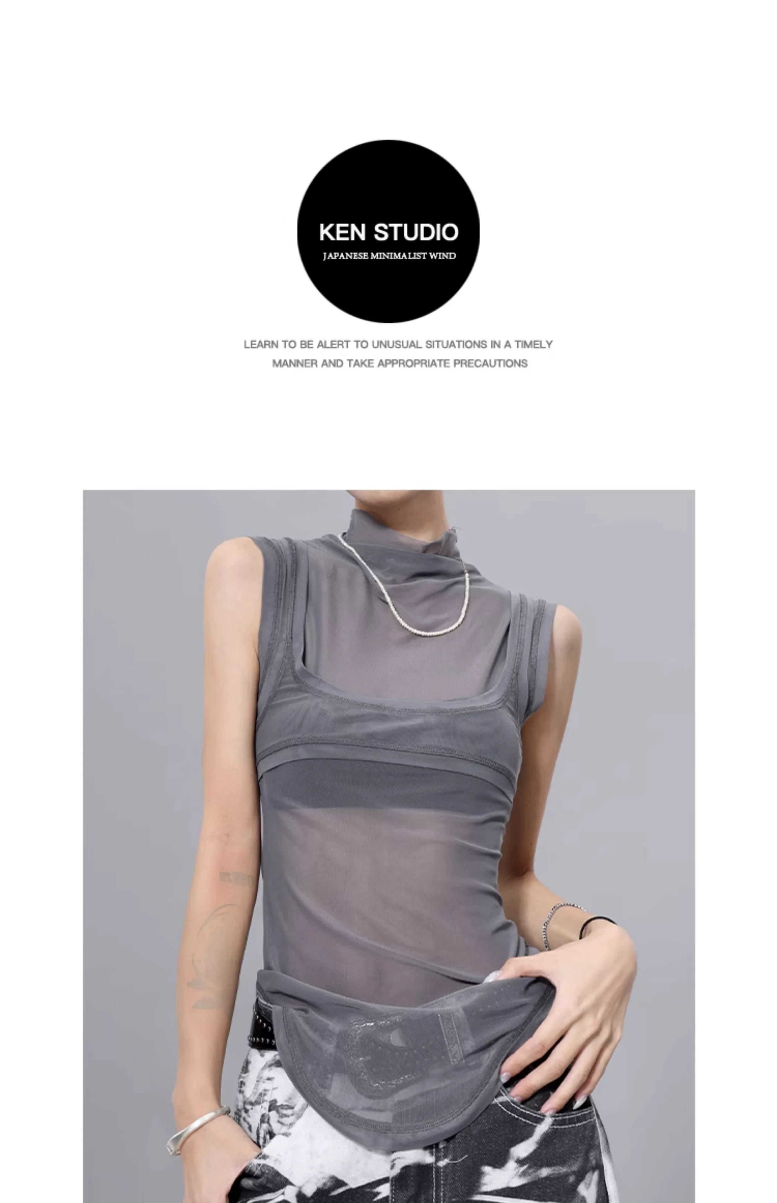 - Áo thun hai mảnh giả hai mảnh kiểu lưới phong cách KEN STUDIO dành cho nữ, áo thun dáng ôm đa năng mùa hè mới