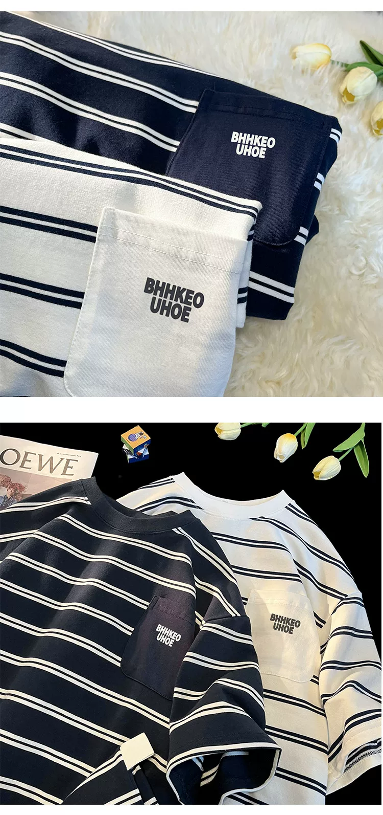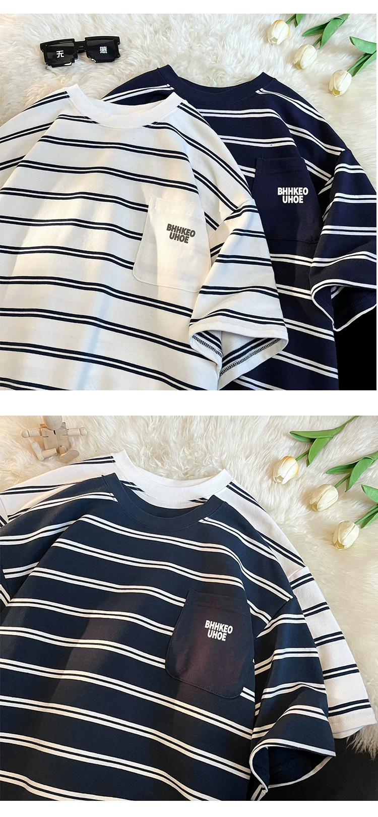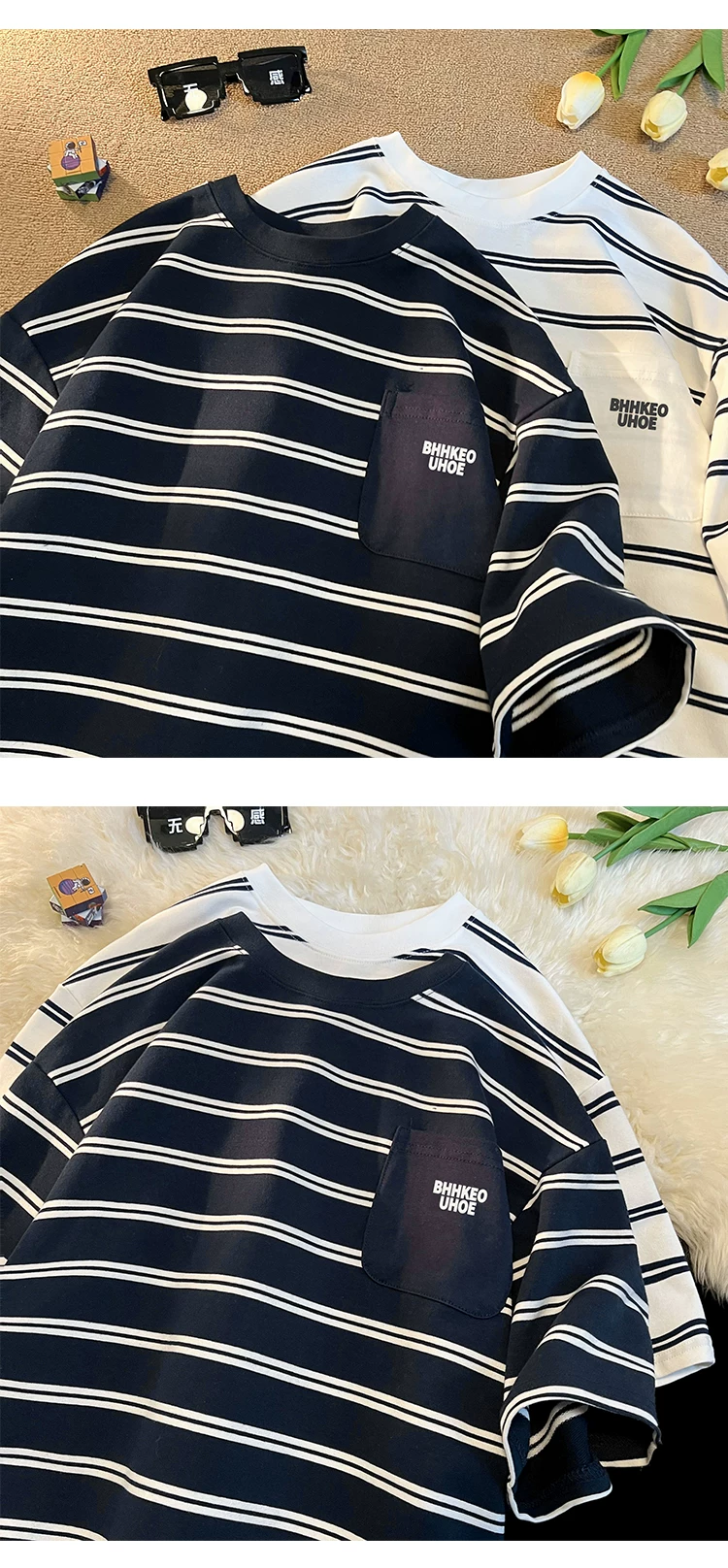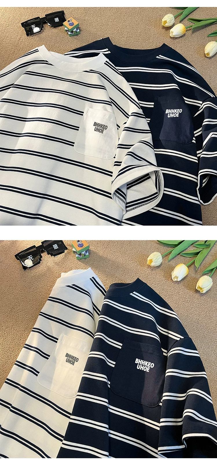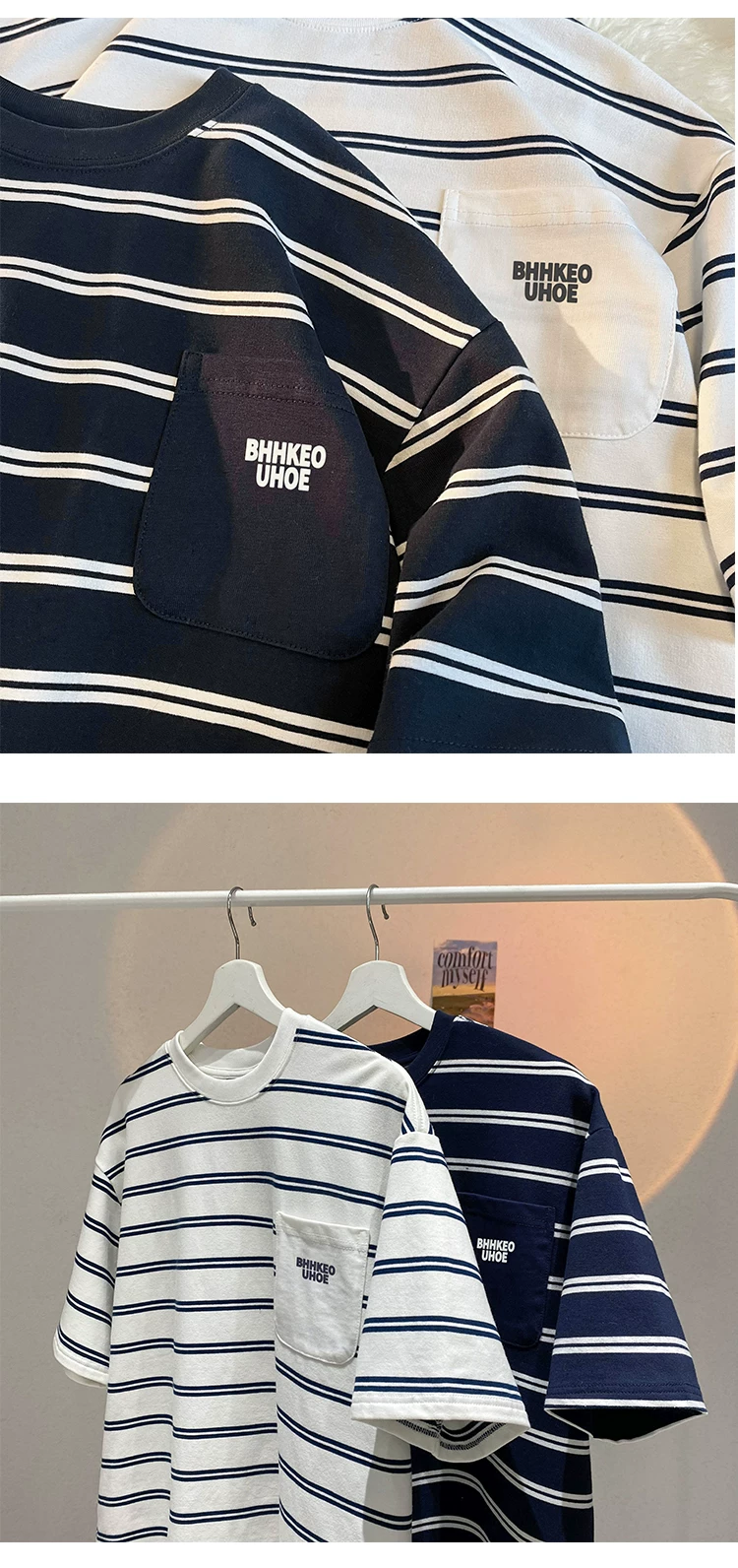 - Áo thun kẻ sọc kiểu Nhật dành cho nam 2024, mẫu mới hè, chất liệu cotton nguyên chất, tay ngắn, kiểu dáng rộng rãi, thời trang, đa năng, dành cho học sinh, cặp đôi.