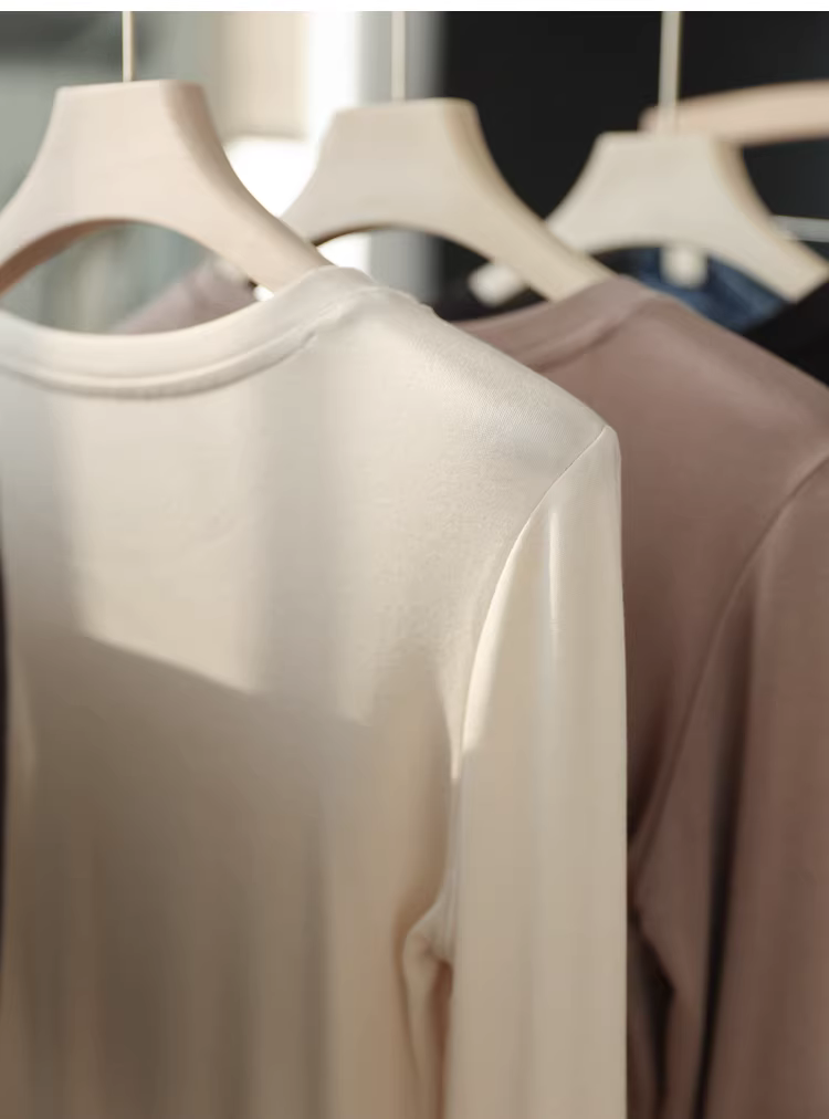 Áo thun len modal tay dài màu trơn đa năng, kiểu dáng cơ bản giúp bạn trông thon gọn hơn! Mẫu mới cho mùa thu.