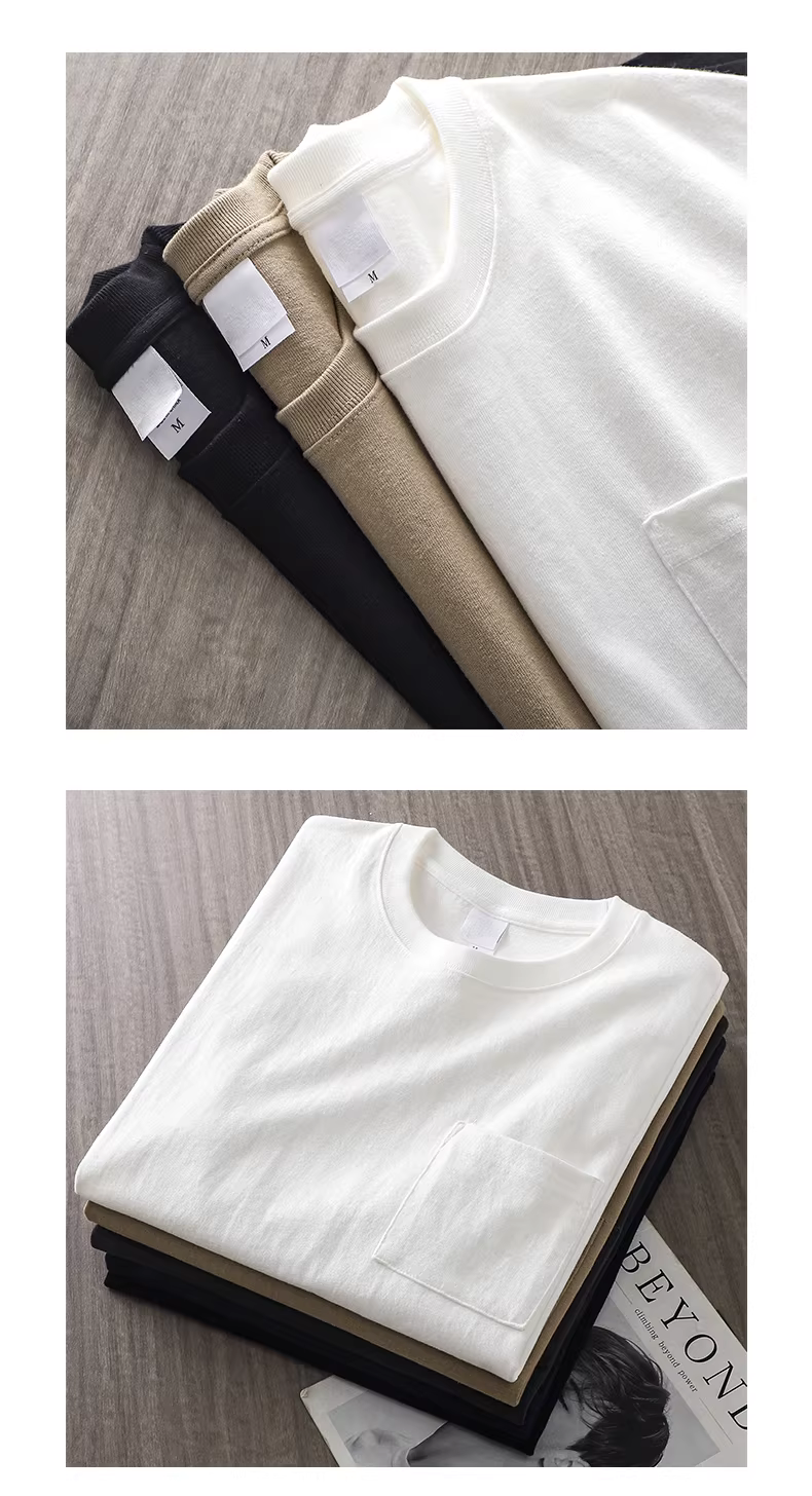 - Áo thun nam chất liệu dày dặn 320G kiểu Mỹ, tay ngắn, mùa hè, kiểu dáng độc đáo có túi, cổ tròn, dáng rộng, màu trơn, tay lửng dành cho nữ.