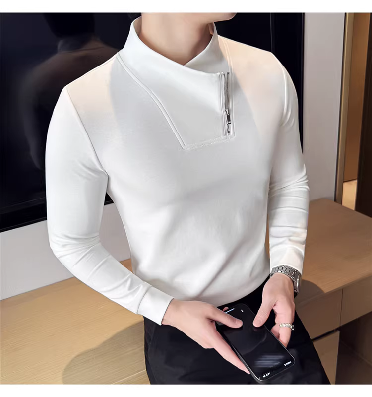 - Áo thun nam cổ cao nửa cổ thiết kế khóa kéo thời trang, dài tay, dày dặn cho mùa thu đông, kiểu dáng ôm body hợp thời trang, co giãn, áo thun cổ chữ V thoáng mát.