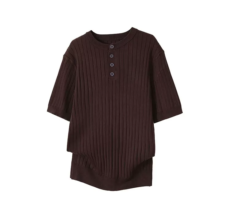 Áo thun nam cổ Henry kiểu Mỹ, tay ngắn, chất liệu dệt kim thoáng mát mùa hè, kiểu dáng thời trang, rộng rãi, đa năng.