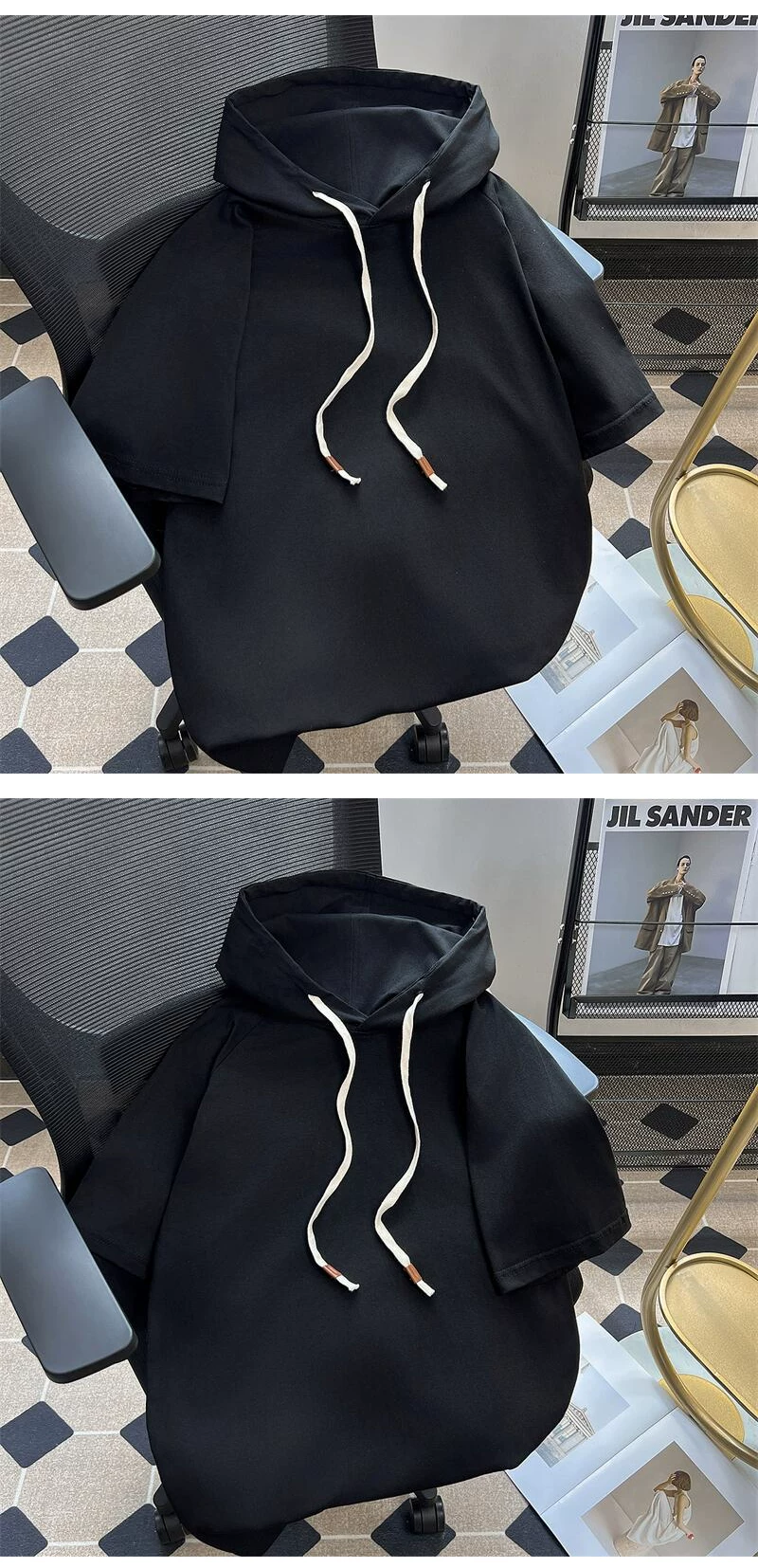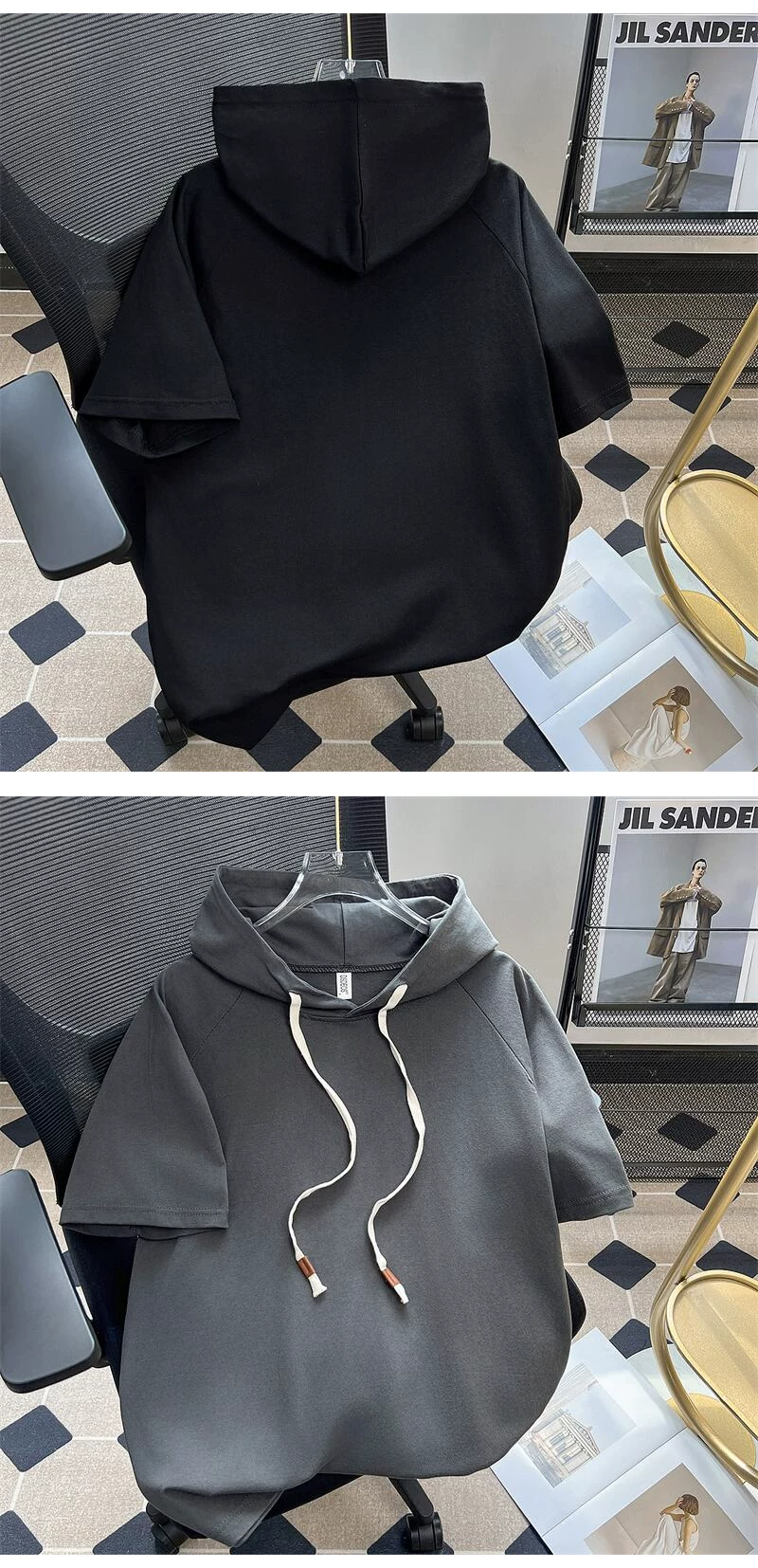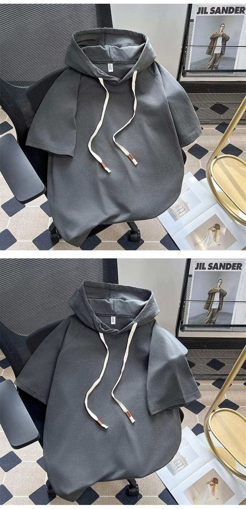 Áo thun nam cotton nguyên chất tay lửng, dáng rộng, có mũ, chất liệu dày dặn kiểu Mỹ, áo thun ngắn tay thời trang mùa hè, áo thun đôi đa năng.