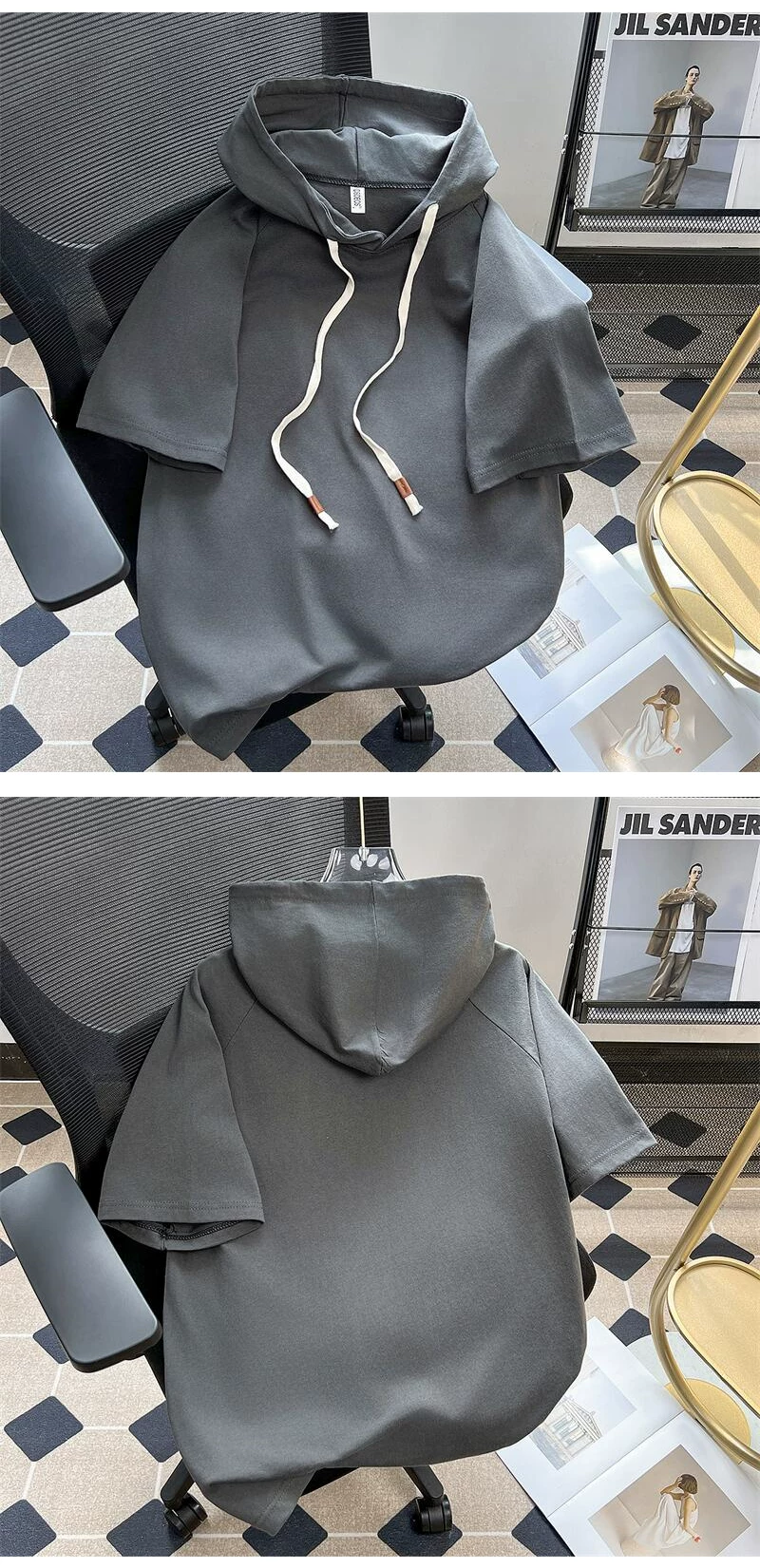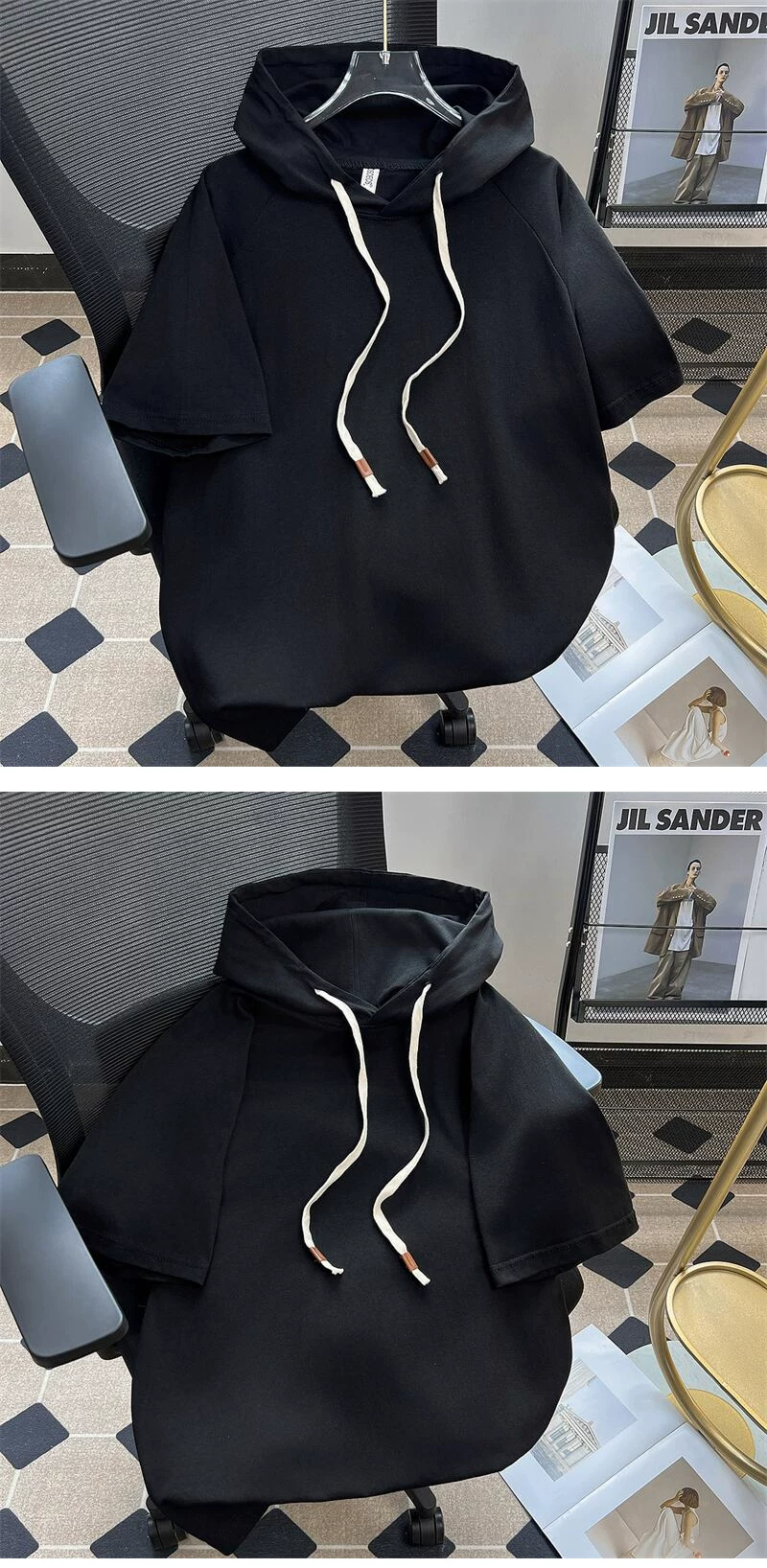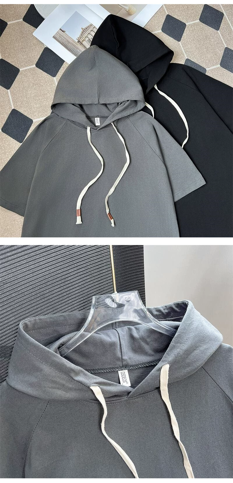 Áo thun nam cotton nguyên chất tay lửng, dáng rộng, có mũ, chất liệu dày dặn kiểu Mỹ, áo thun ngắn tay thời trang mùa hè, áo thun đôi đa năng.