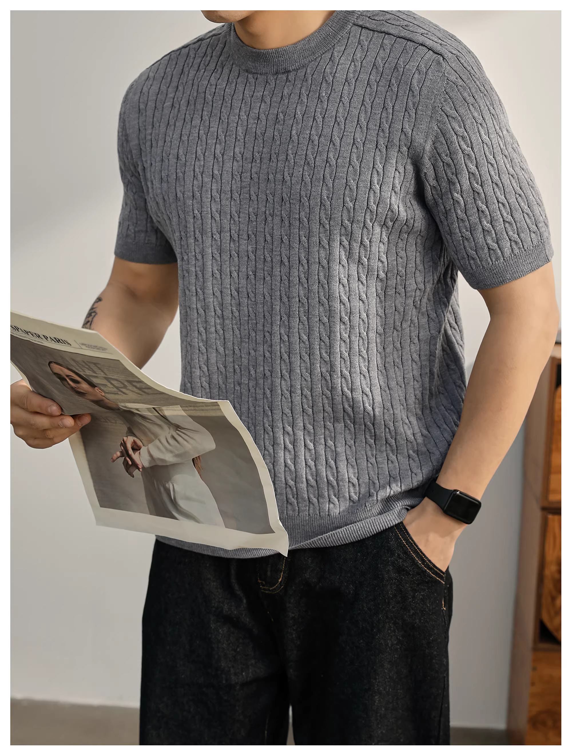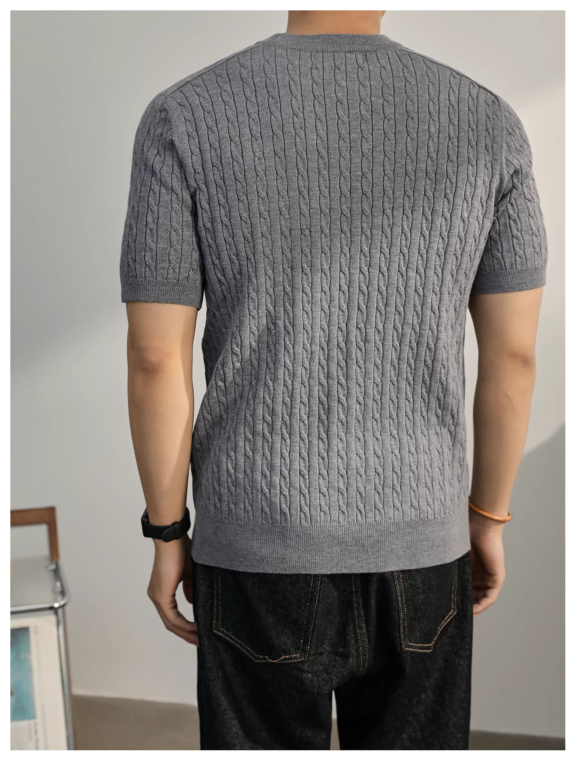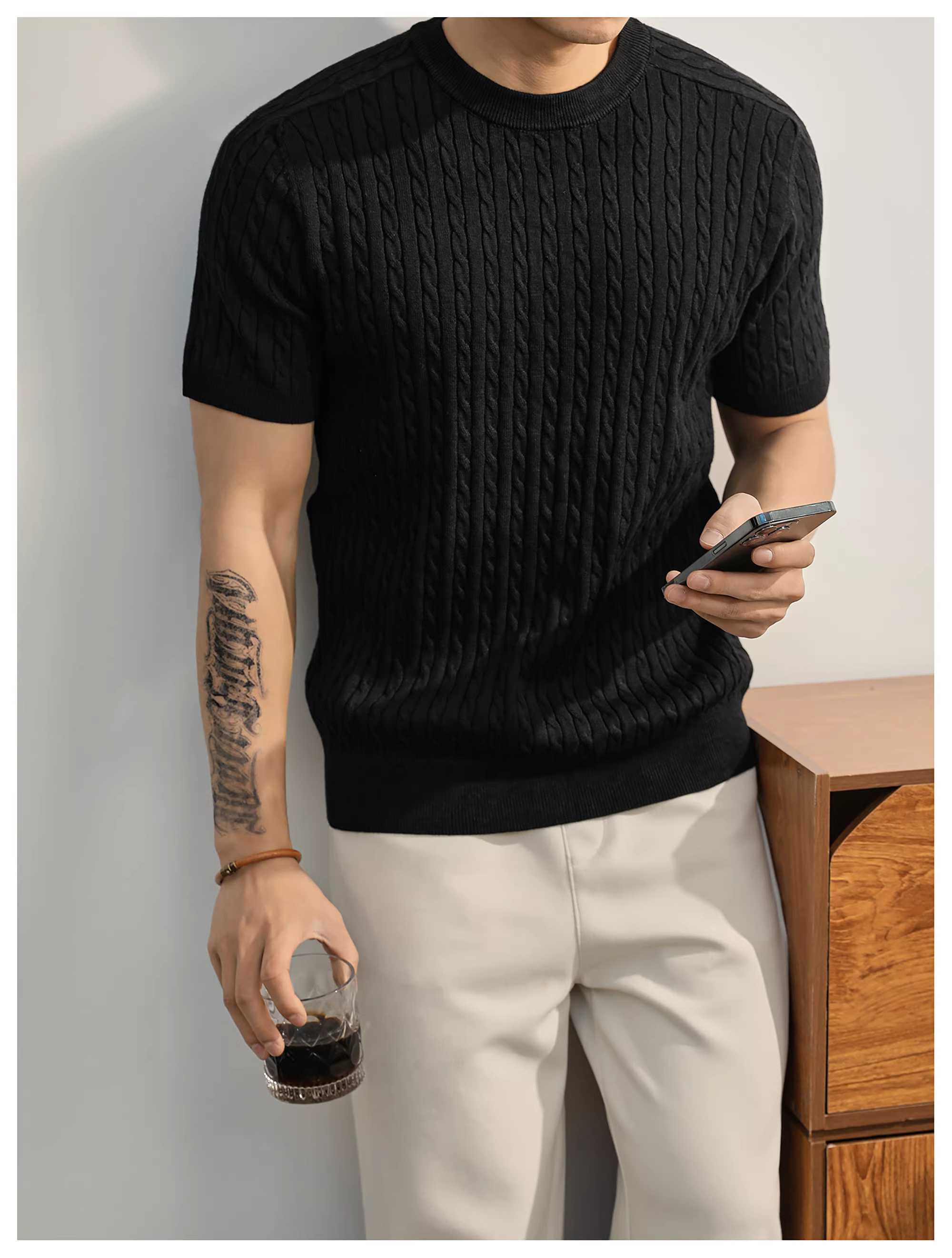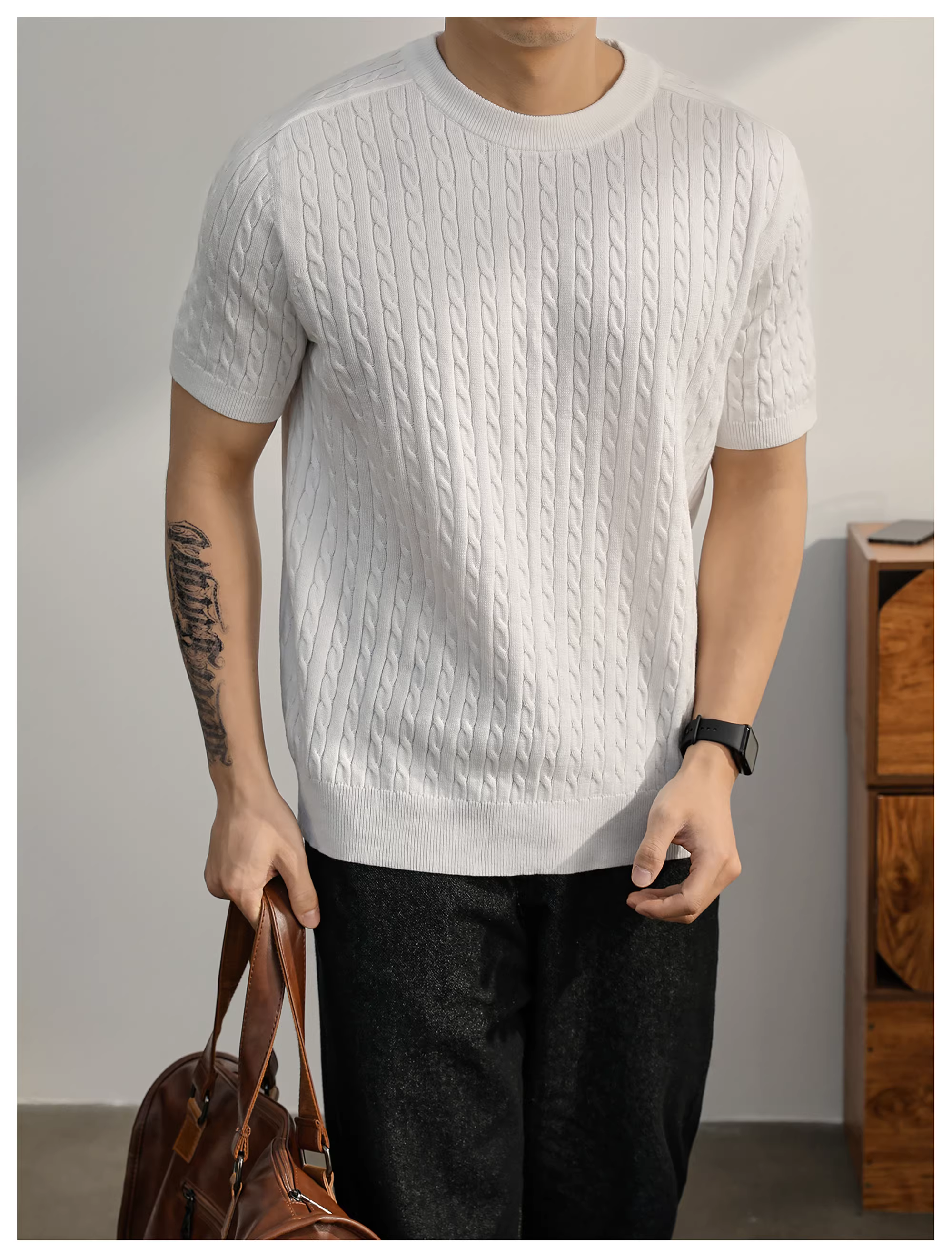 - Áo thun nam dệt kim ngắn tay pha len mùa hè LUUD đơn giản và sang trọng, áo đa năng mặc hàng ngày