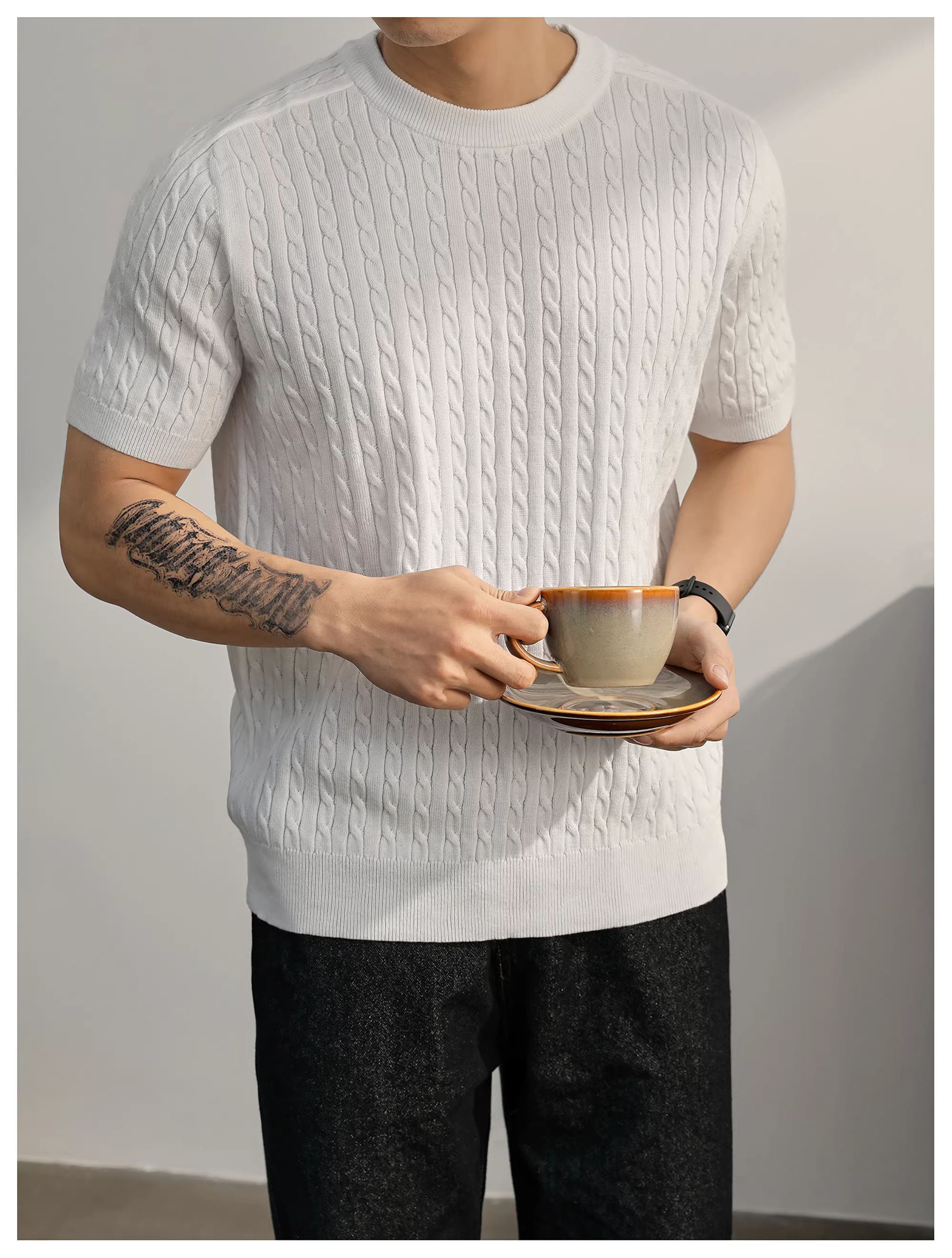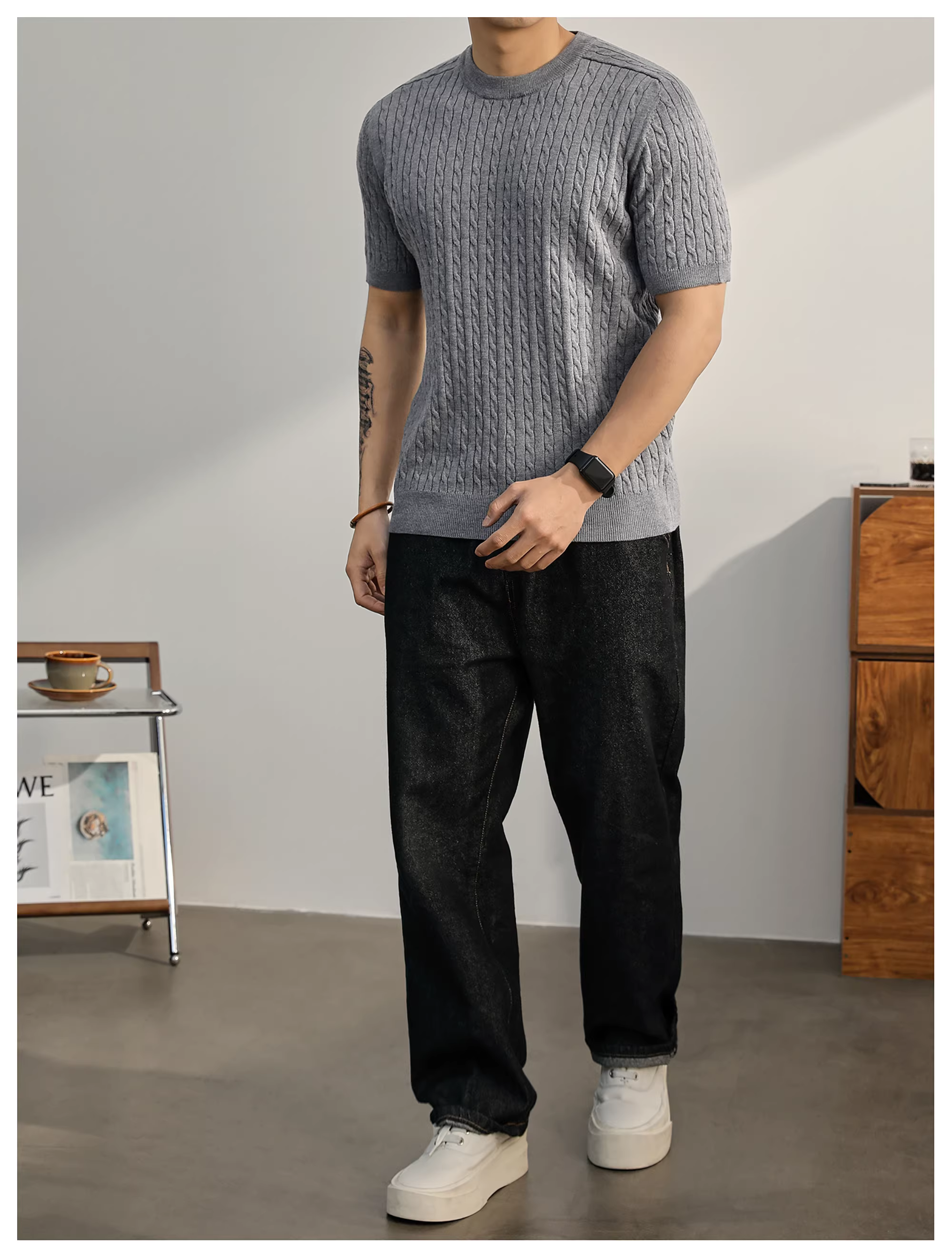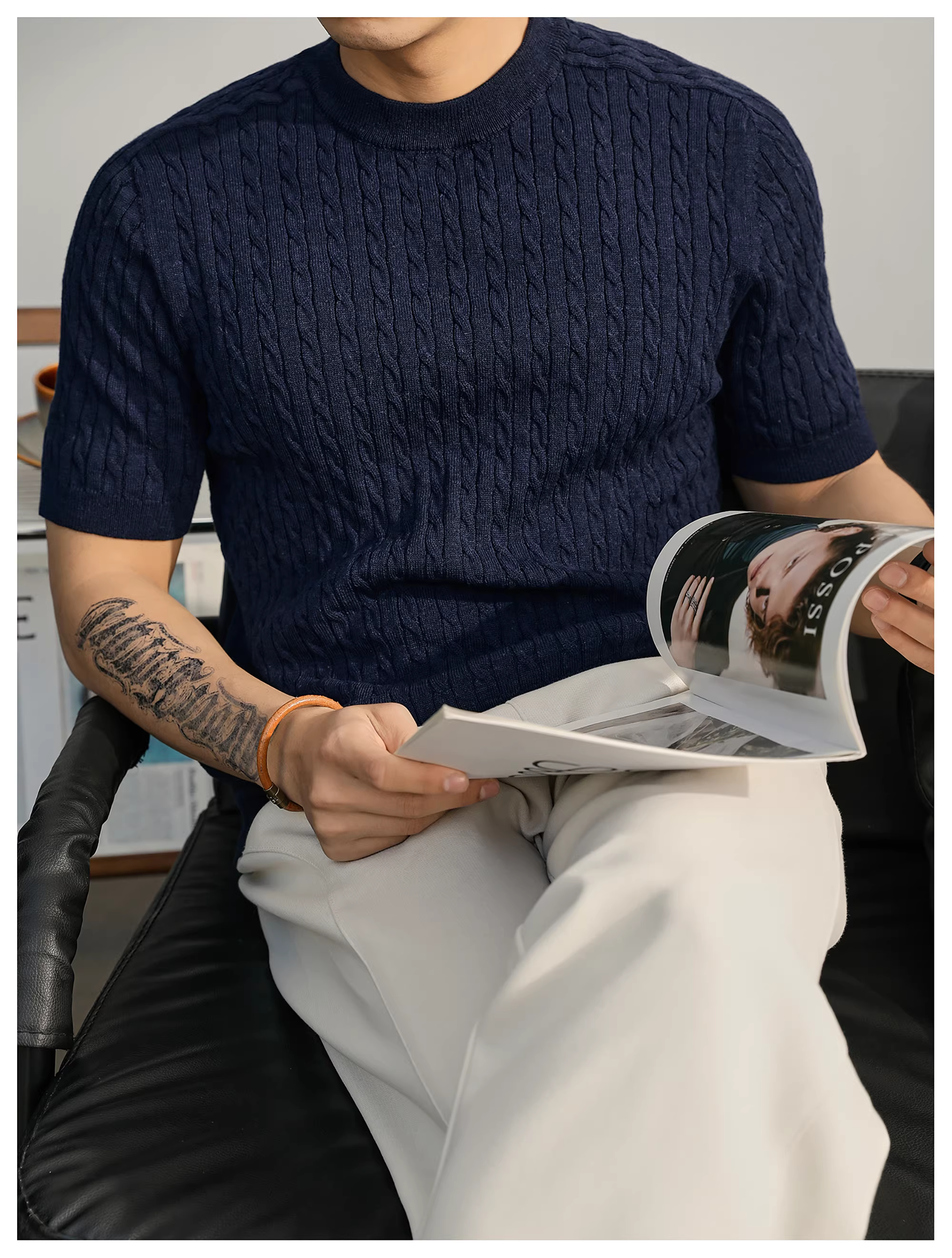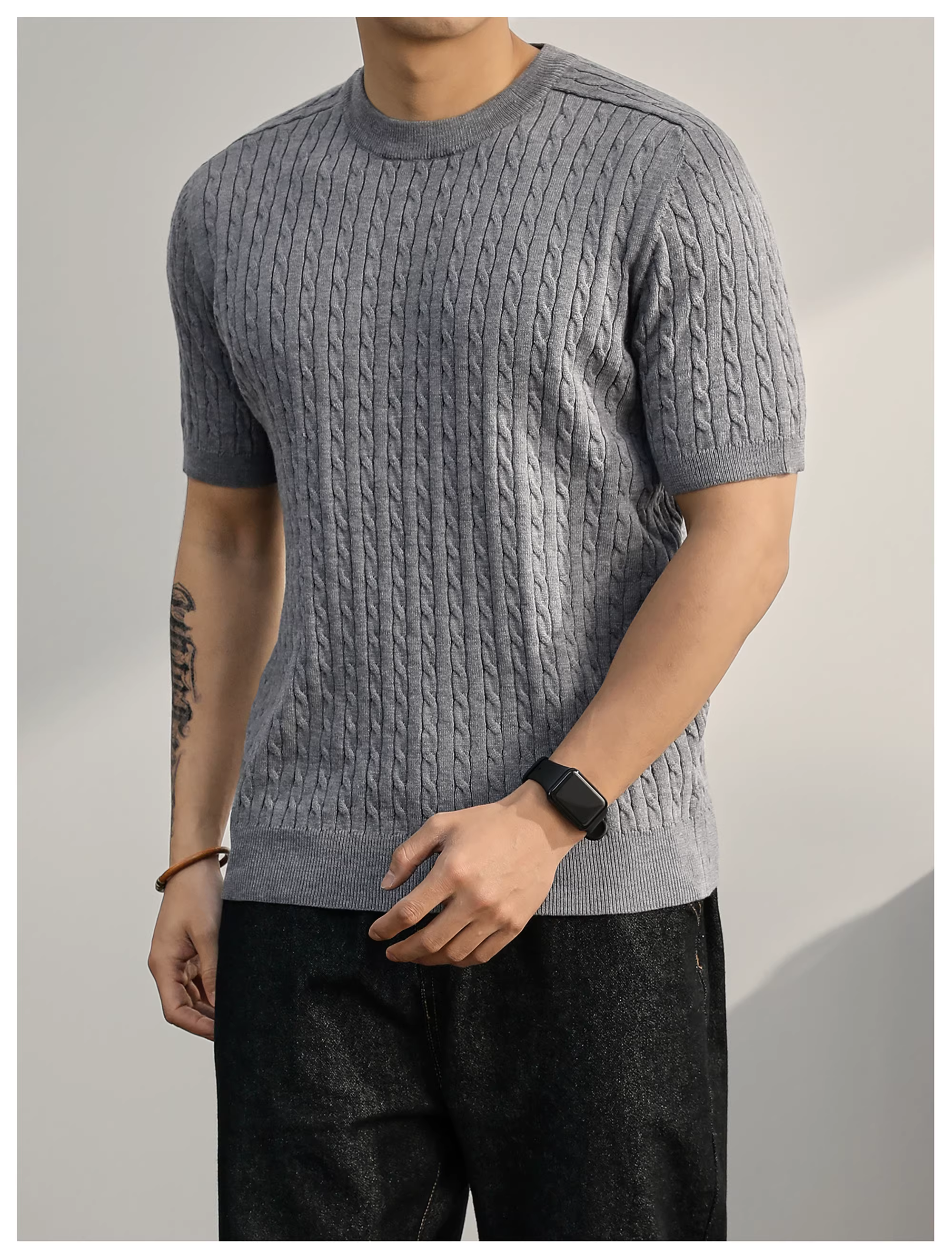 - Áo thun nam dệt kim ngắn tay pha len mùa hè LUUD đơn giản và sang trọng, áo đa năng mặc hàng ngày