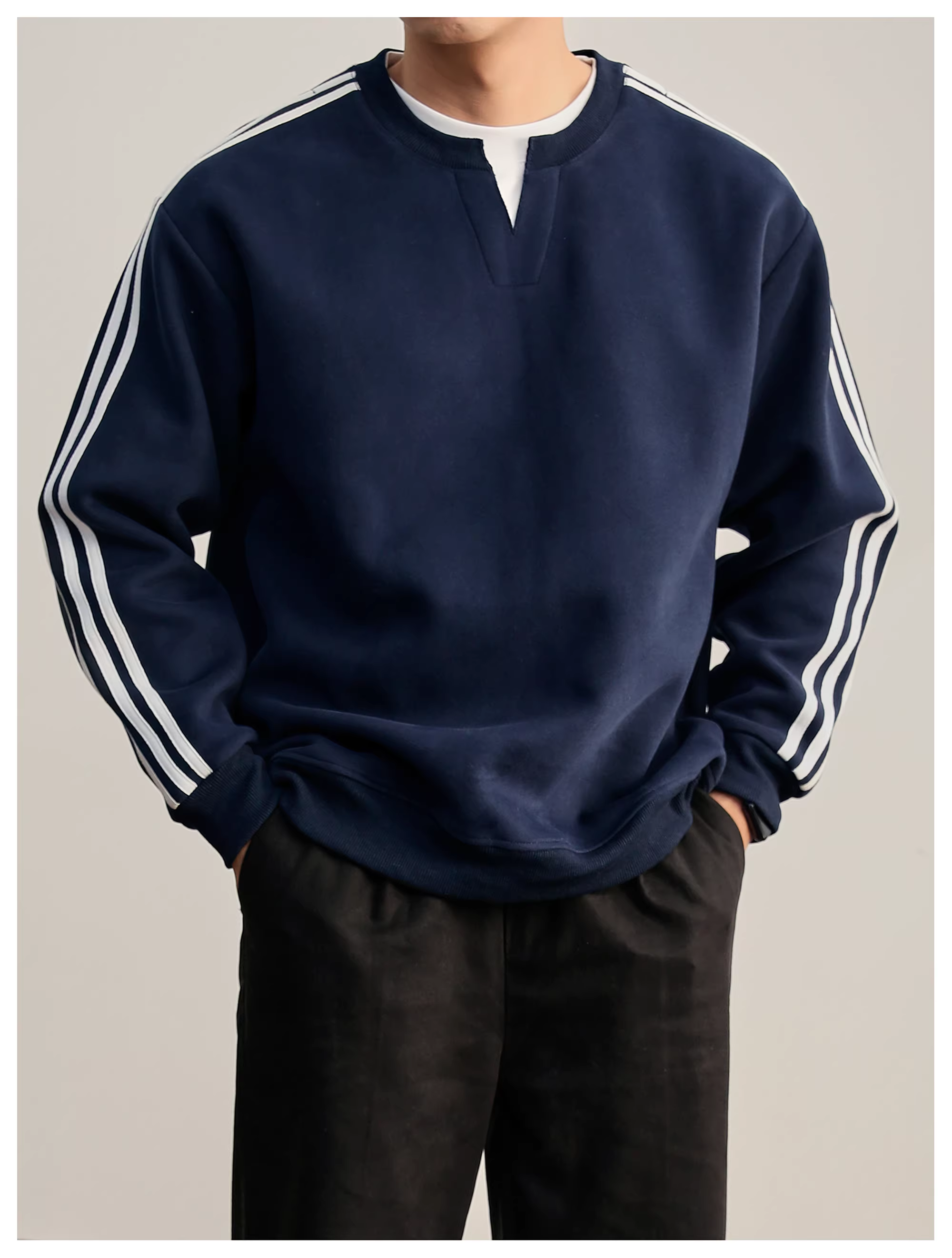 - Áo thun nam LUUD phong cách thể thao thời trang, kiểu dáng giả hai mảnh, cổ chữ V, chất liệu dày 420g, phối màu ba sọc, tay dài