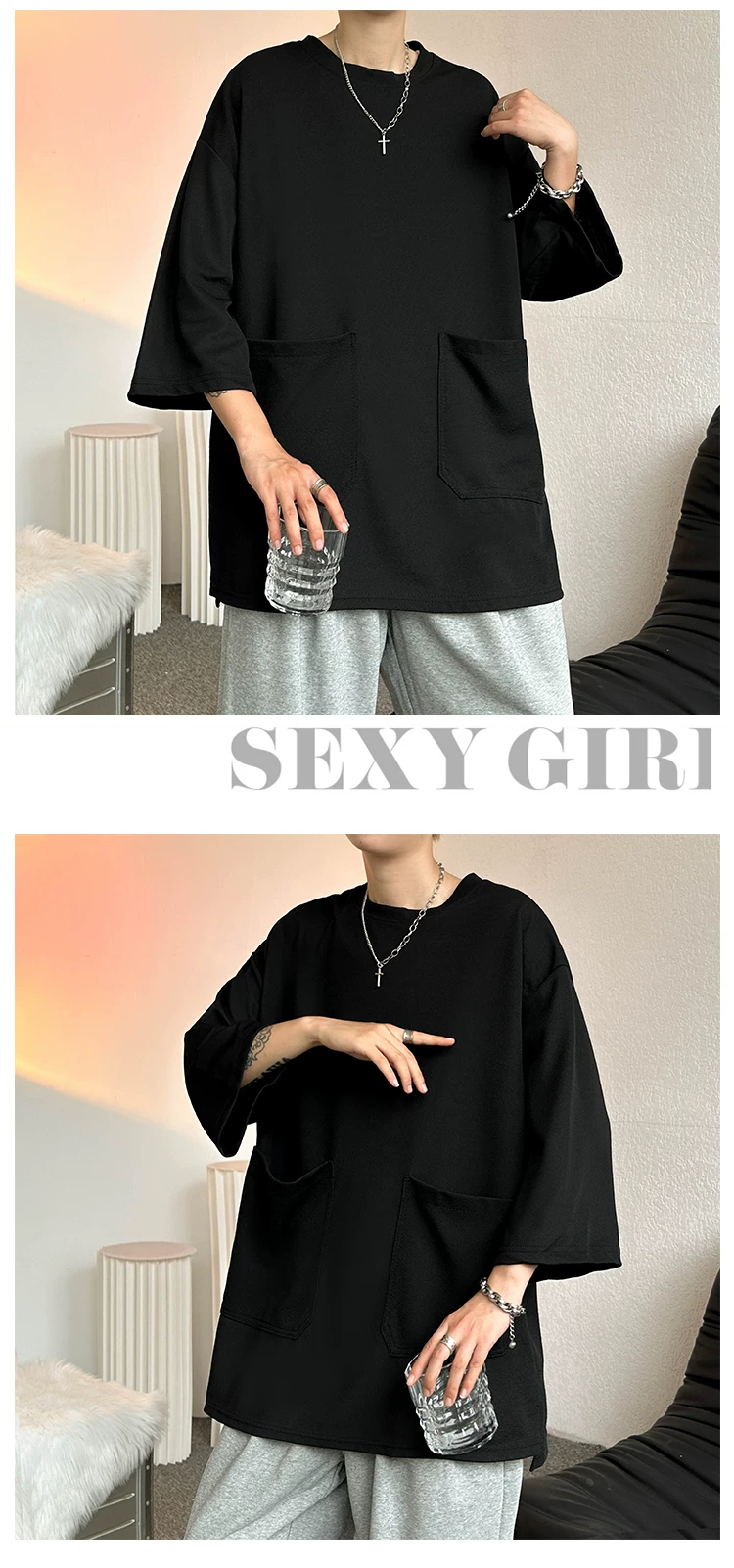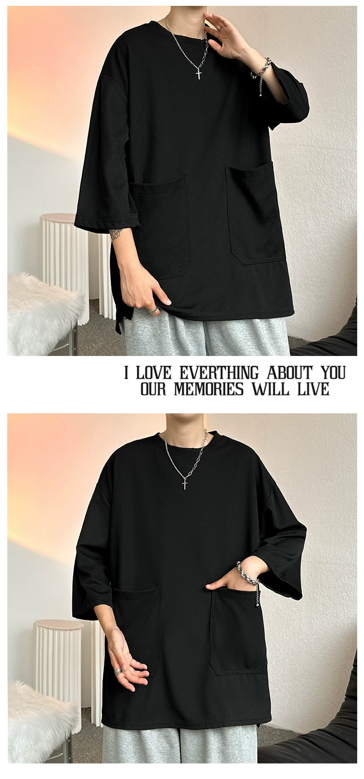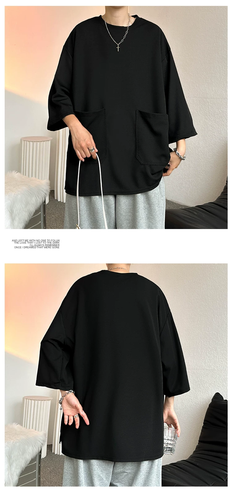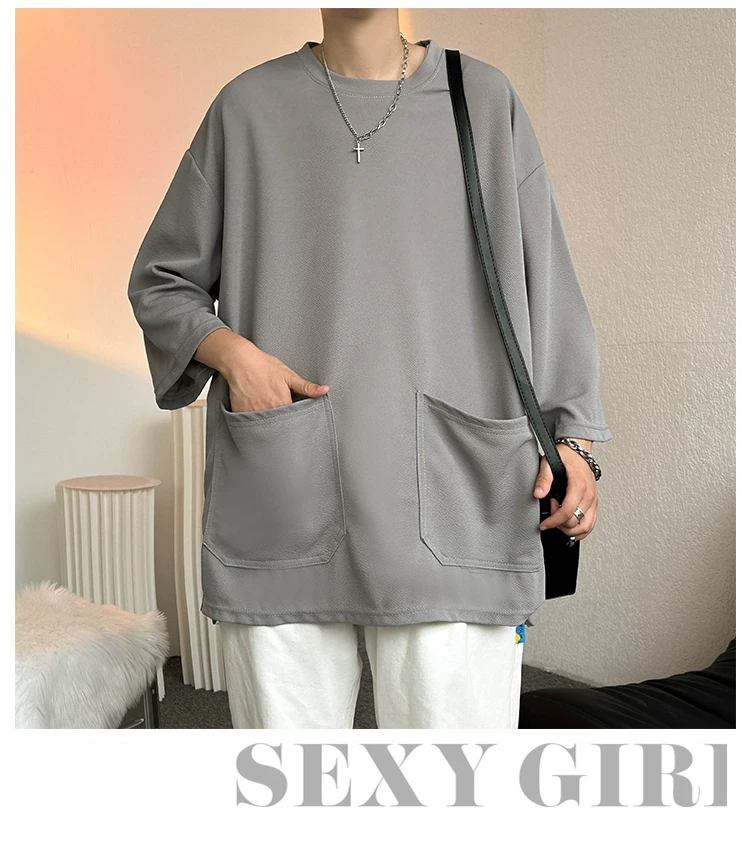 - Áo thun nam mùa hè dáng rộng phong cách Mỹ, có túi lớn, thương hiệu thời thượng, áo ngắn tay.
