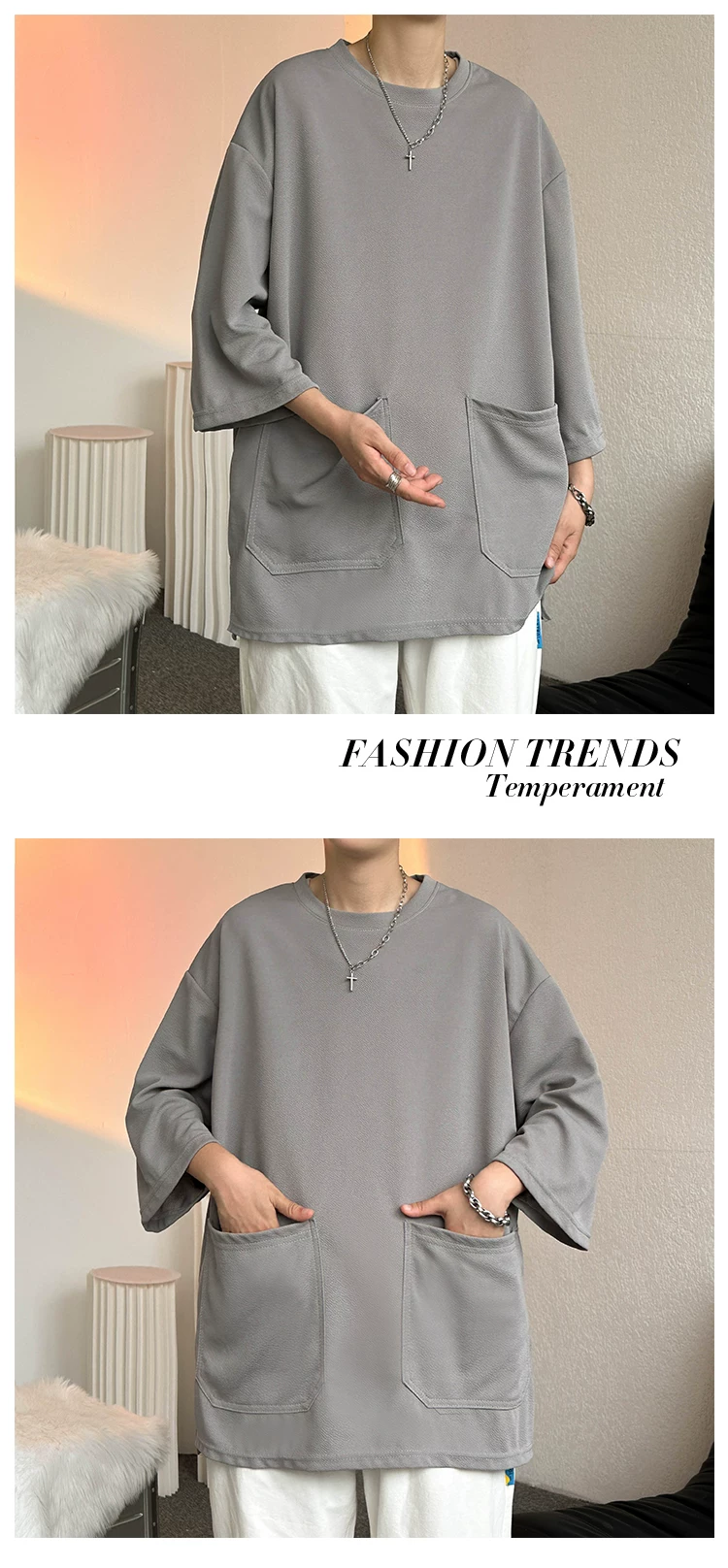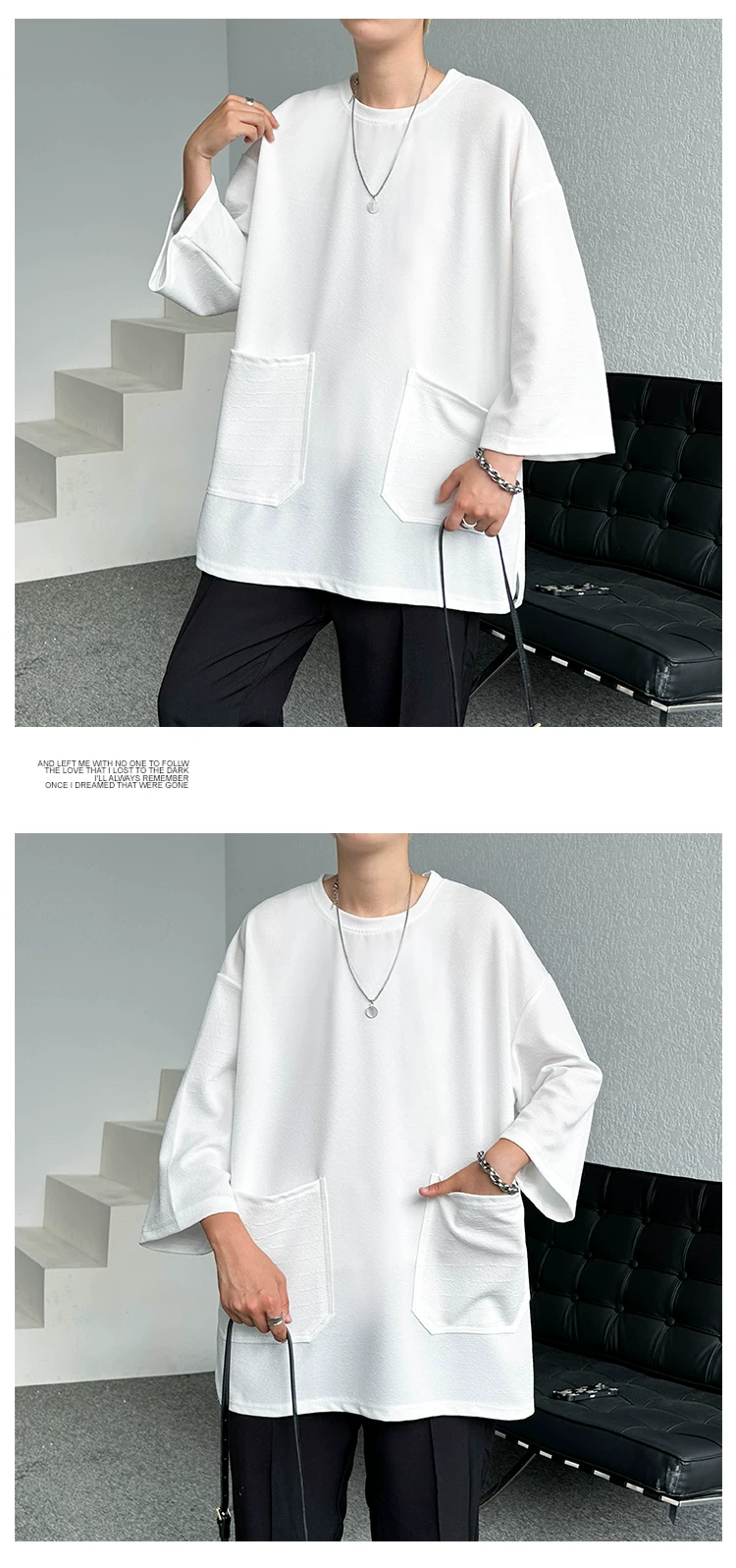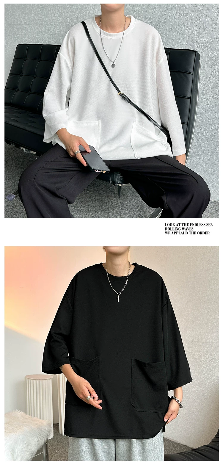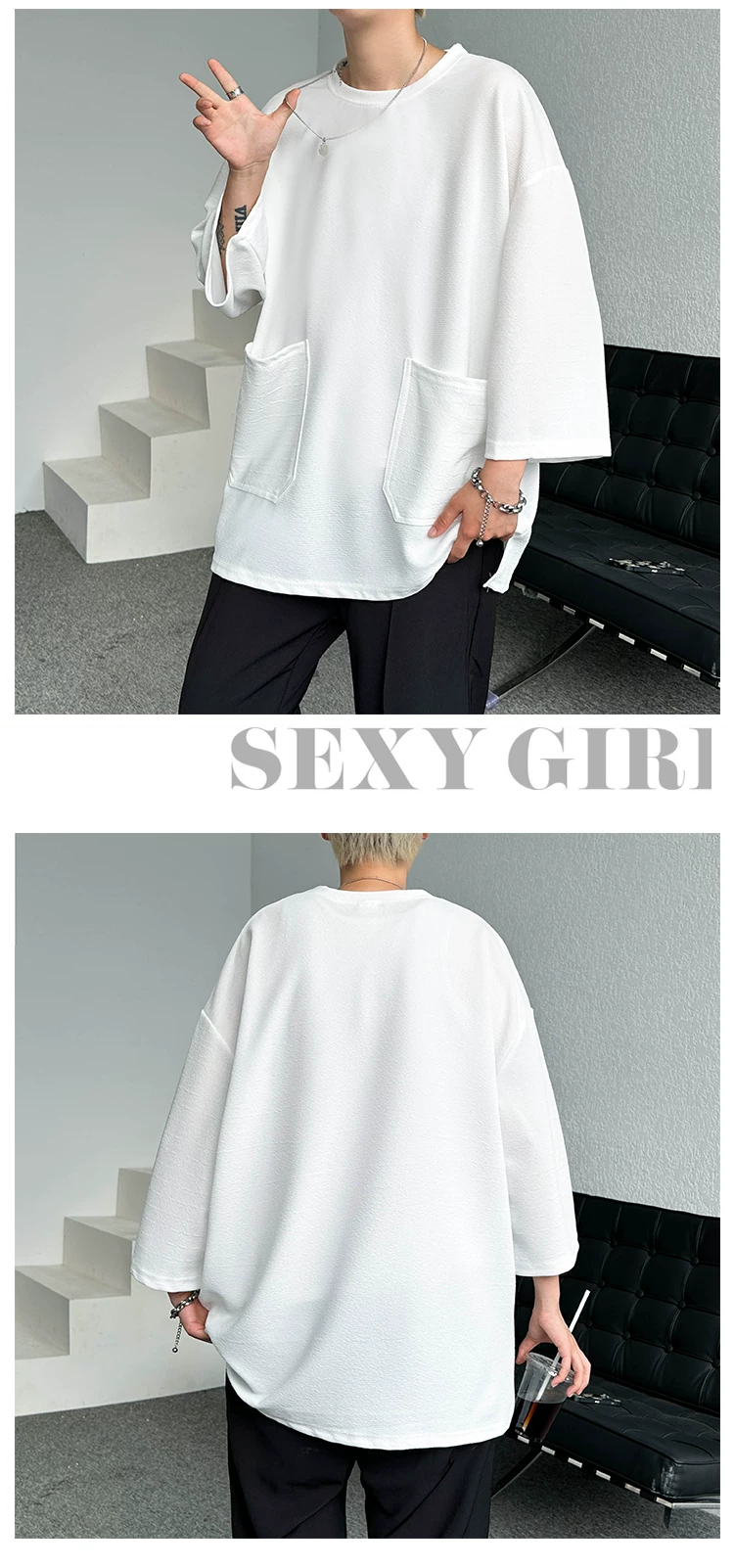 - Áo thun nam mùa hè dáng rộng phong cách Mỹ, có túi lớn, thương hiệu thời thượng, áo ngắn tay.