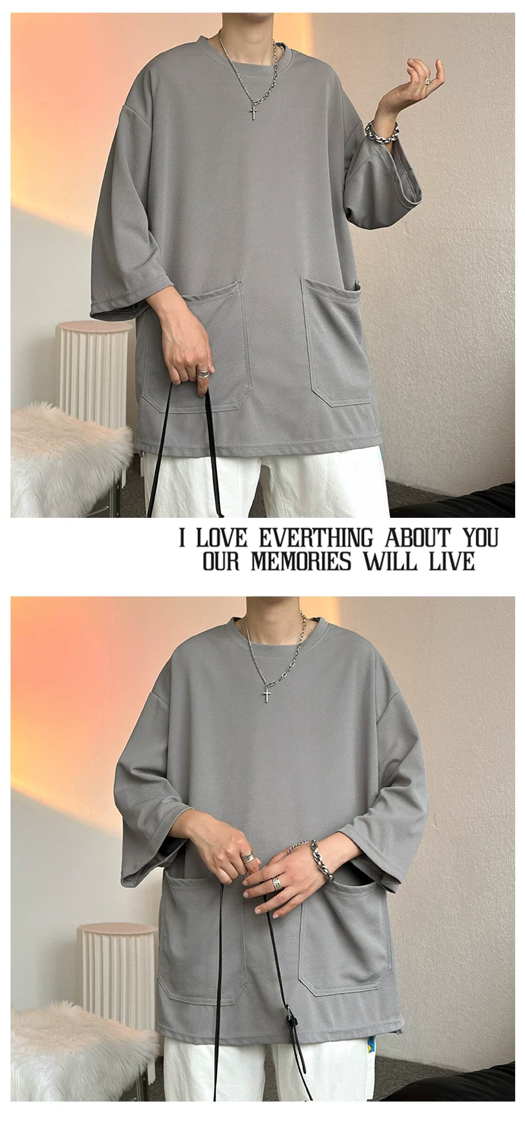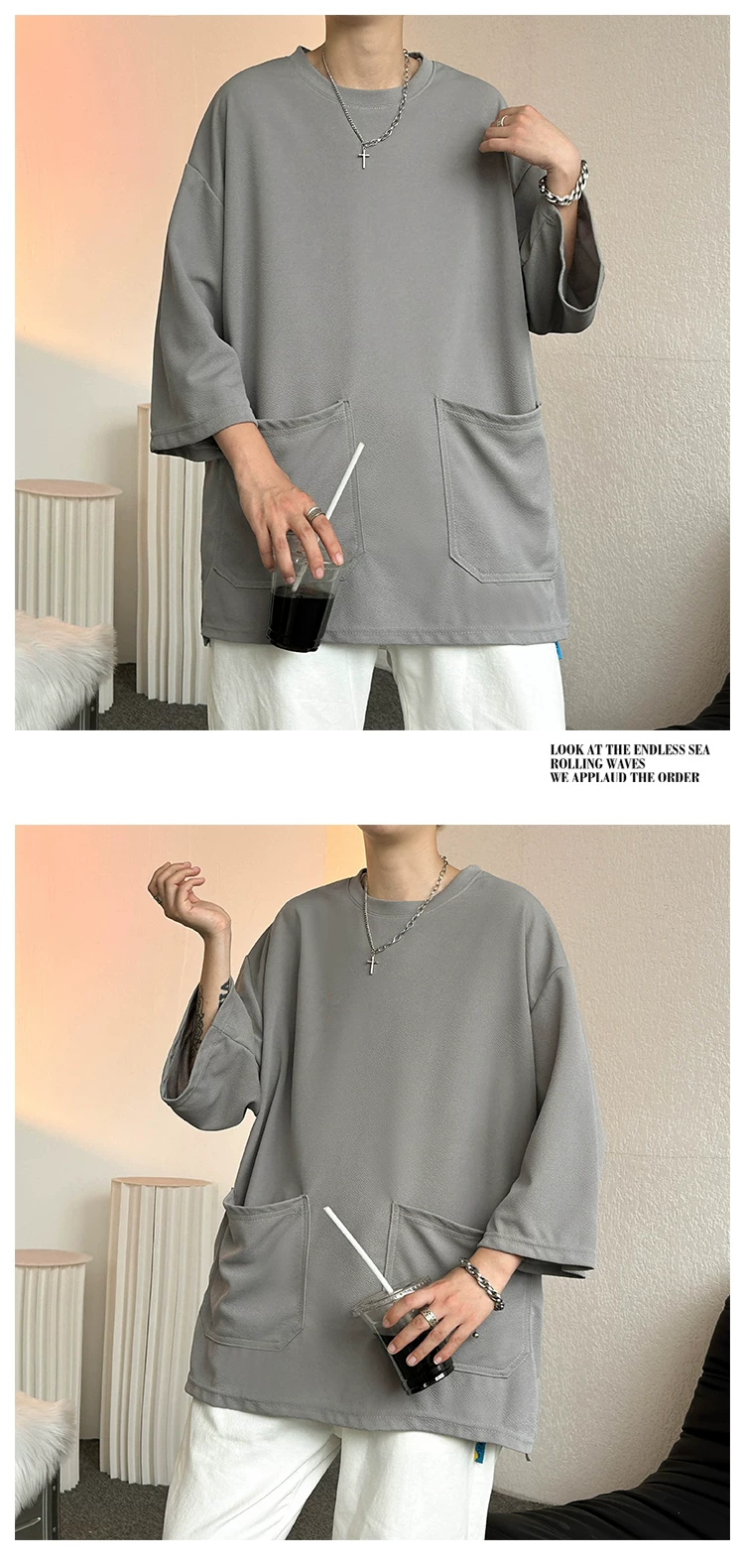 Áo thun nam mùa hè dáng rộng phong cách Mỹ, có túi lớn, thương hiệu thời thượng, áo ngắn tay.
