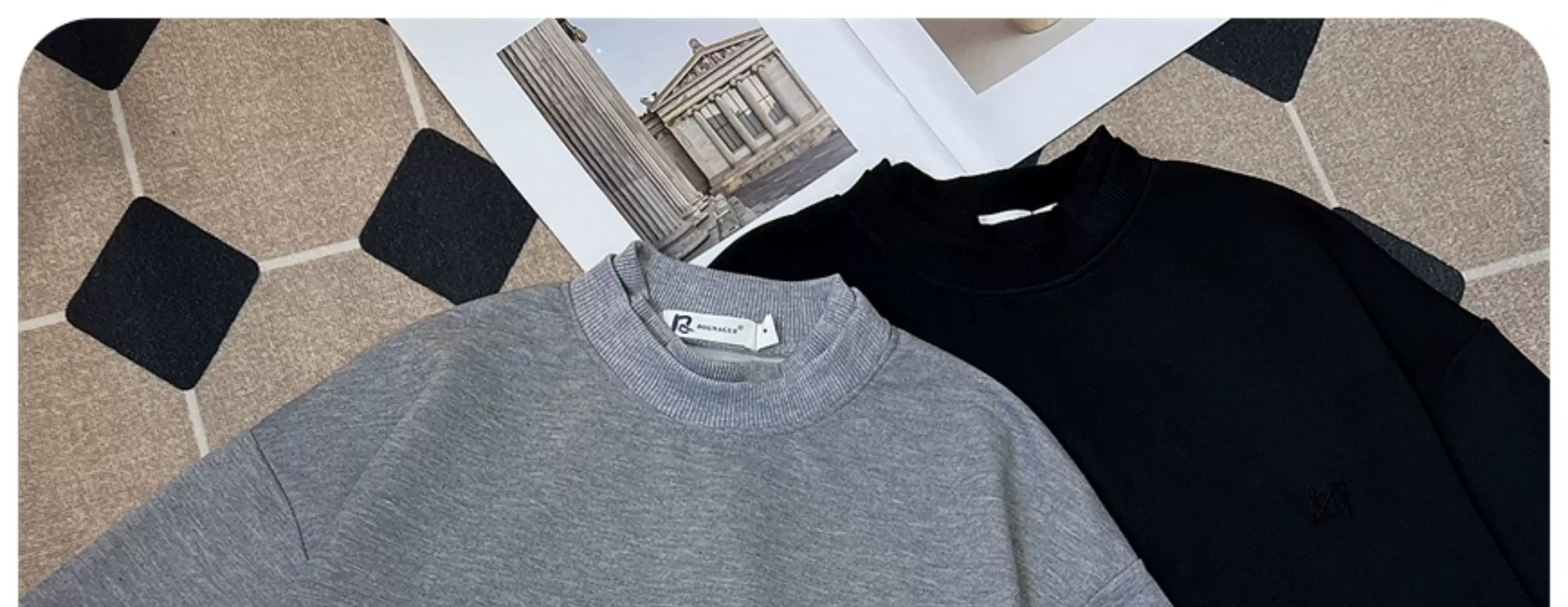 Áo thun nam ngắn tay màu trơn cơ bản, áo cổ lọ rộng rãi, áo thun ngắn tay phong cách Mỹ hợp thời trang mùa hè