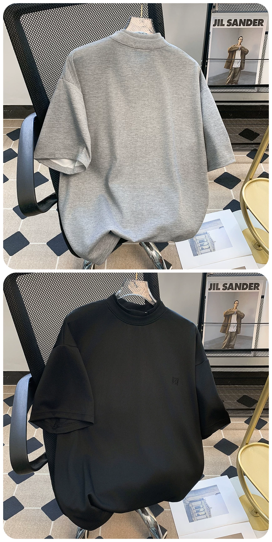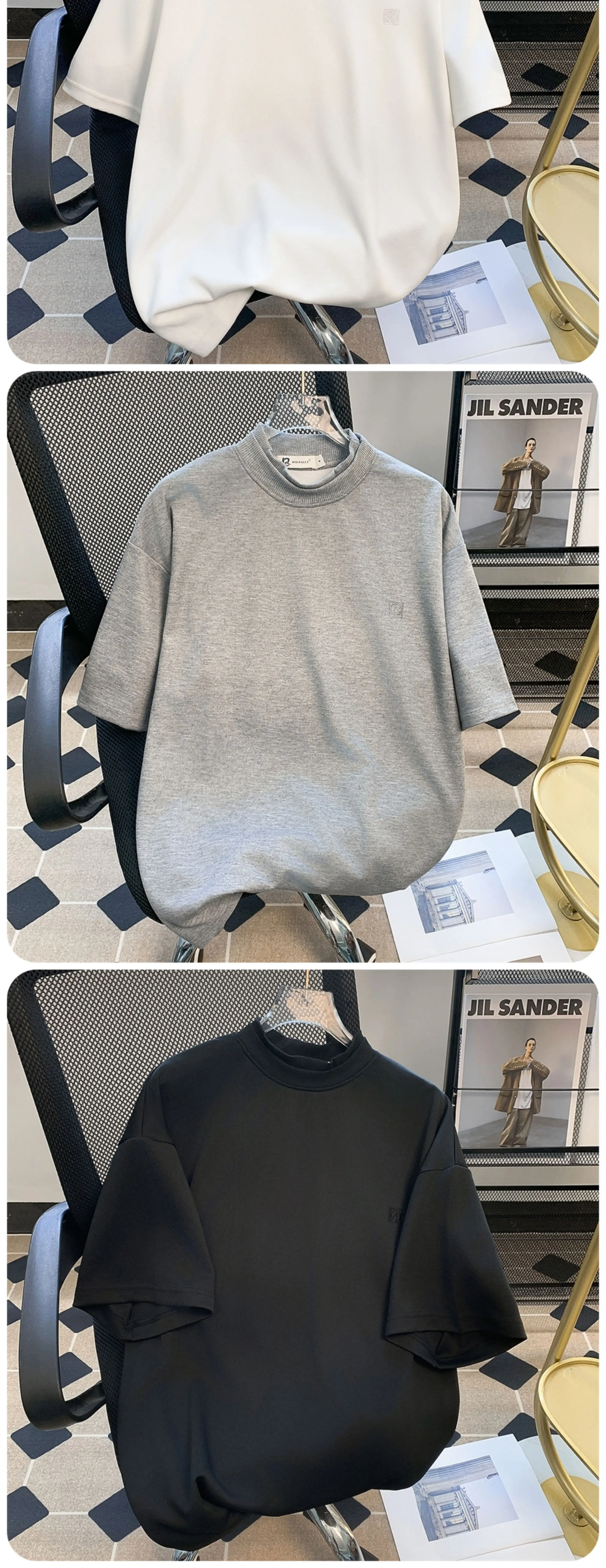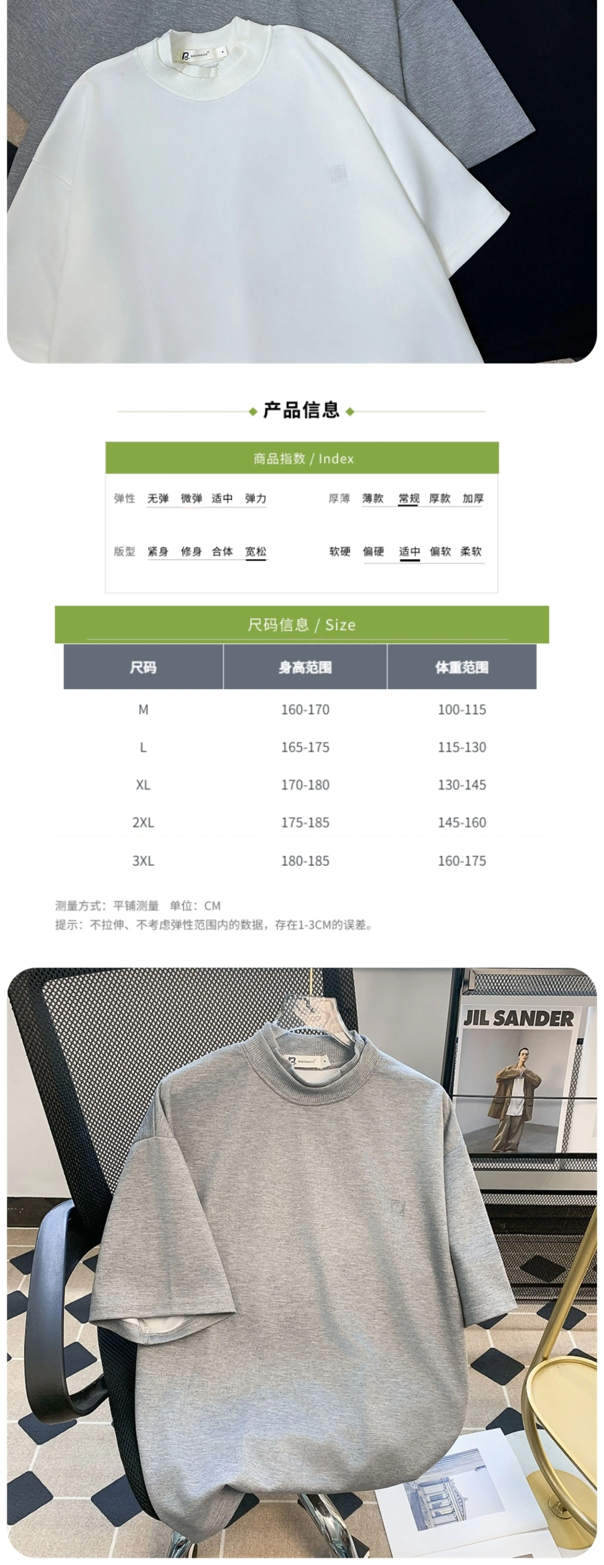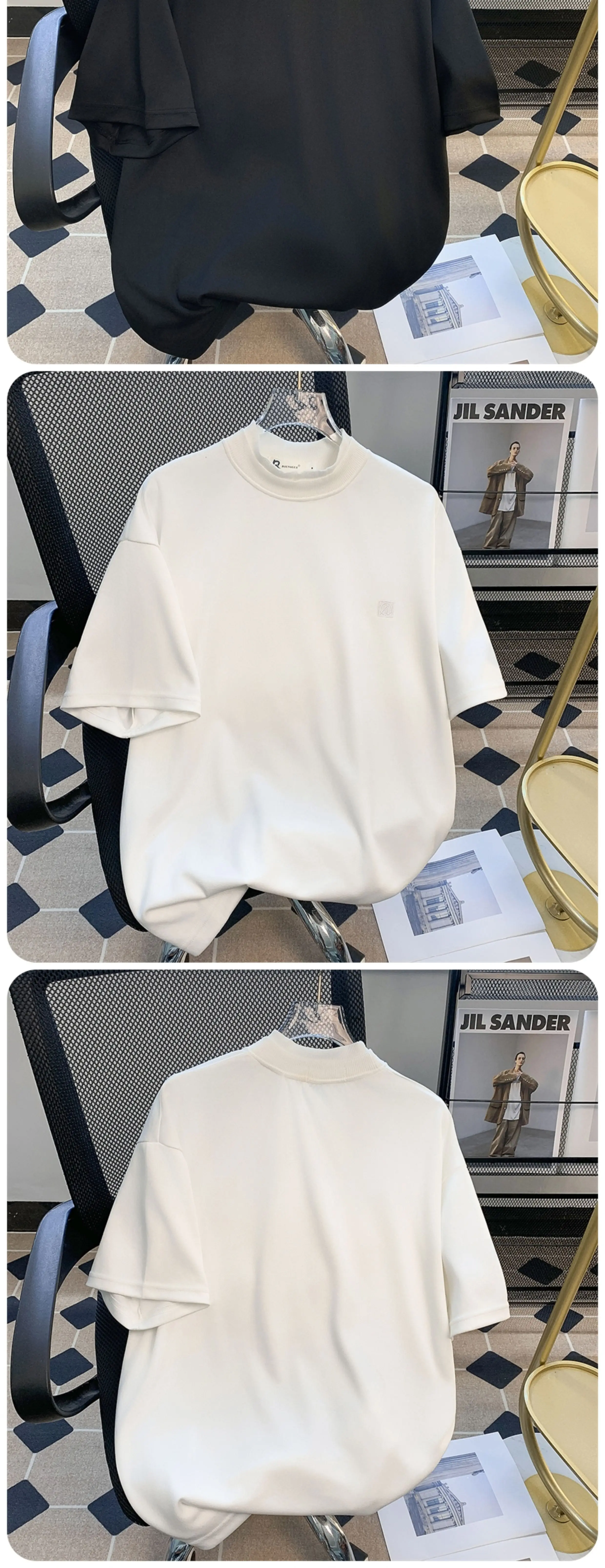 - Áo thun nam ngắn tay màu trơn cơ bản, áo cổ lọ rộng rãi, áo thun ngắn tay phong cách Mỹ hợp thời trang mùa hè