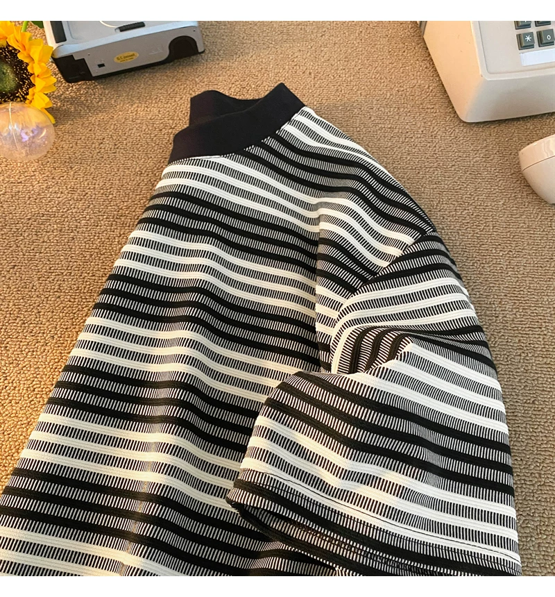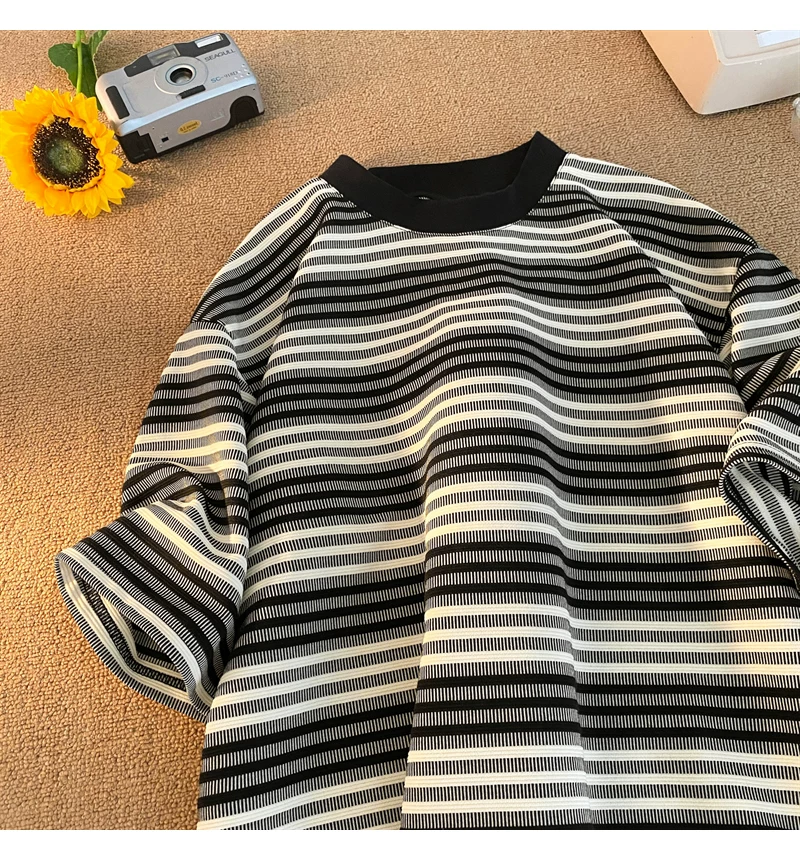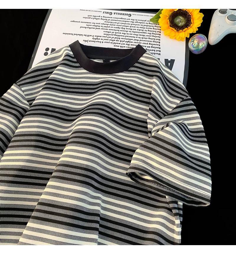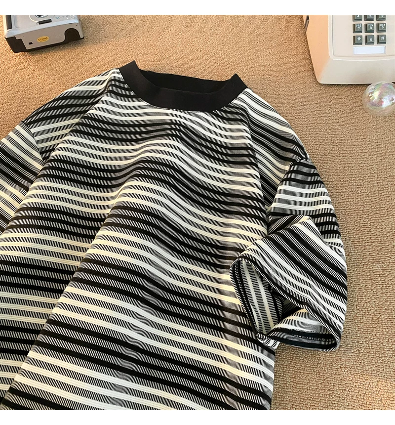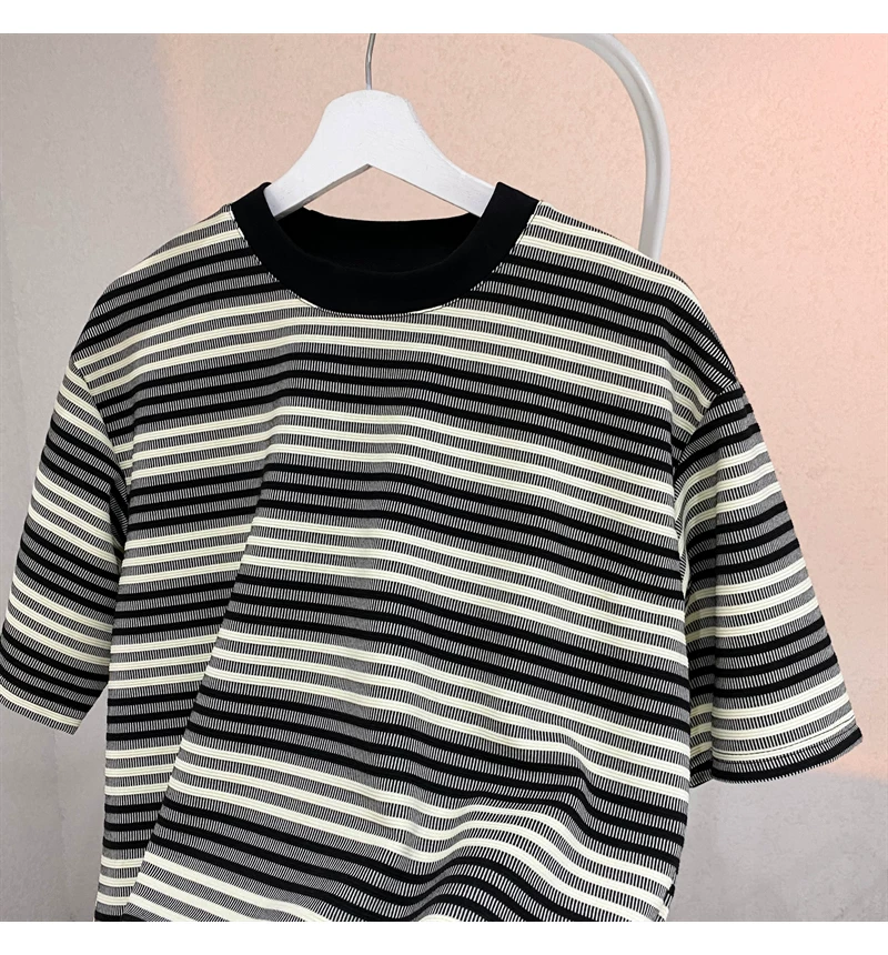 - Áo thun nam sọc phối màu, tay ngắn, dáng rộng, chất liệu cotton dày dặn, phong cách retro Mỹ thời thượng mùa hè.