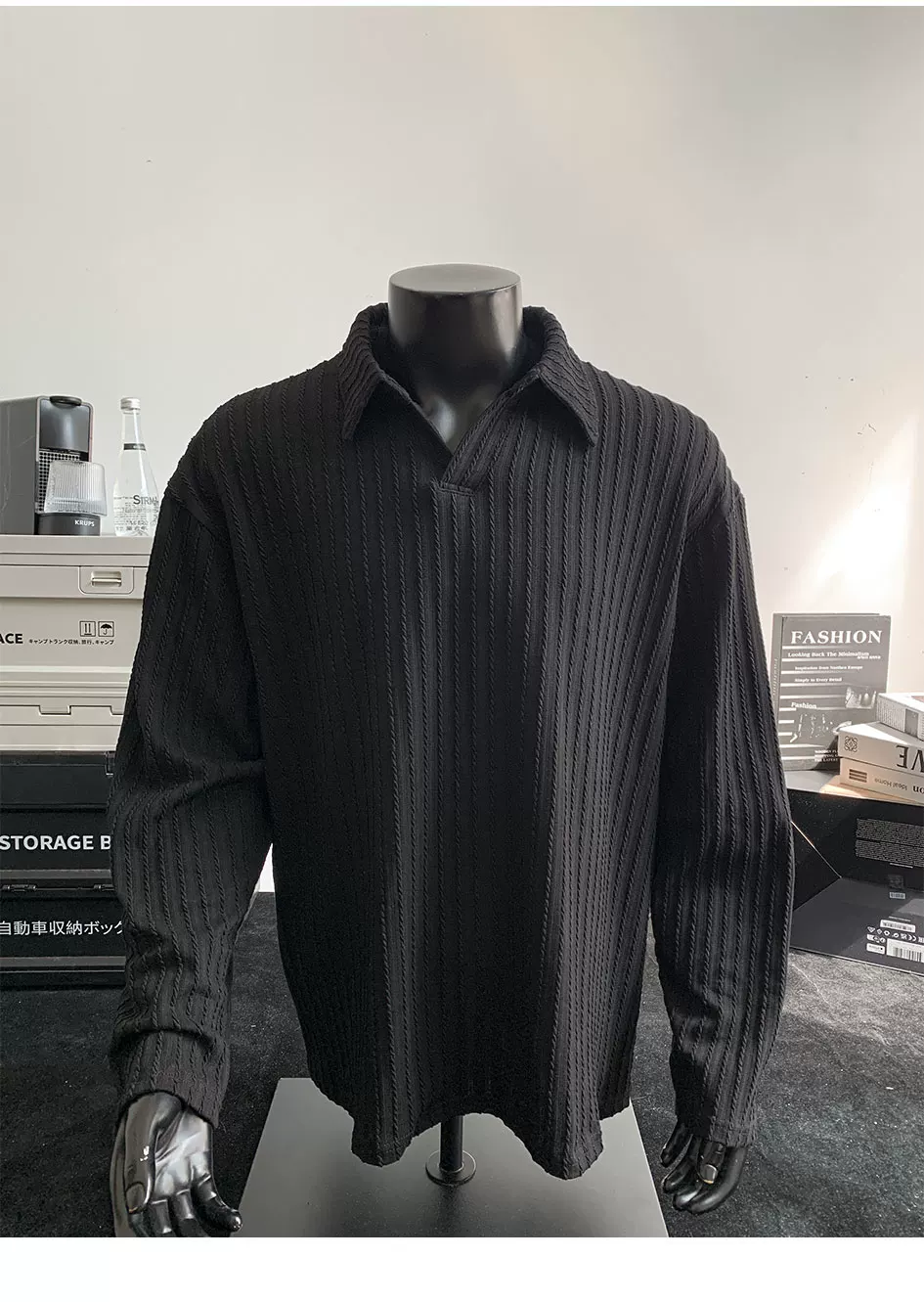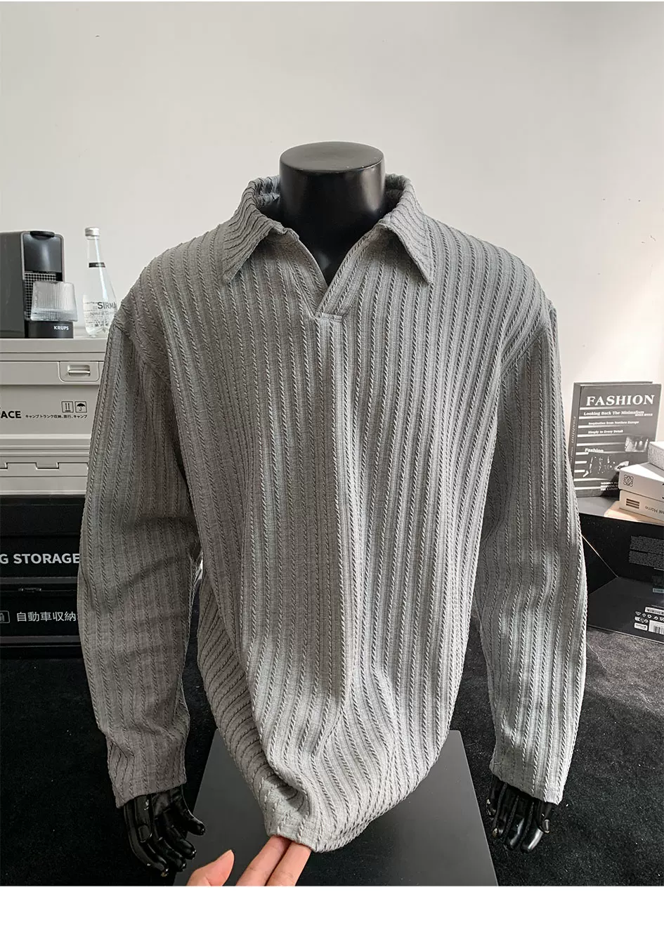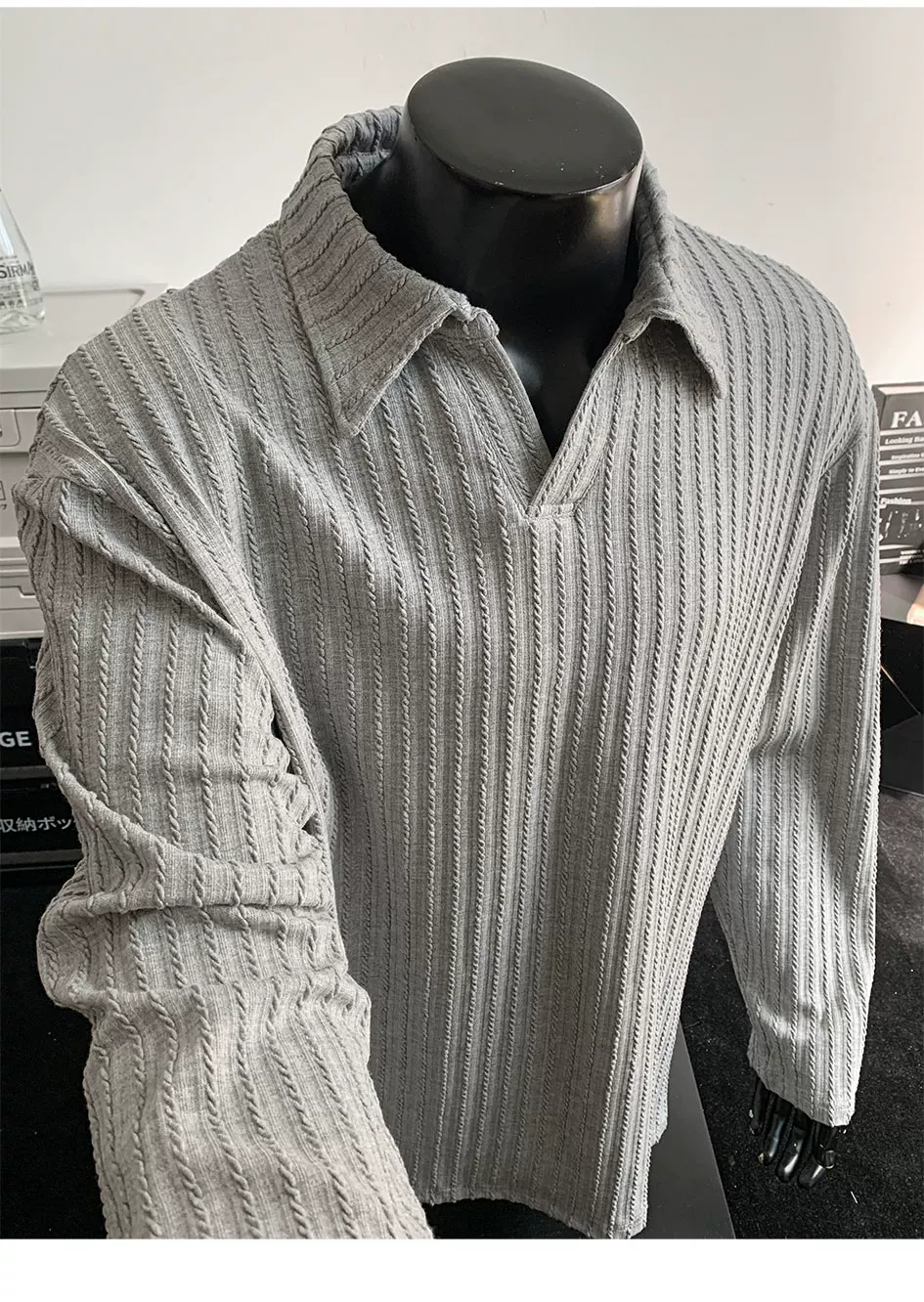 - Áo thun nam tay dài dệt kim sọc, kiểu dáng rộng rãi, chất liệu cao cấp, phong cách Mỹ, cổ polo, thích hợp cho mùa xuân thu.