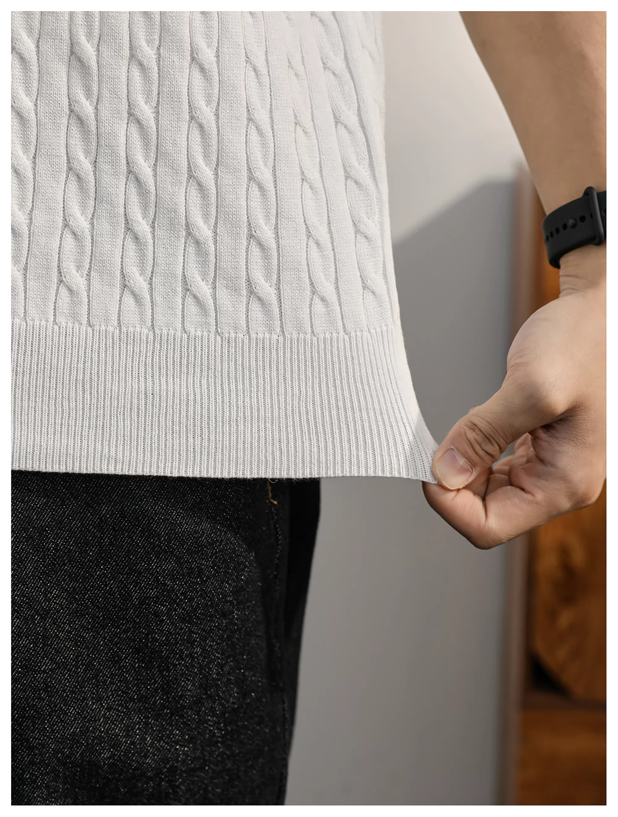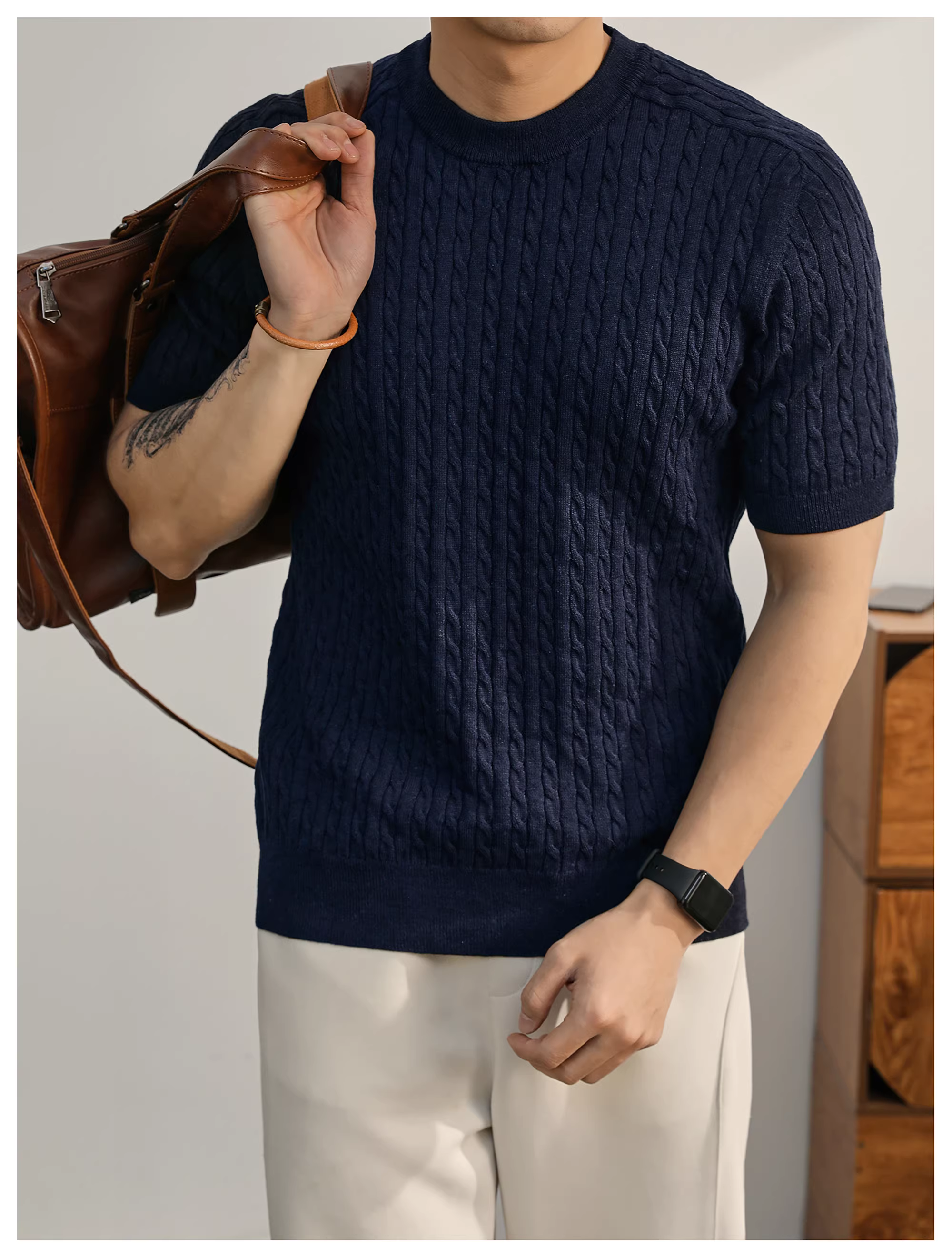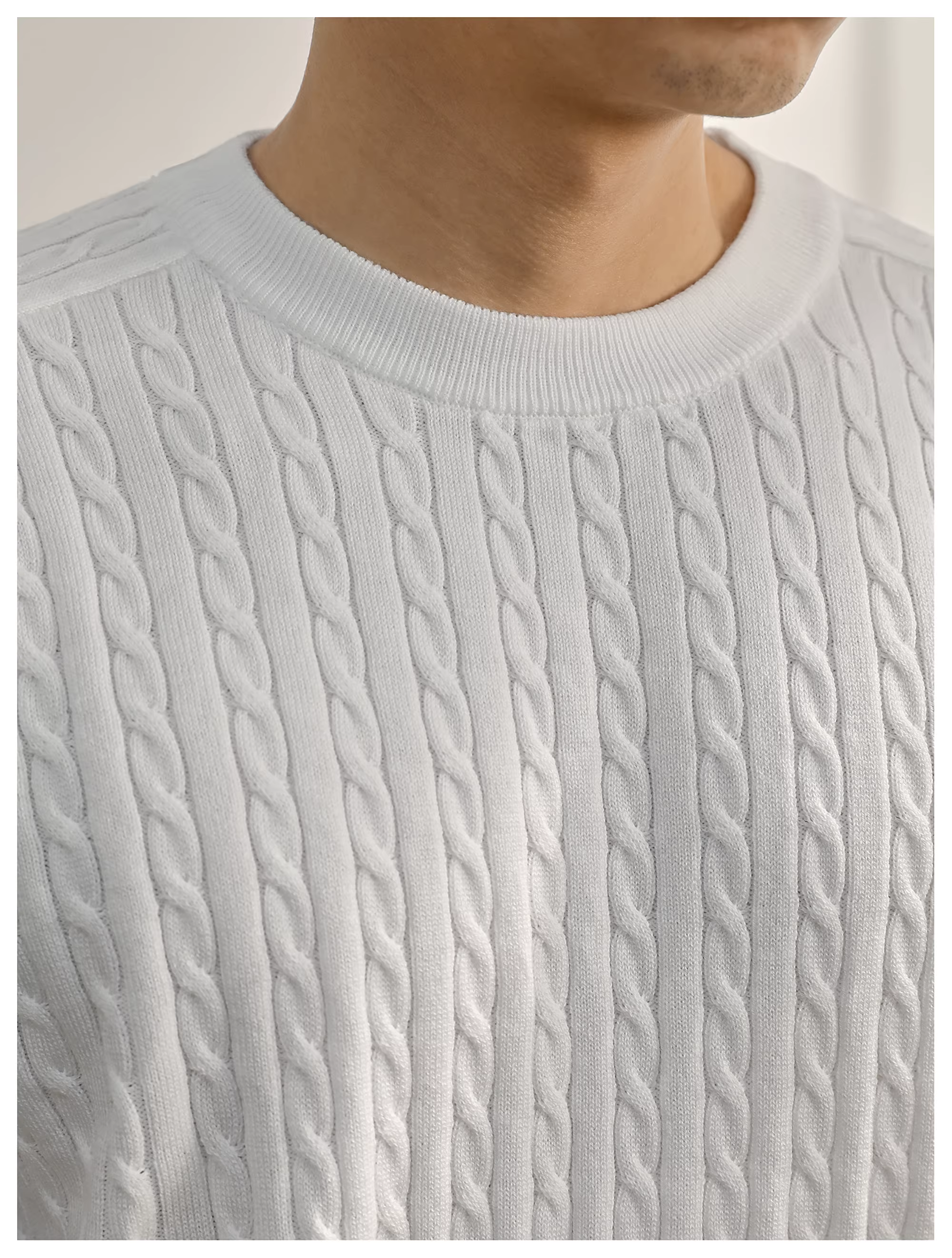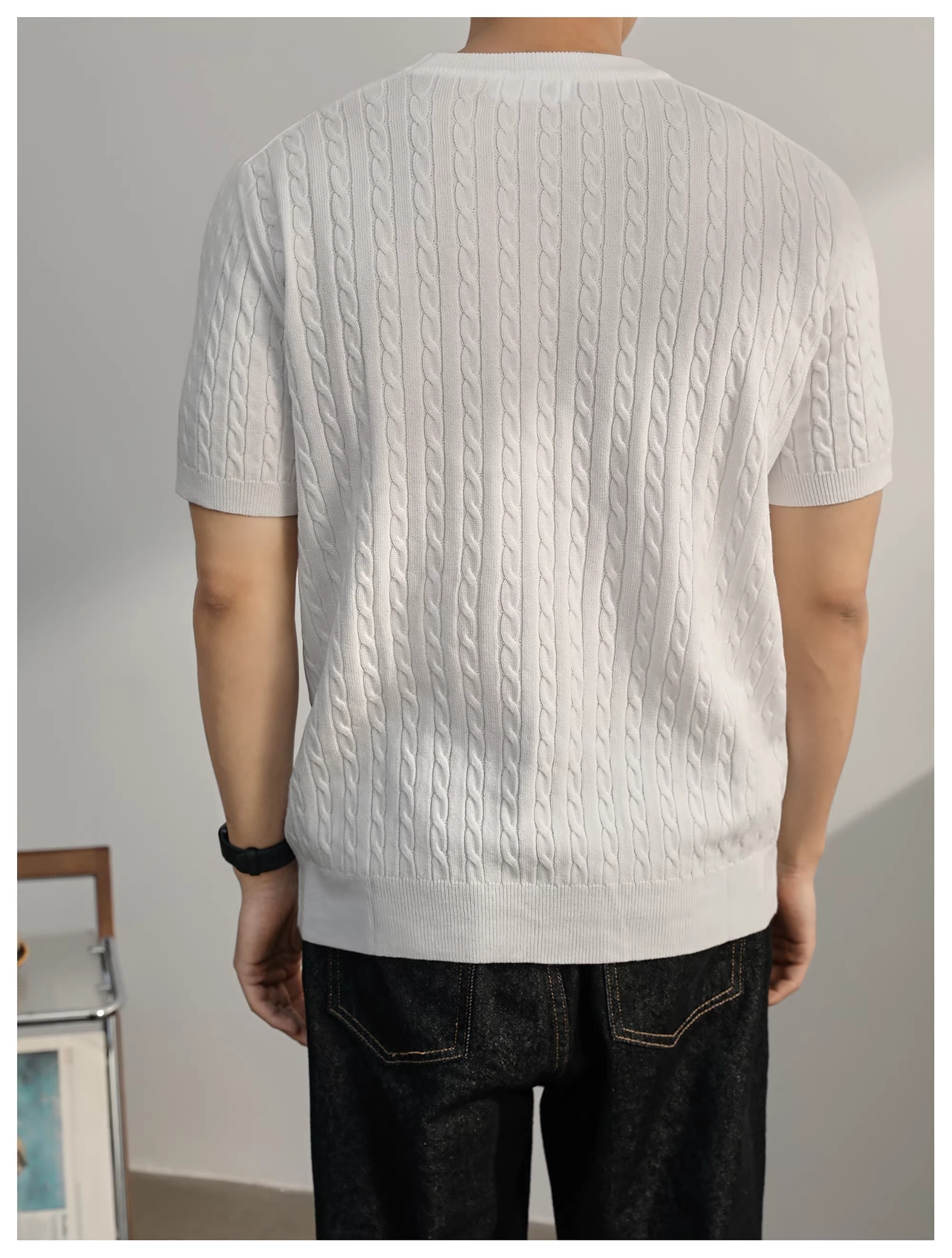 - Áo thun nam tay ngắn chất liệu len pha, kiểu dáng dệt thừng LUUD, màu trắng, phong cách casual sang trọng nhẹ nhàng mùa hè, cổ tròn.