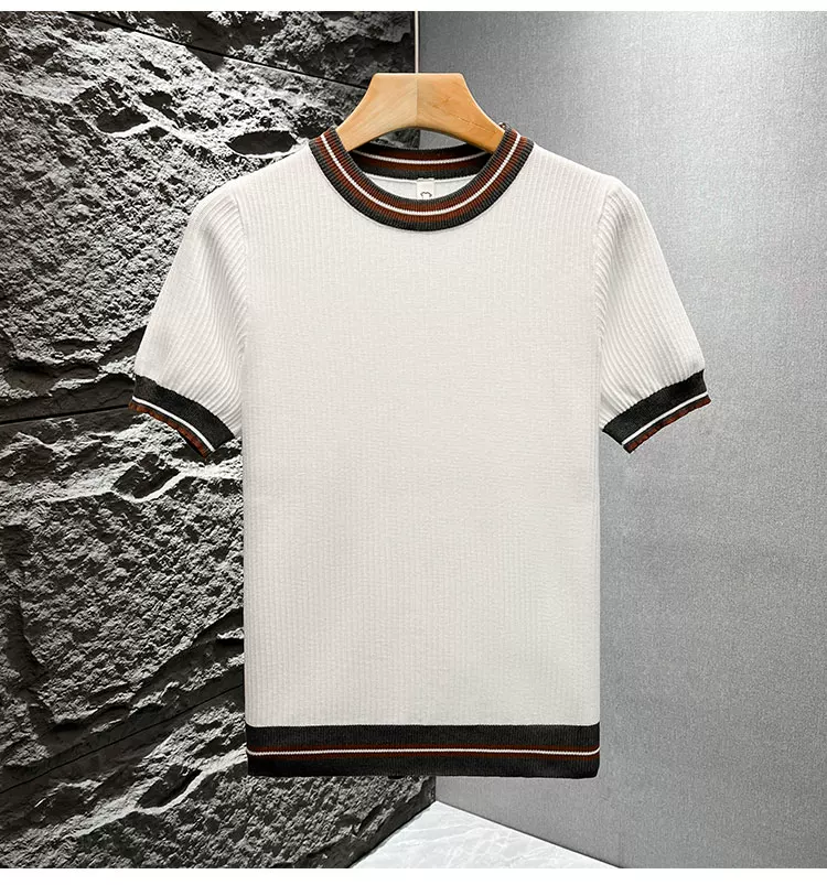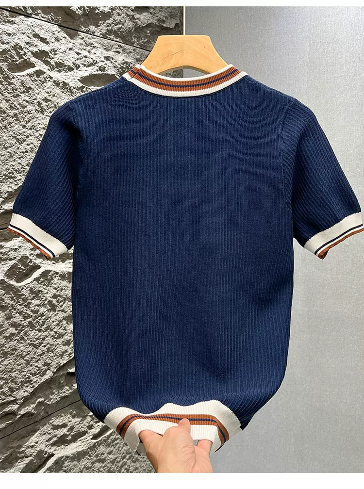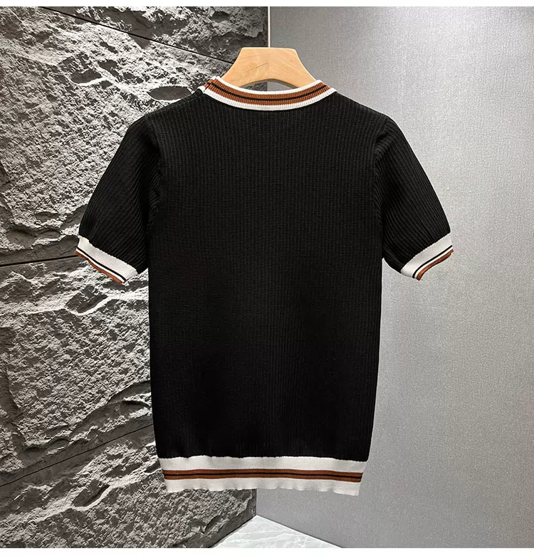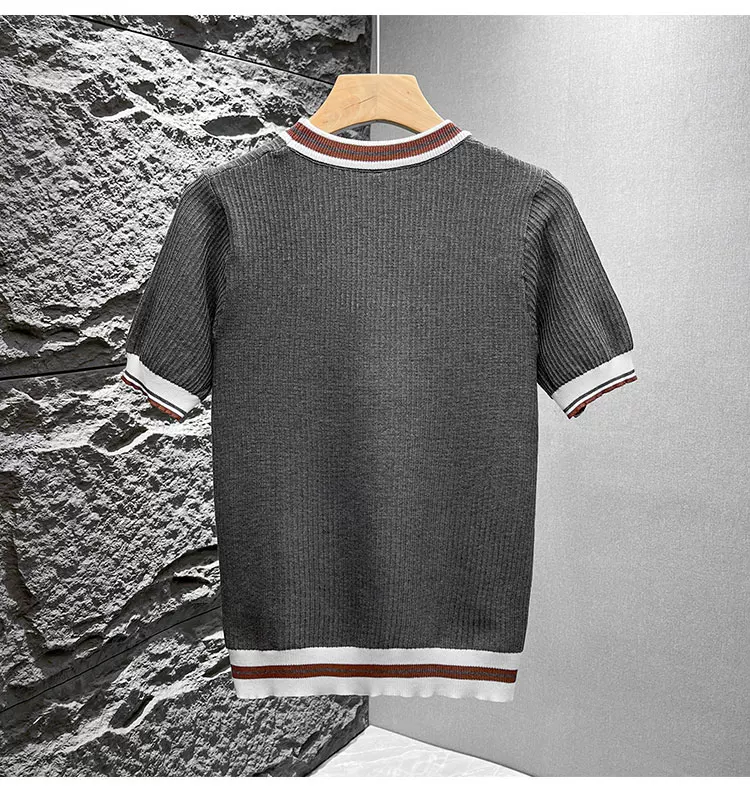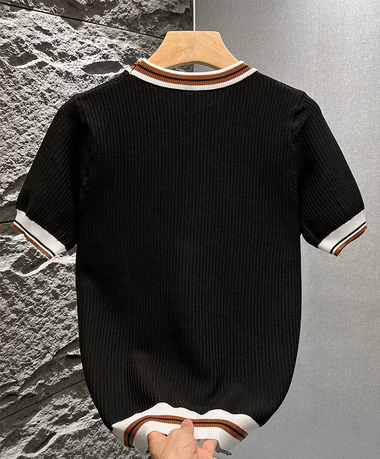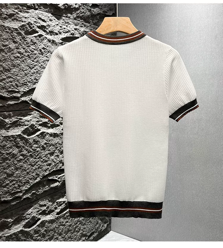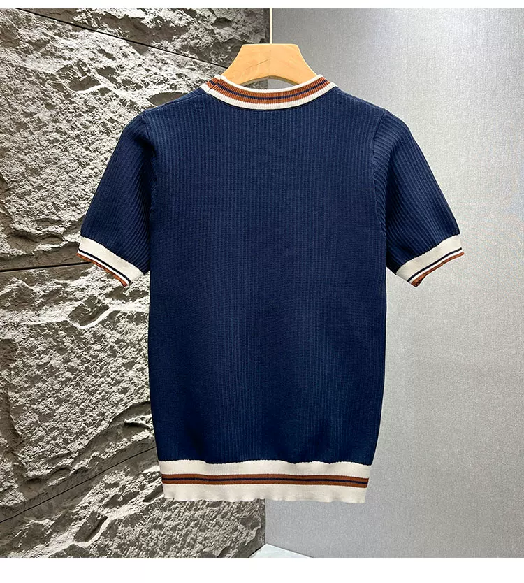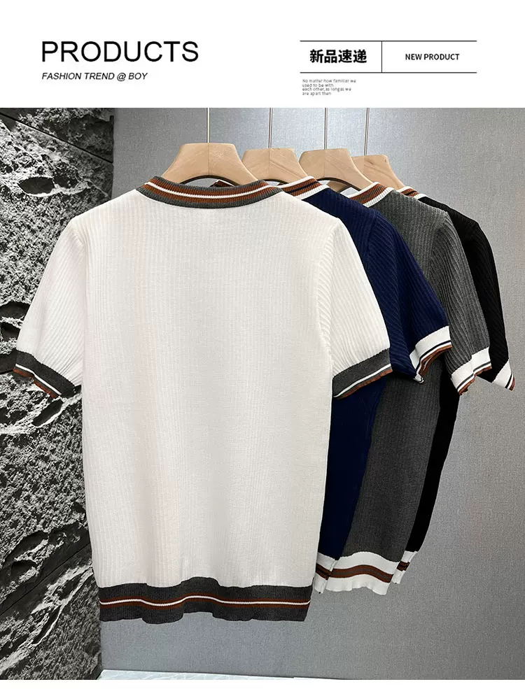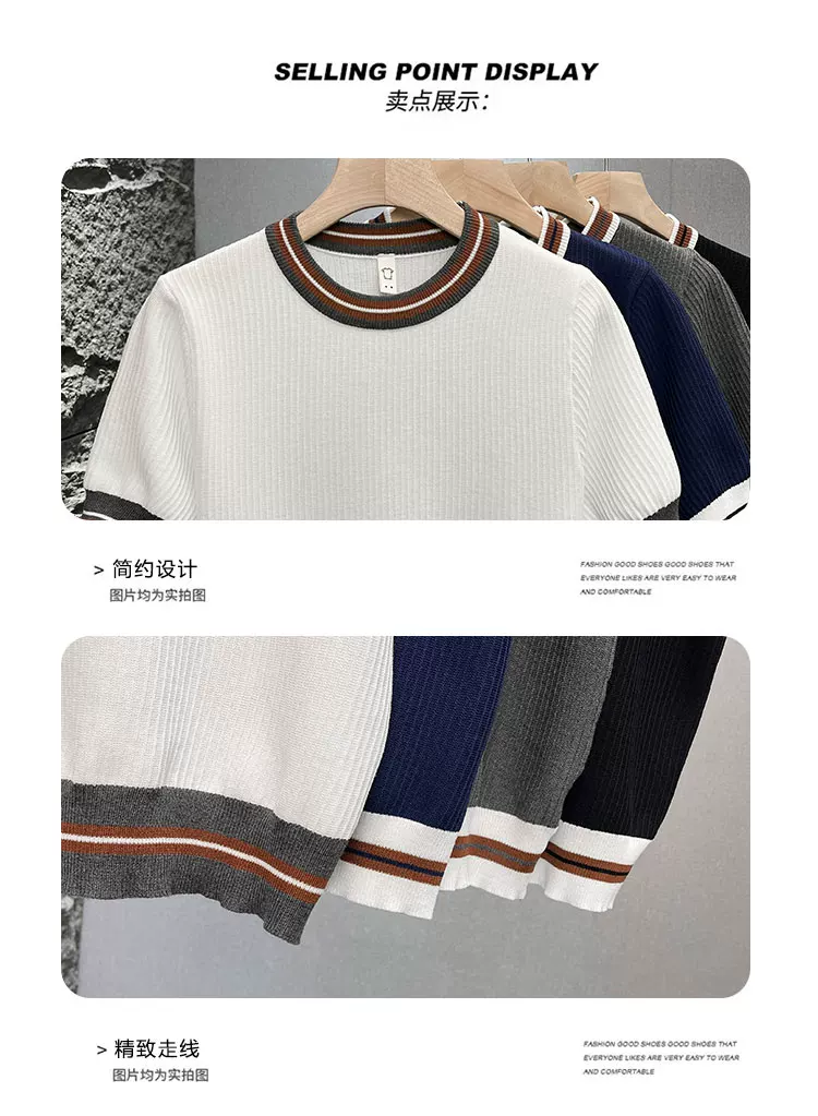 - Áo thun nam tay ngắn dệt kim phối màu kiểu Mỹ, áo thun mùa hè mới chất liệu lụa băng thoáng khí, cảm giác cao cấp, kiểu dáng rộng rãi.