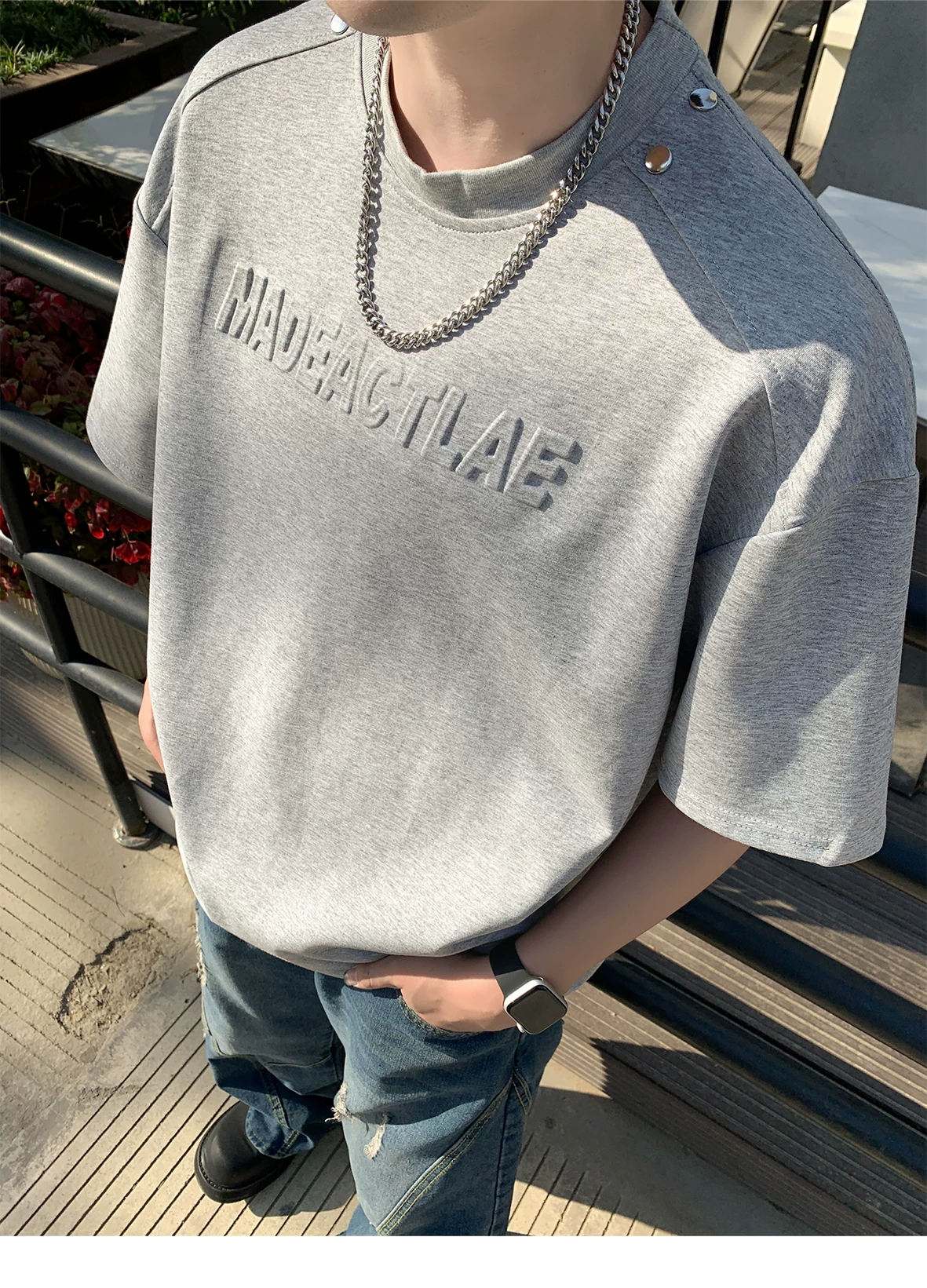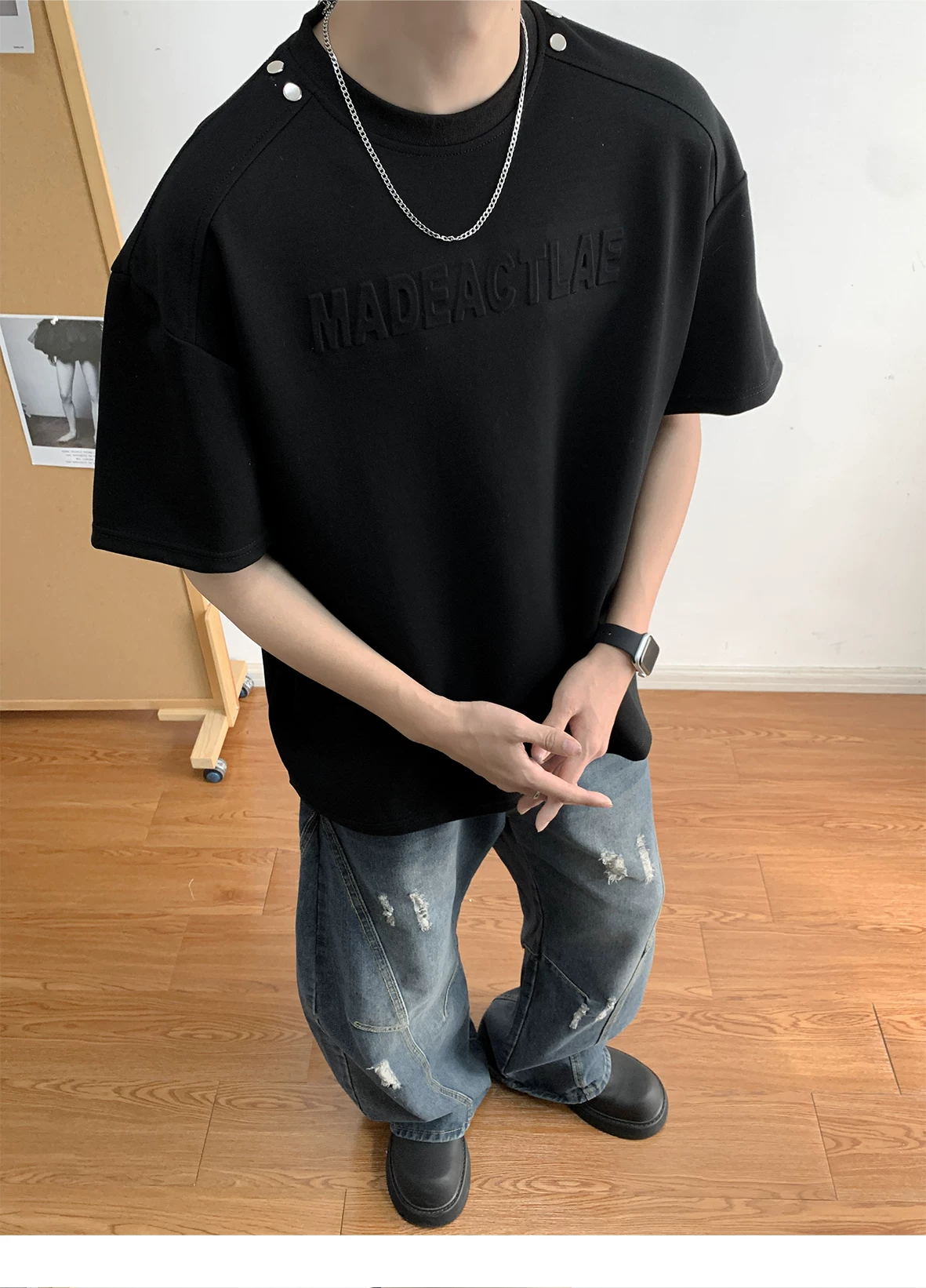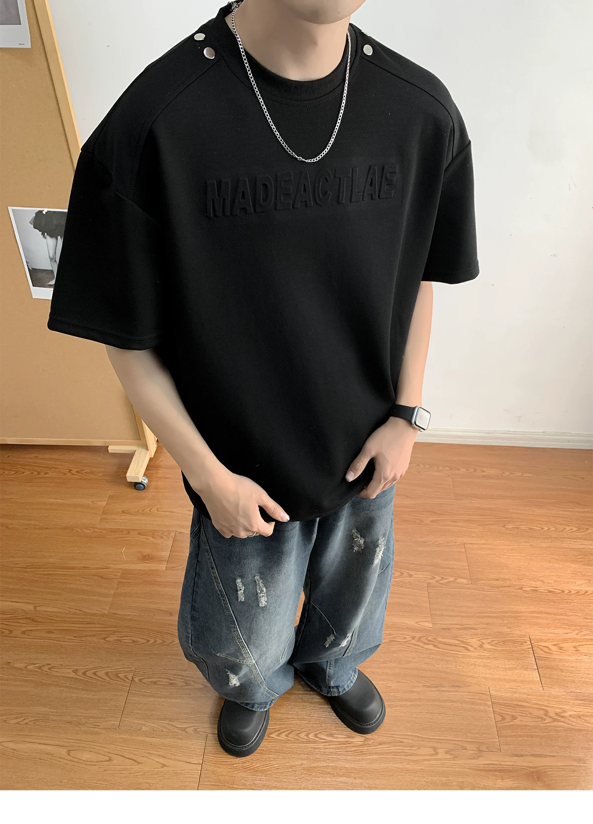 - Áo thun nam tay ngắn in nổi 3D, áo thun tay lửng kiểu Mỹ retro, áo đôi thời trang mùa hè
