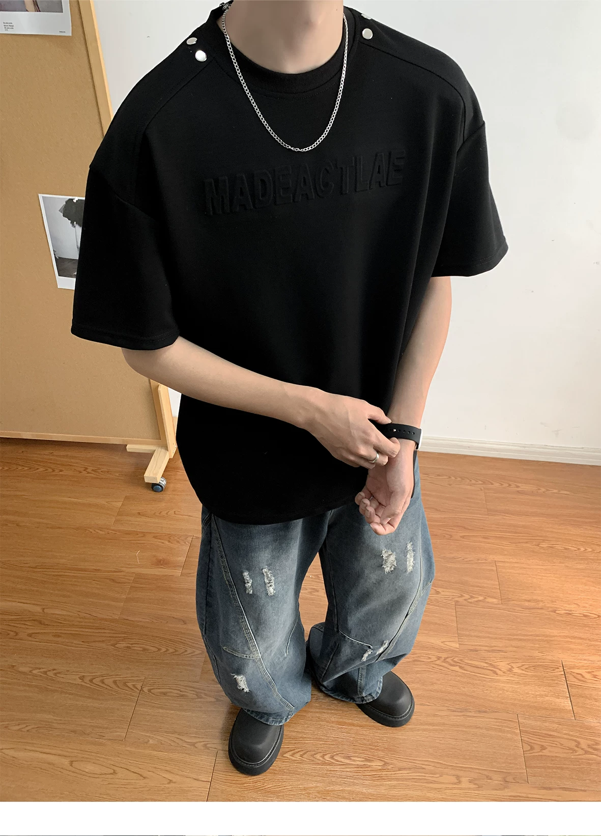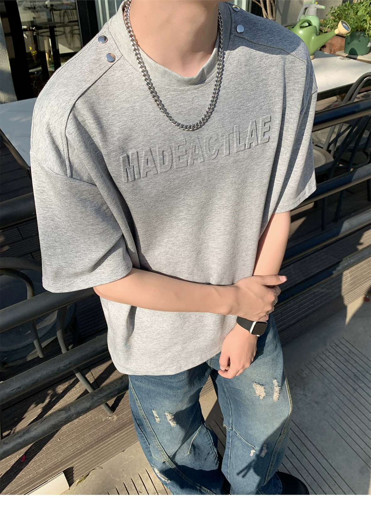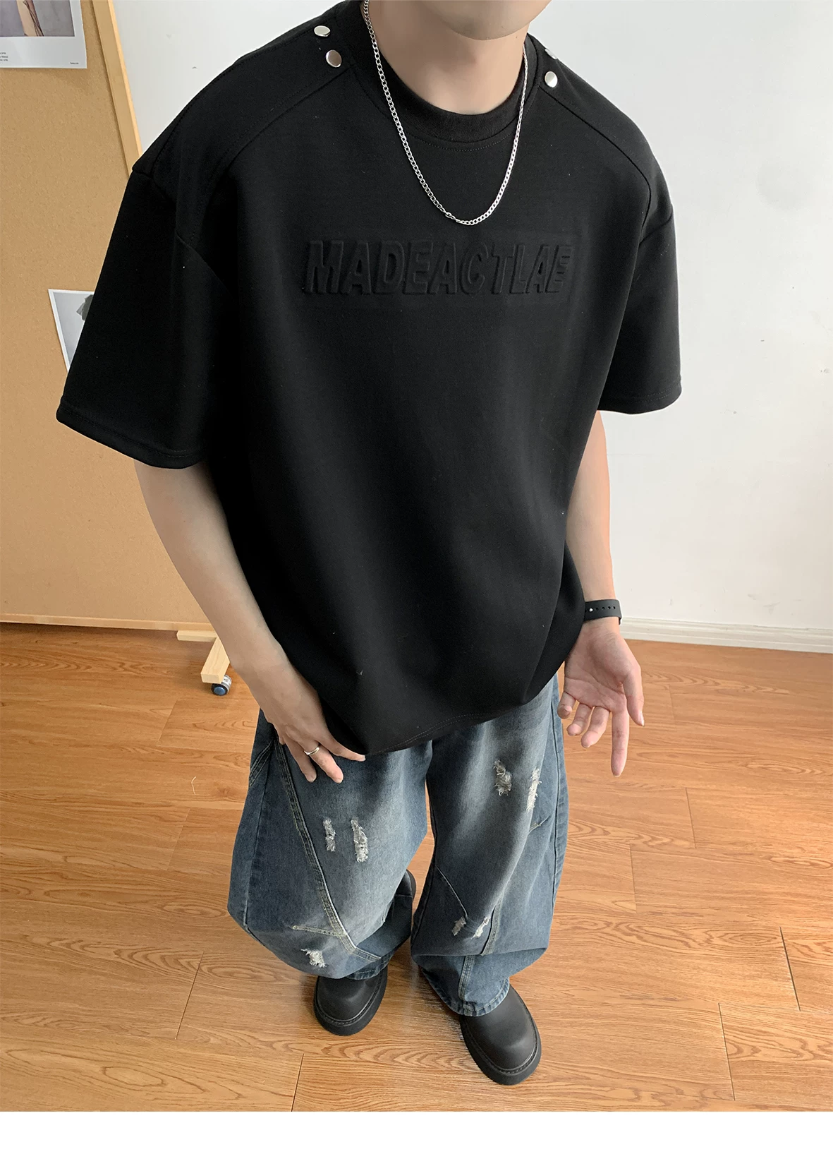 - Áo thun nam tay ngắn in nổi 3D, áo thun tay lửng kiểu Mỹ retro, áo đôi thời trang mùa hè