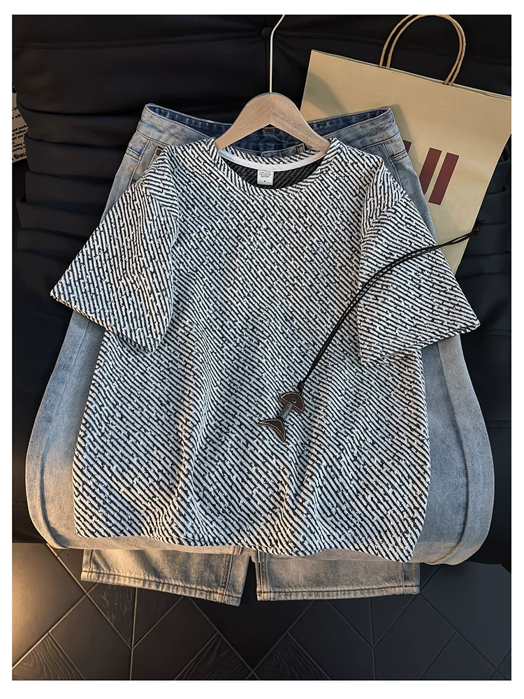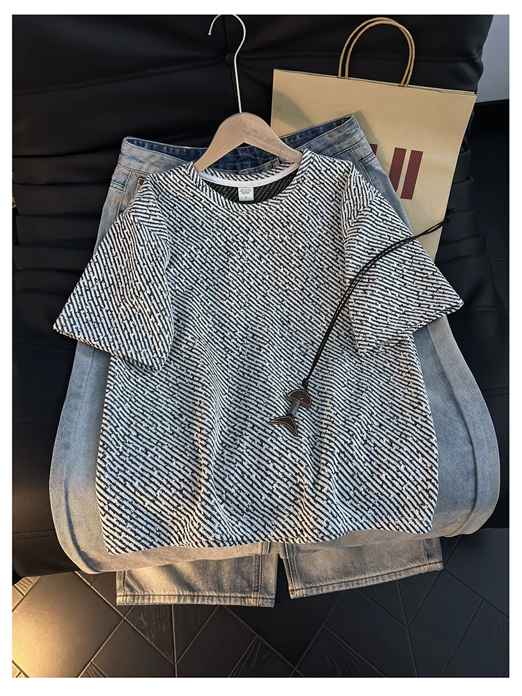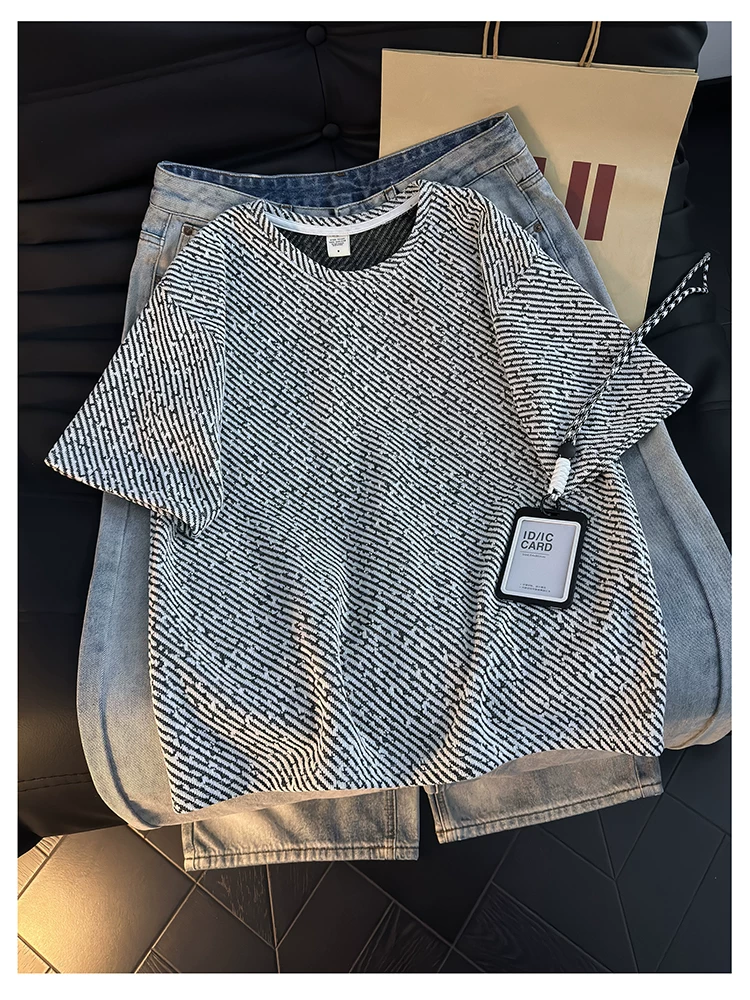 Áo thun nam tay ngắn kiểu Mỹ, áo thun cổ tròn dáng rộng mùa hè, thương hiệu thời thượng, cảm giác đơn giản và cao cấp.