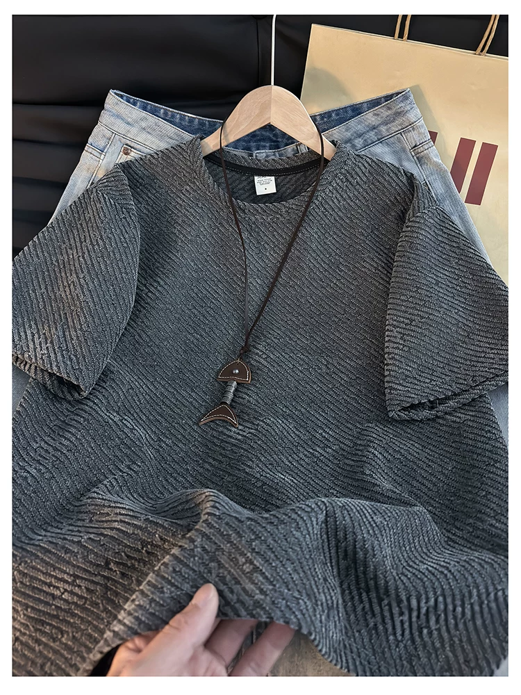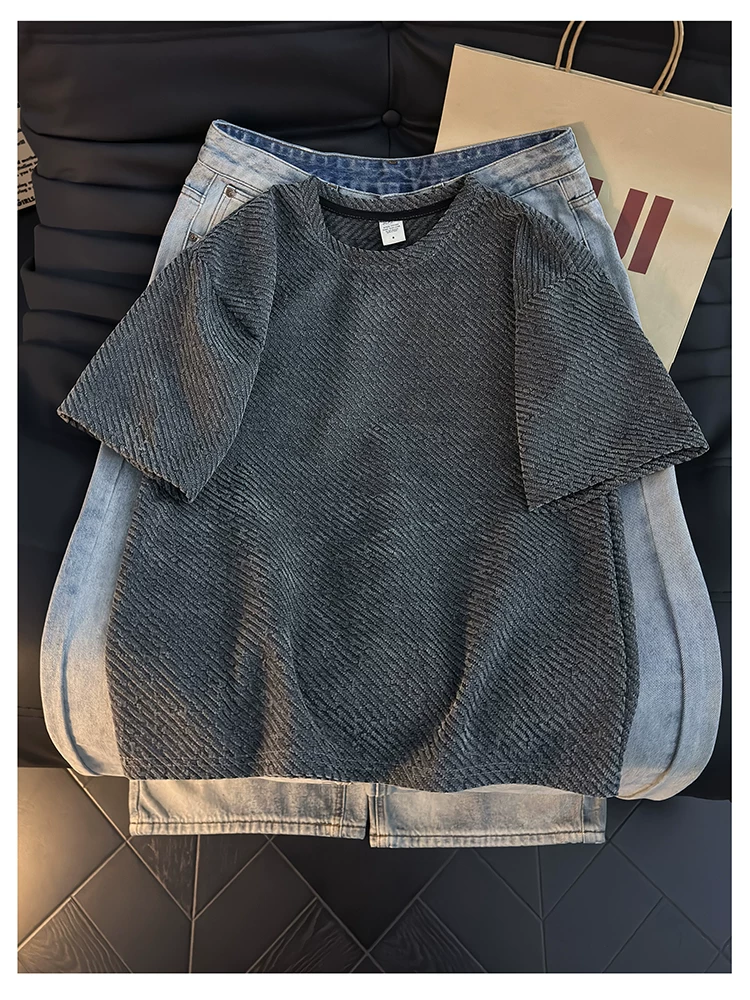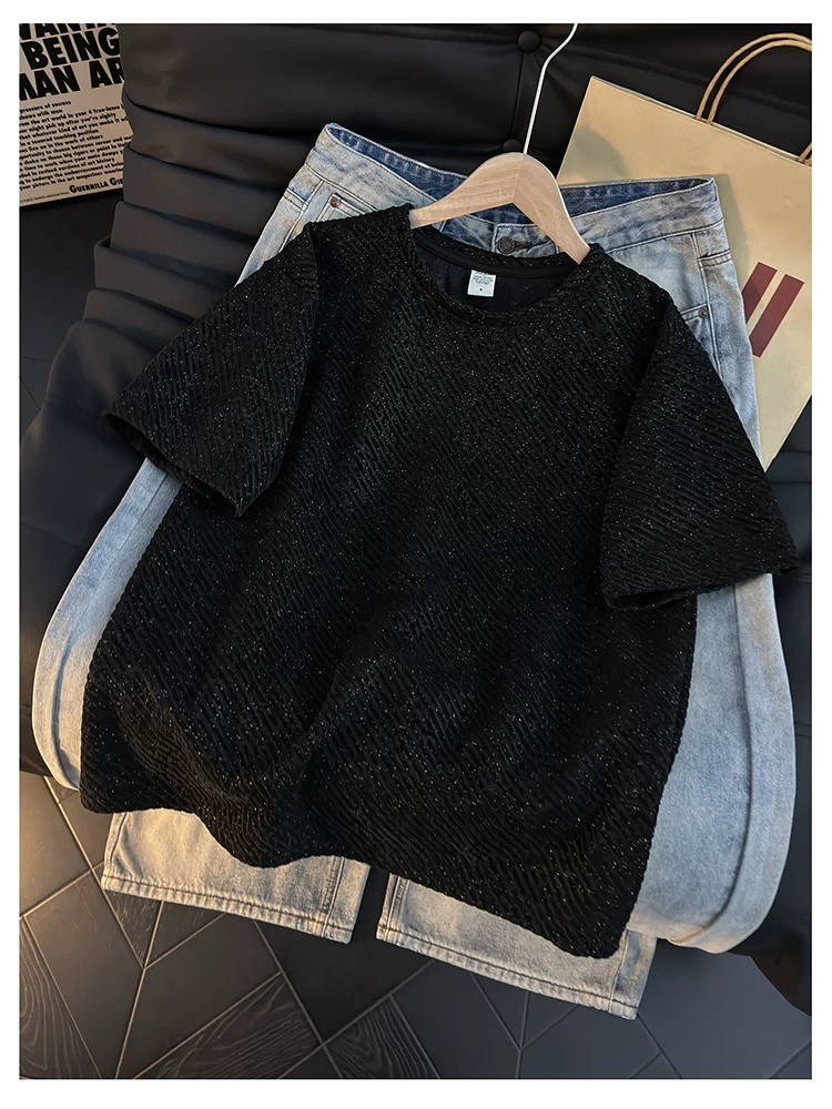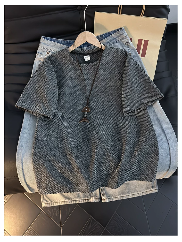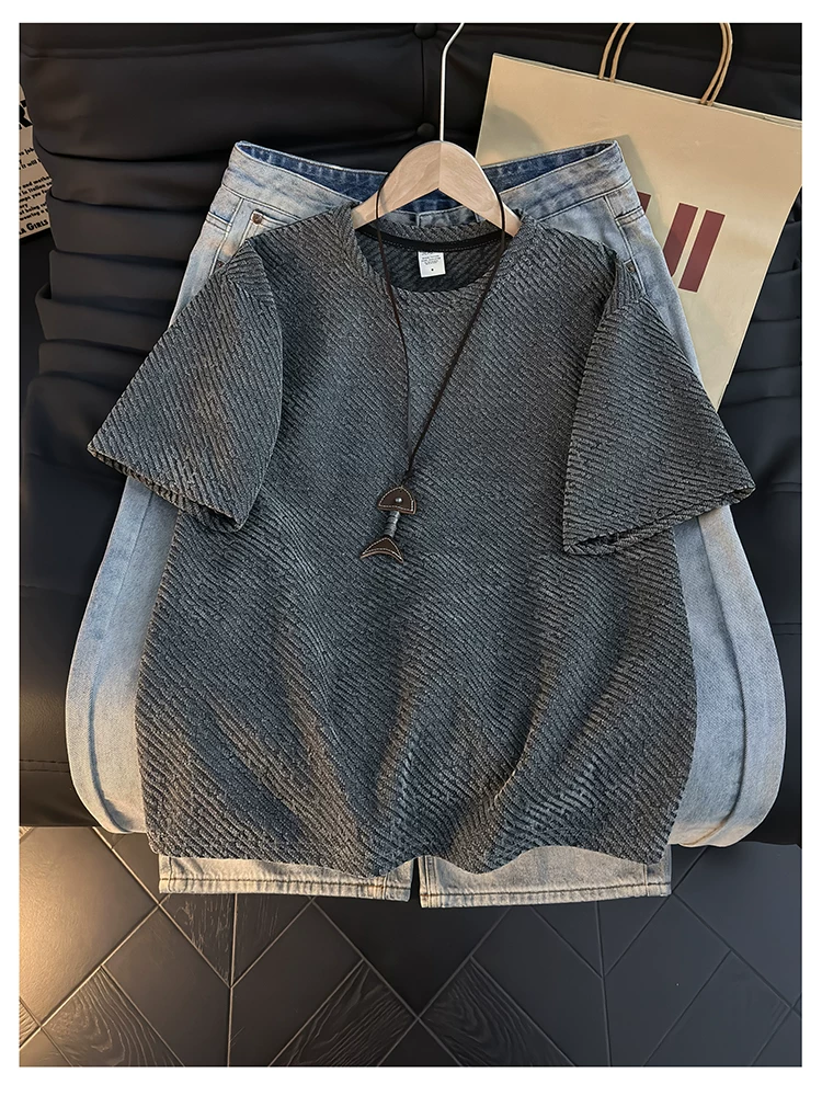 - Áo thun nam tay ngắn kiểu Mỹ, áo thun cổ tròn dáng rộng mùa hè, thương hiệu thời thượng, cảm giác đơn giản và cao cấp.