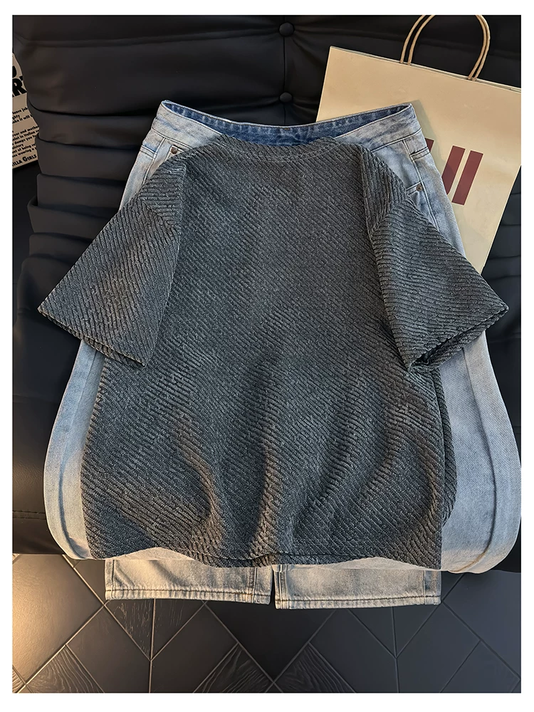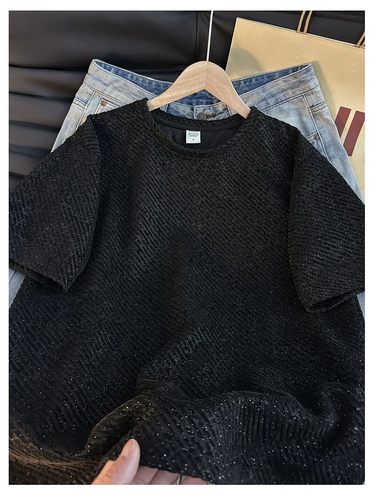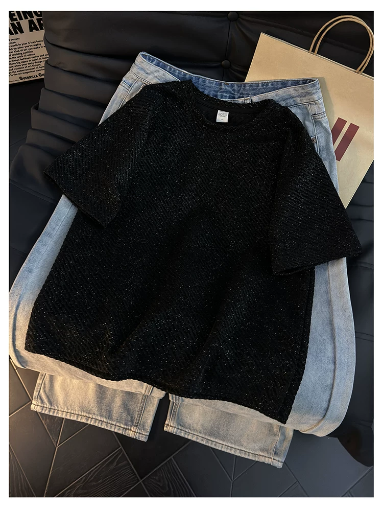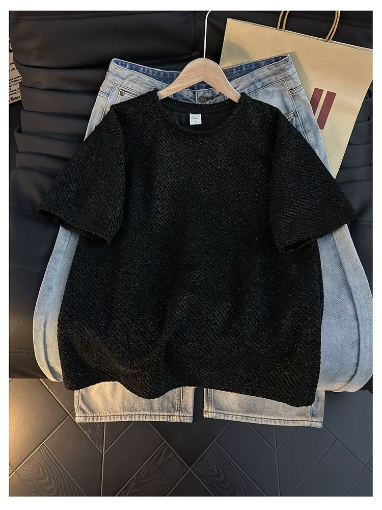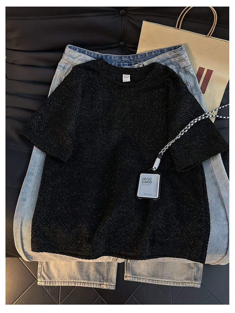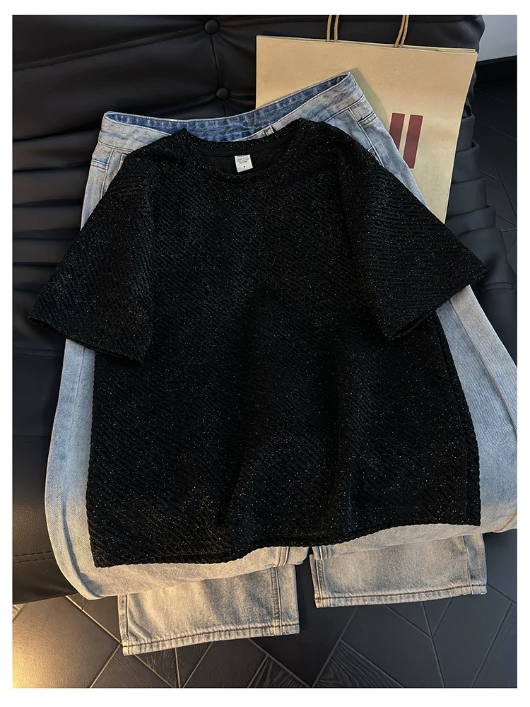 - Áo thun nam tay ngắn kiểu Mỹ, áo thun cổ tròn dáng rộng mùa hè, thương hiệu thời thượng, cảm giác đơn giản và cao cấp.