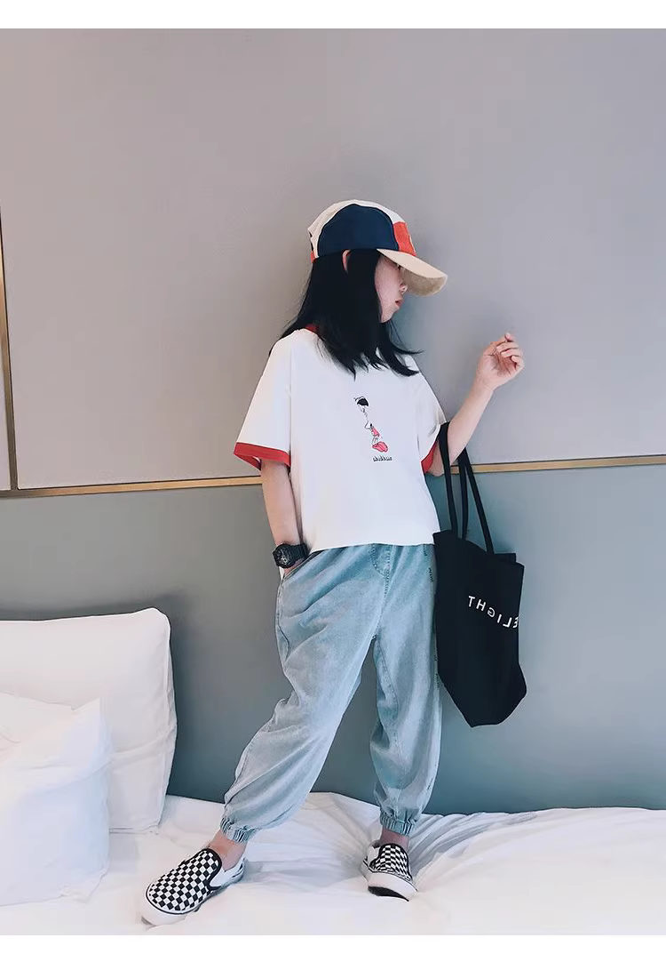 - Áo thun ngắn tay bé gái kiểu mới xuân hè 2025, trang phục mùa hè bằng cotton nguyên chất sành điệu dành cho trẻ lớn, áo kiểu Hàn Quốc cho trẻ em, trang phục mùa hè cho bé gái.