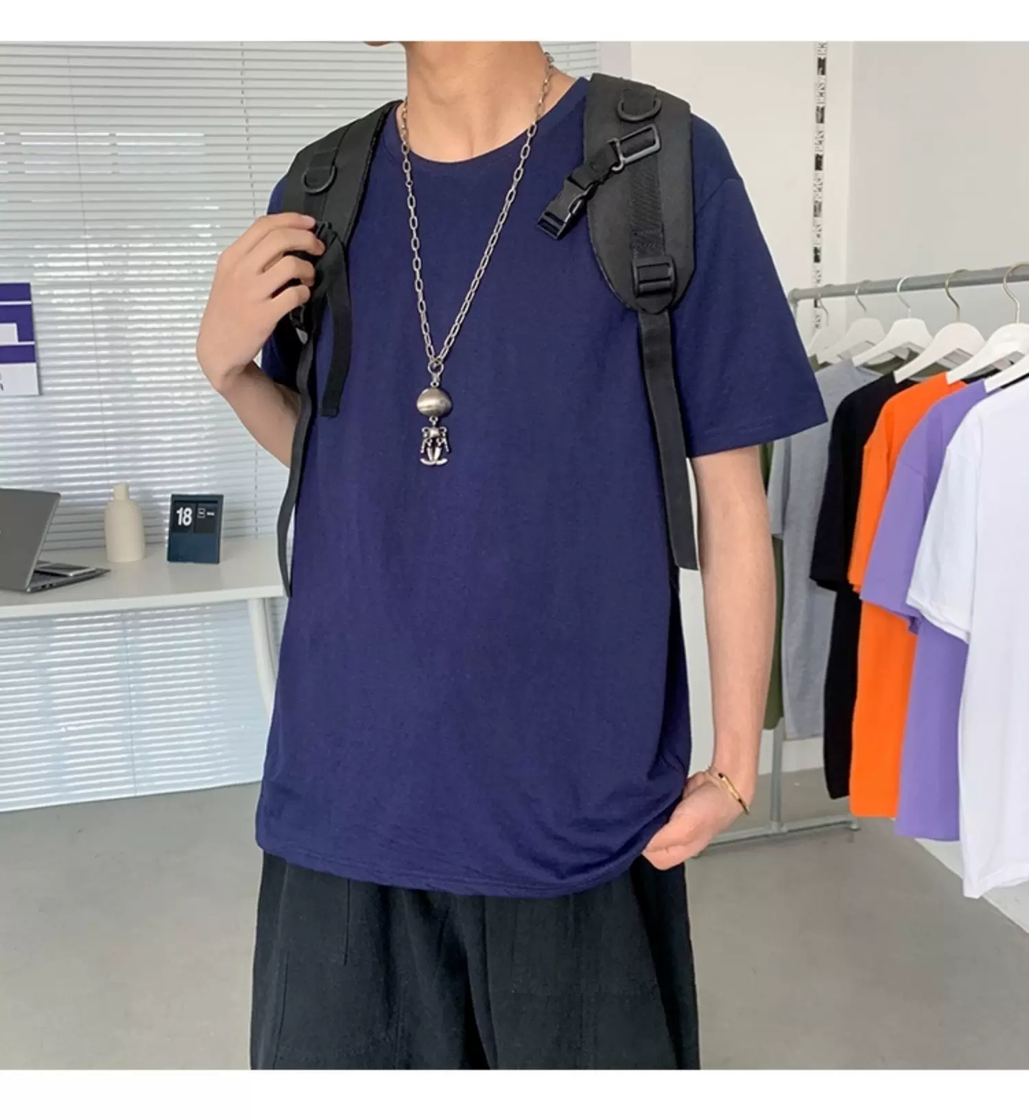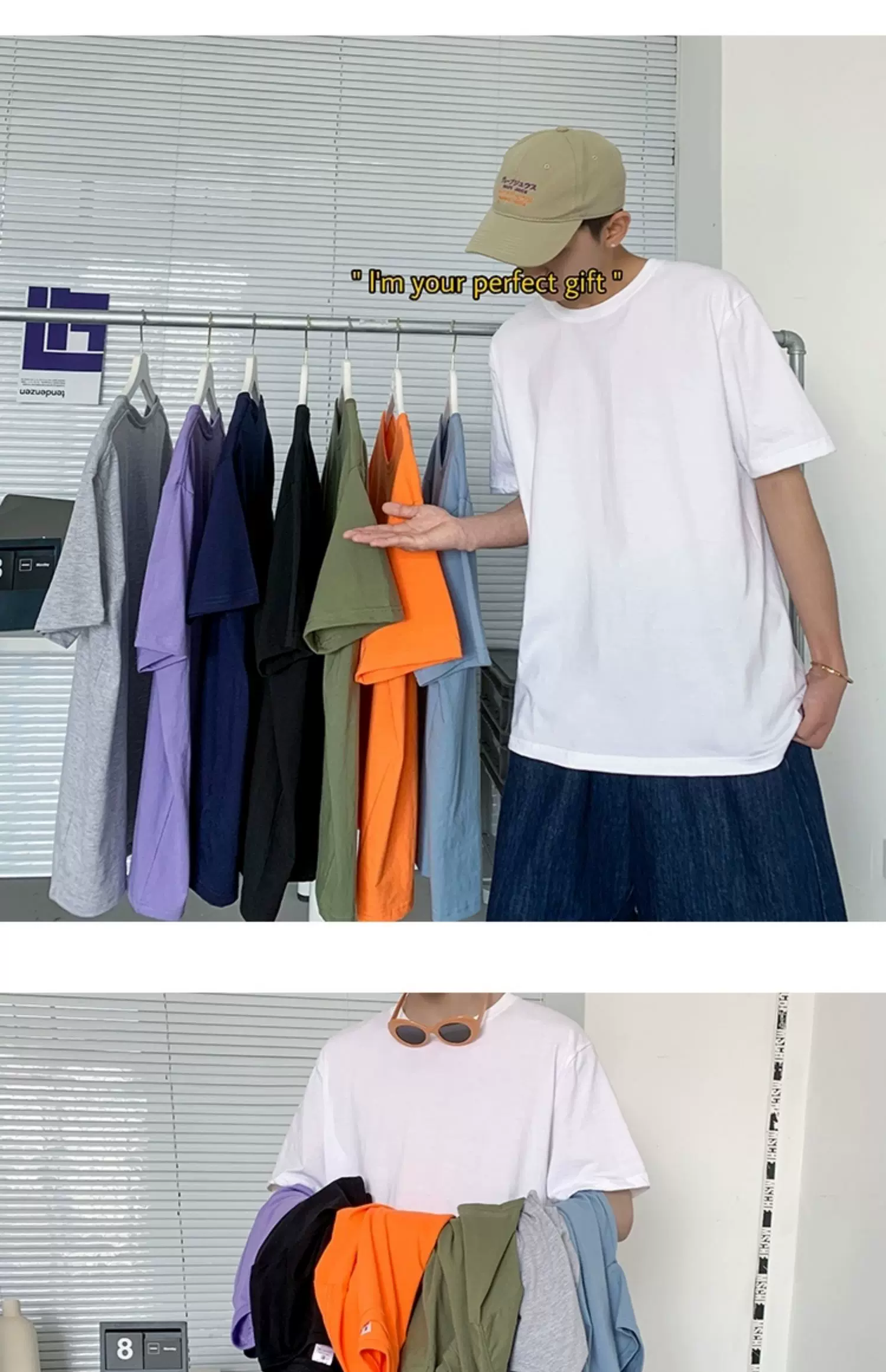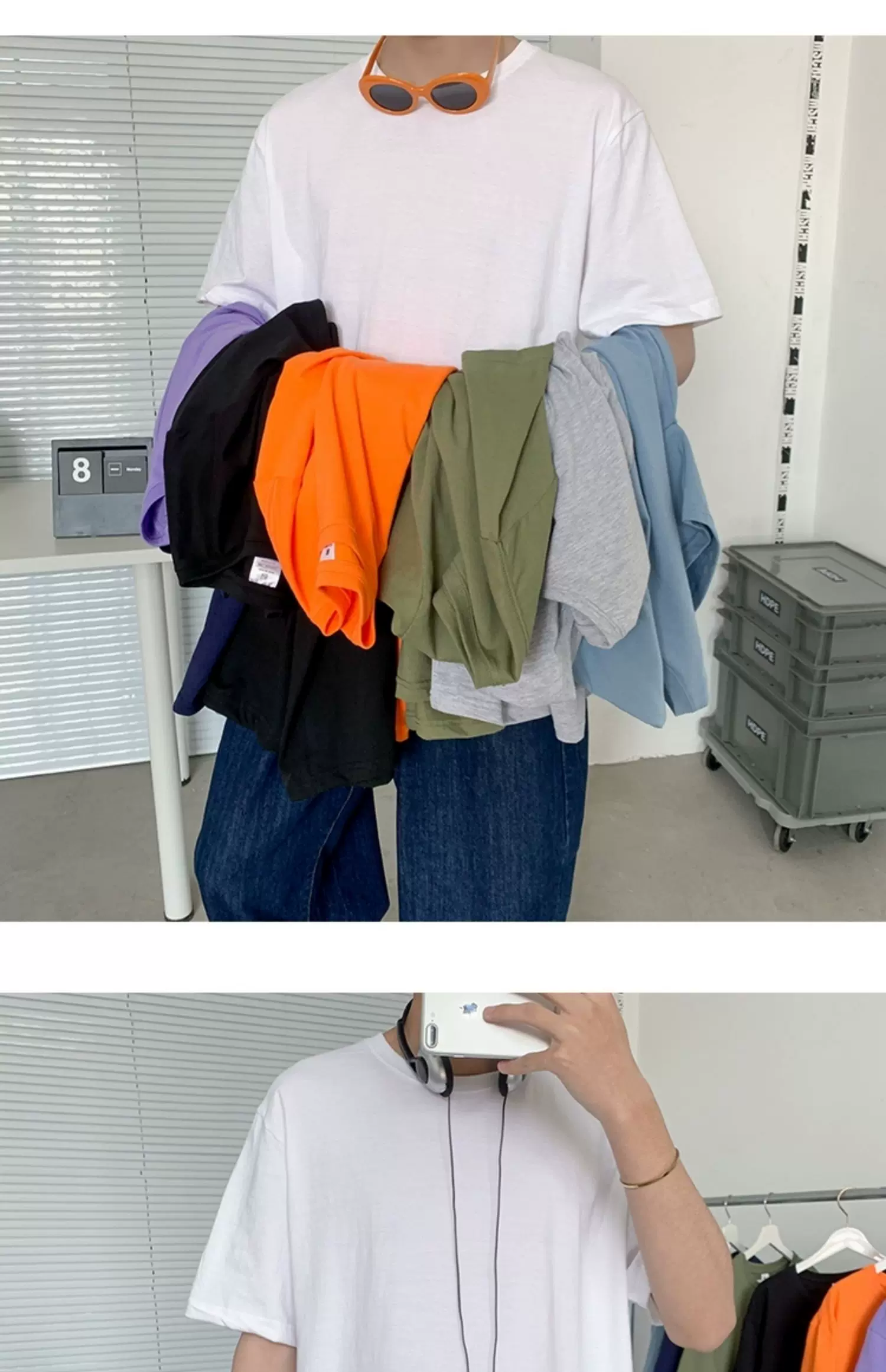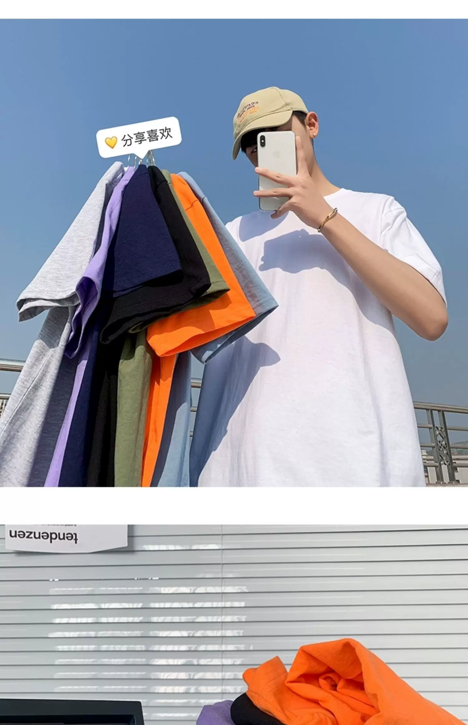 - Áo thun ngắn tay cho nam, thương hiệu thời thượng, dáng rộng, áo thun nửa tay cotton nguyên chất hợp thời trang, phong cách Hồng Kông mùa hè, trang phục màu trơn đơn giản và đa năng.