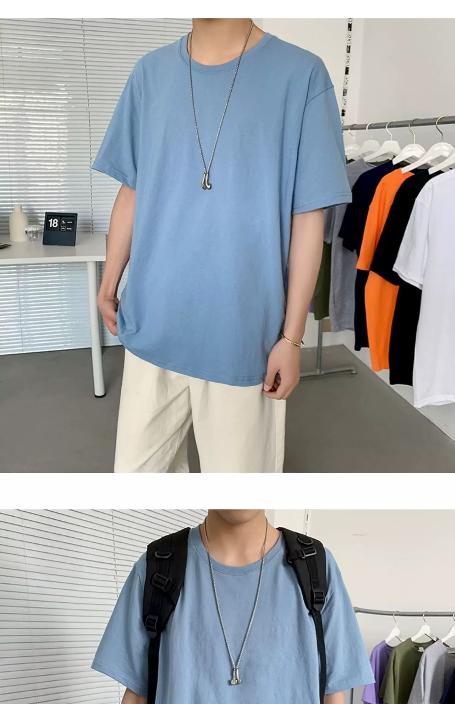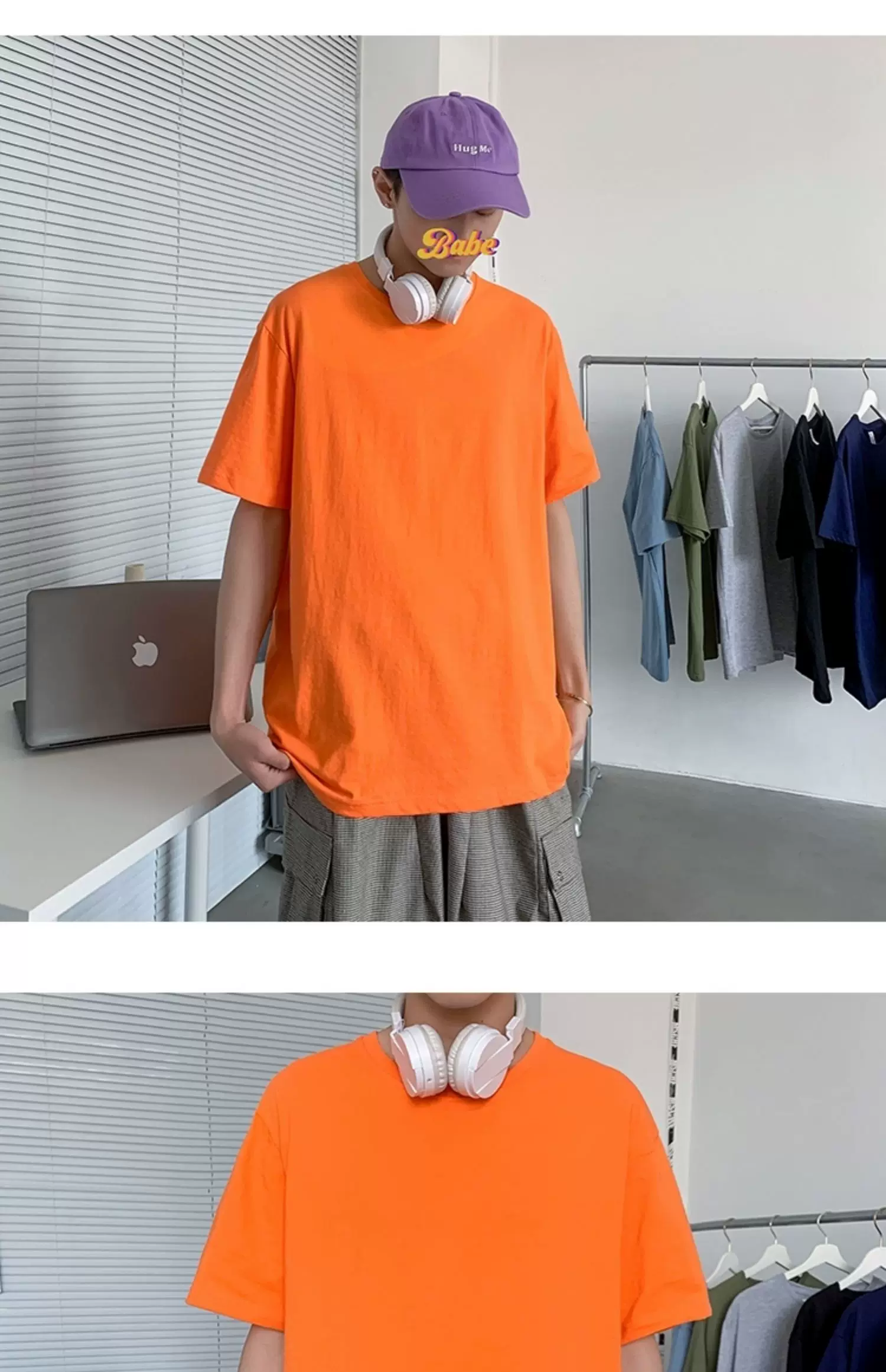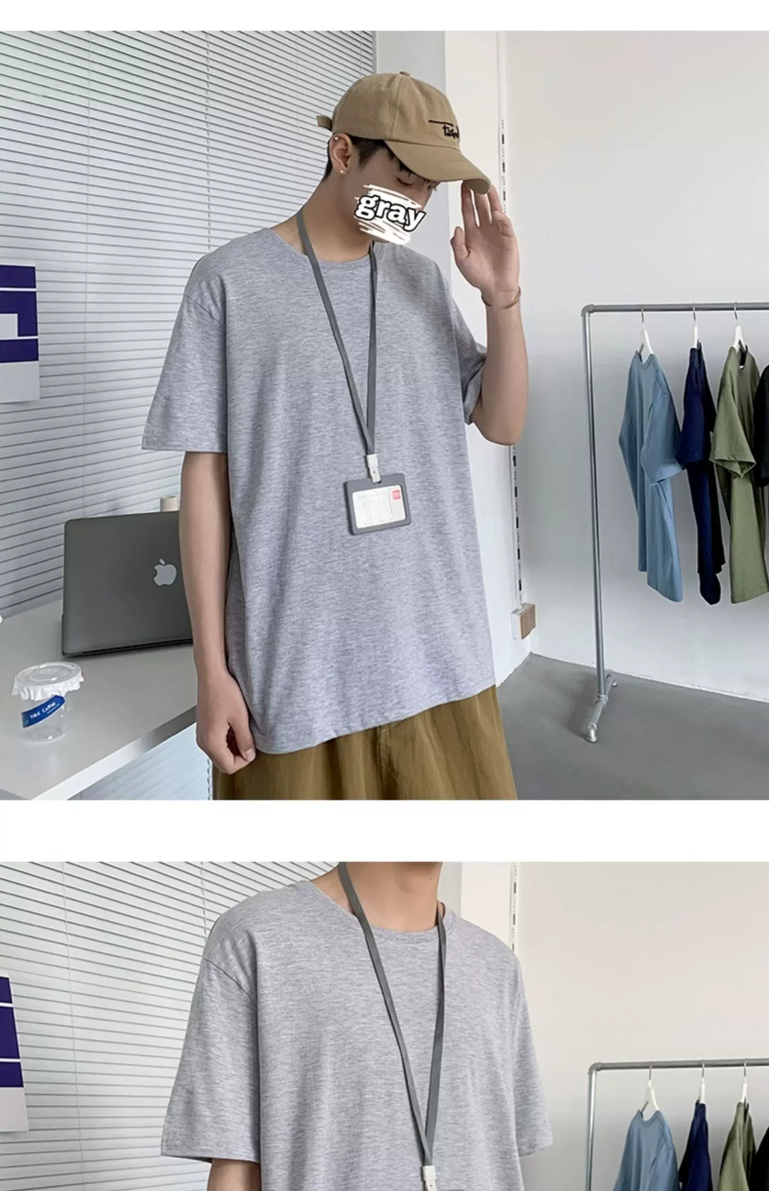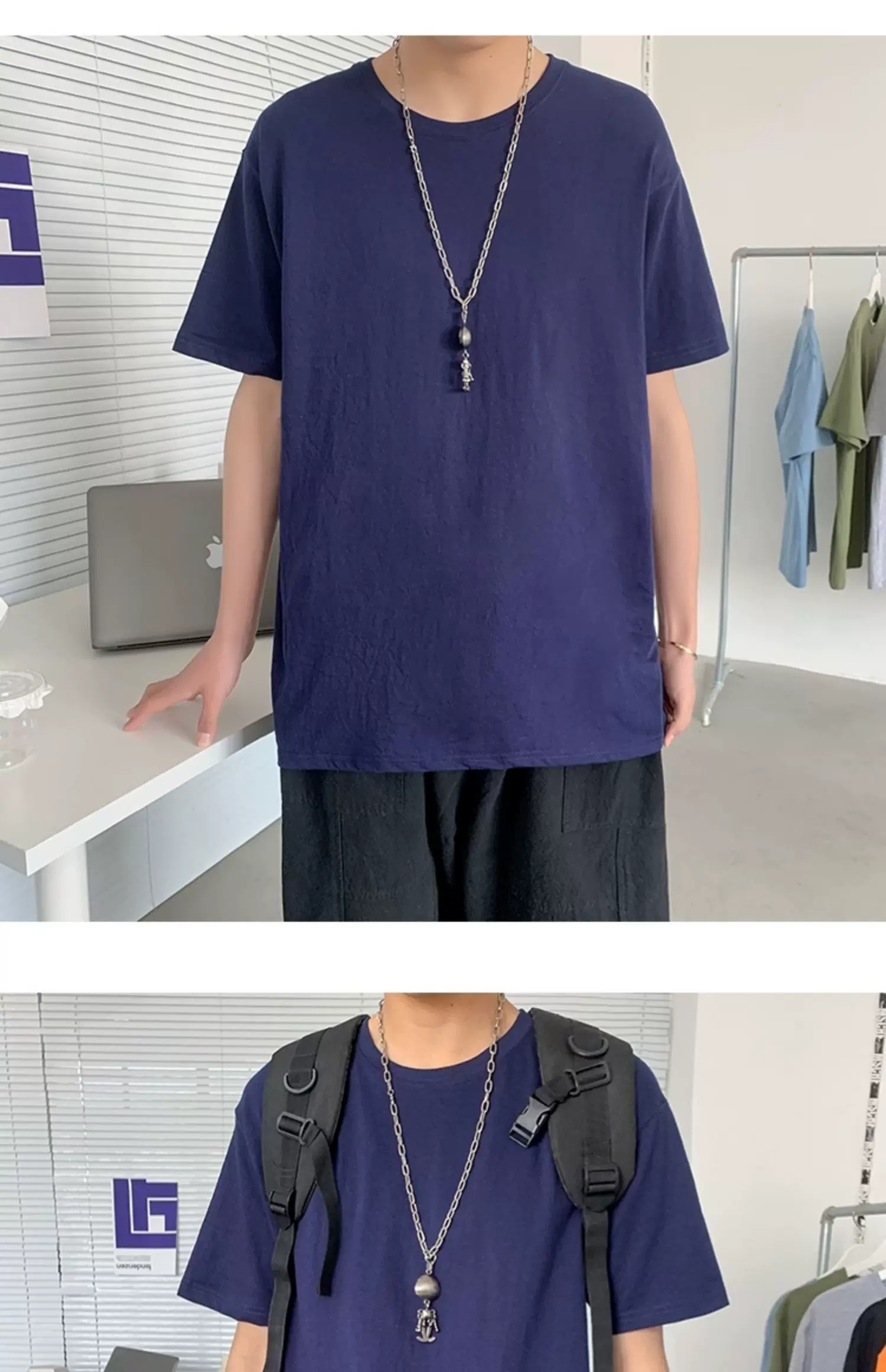 - Áo thun ngắn tay cho nam, thương hiệu thời thượng, dáng rộng, áo thun nửa tay cotton nguyên chất hợp thời trang, phong cách Hồng Kông mùa hè, trang phục màu trơn đơn giản và đa năng.