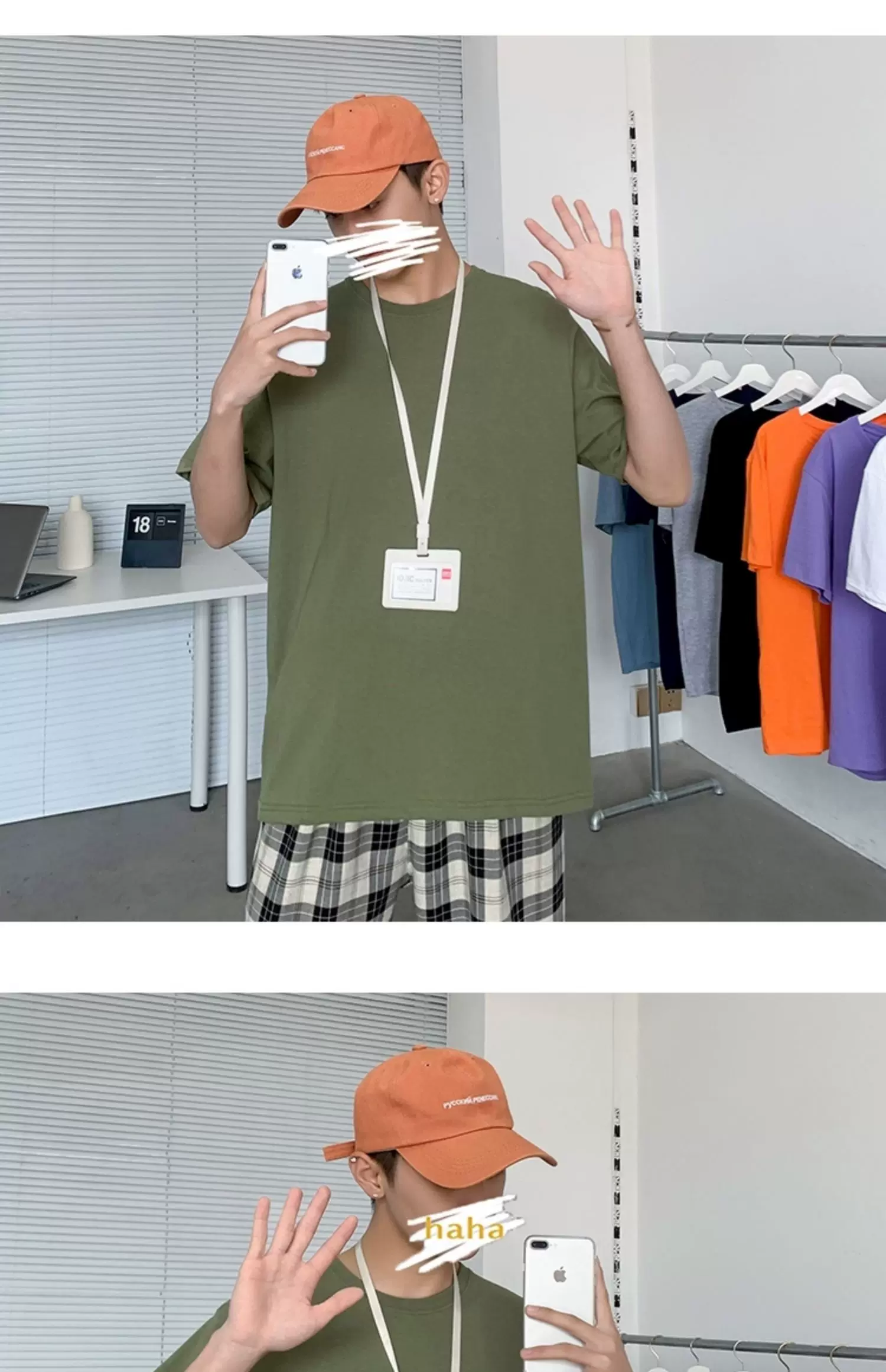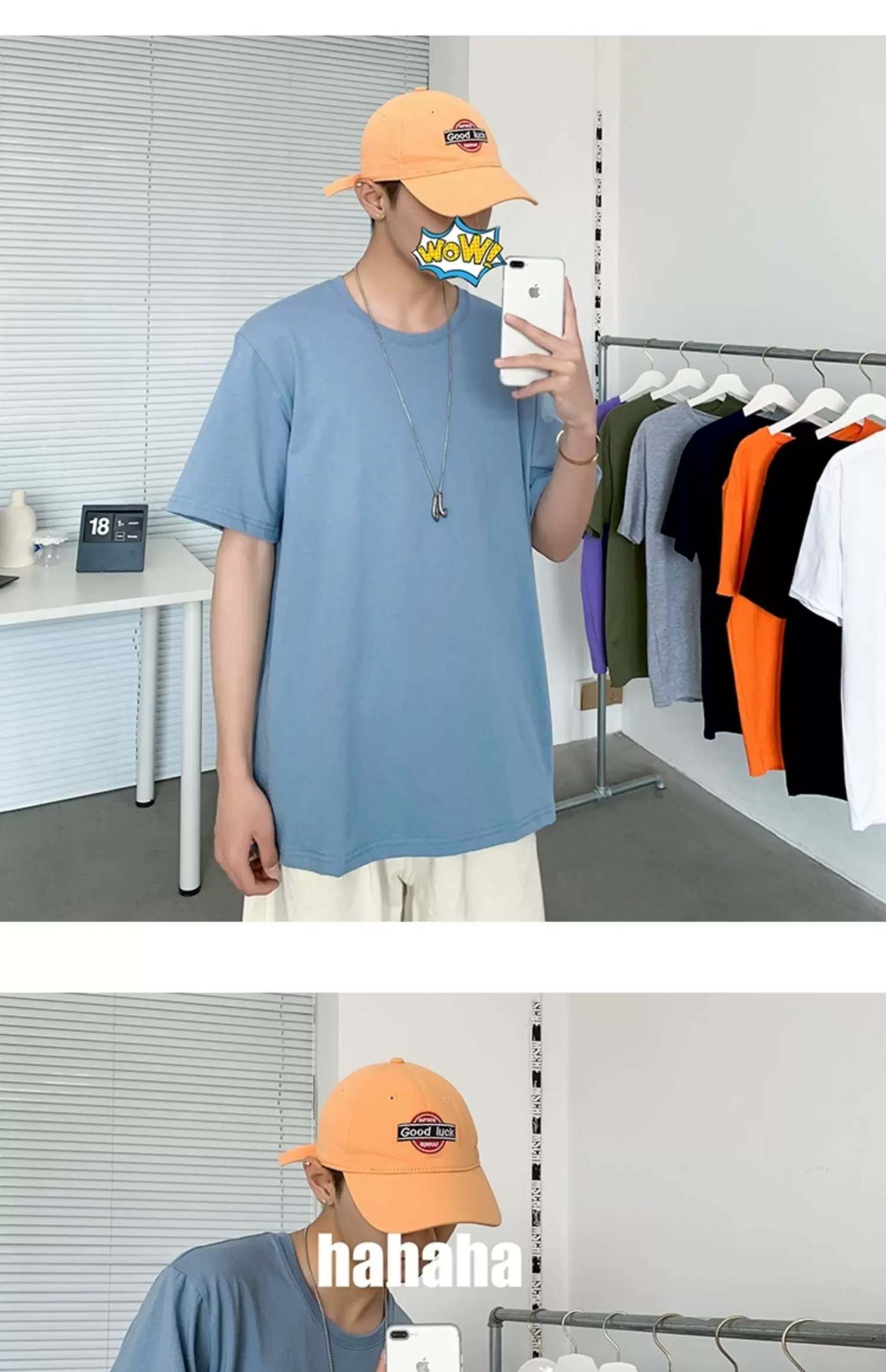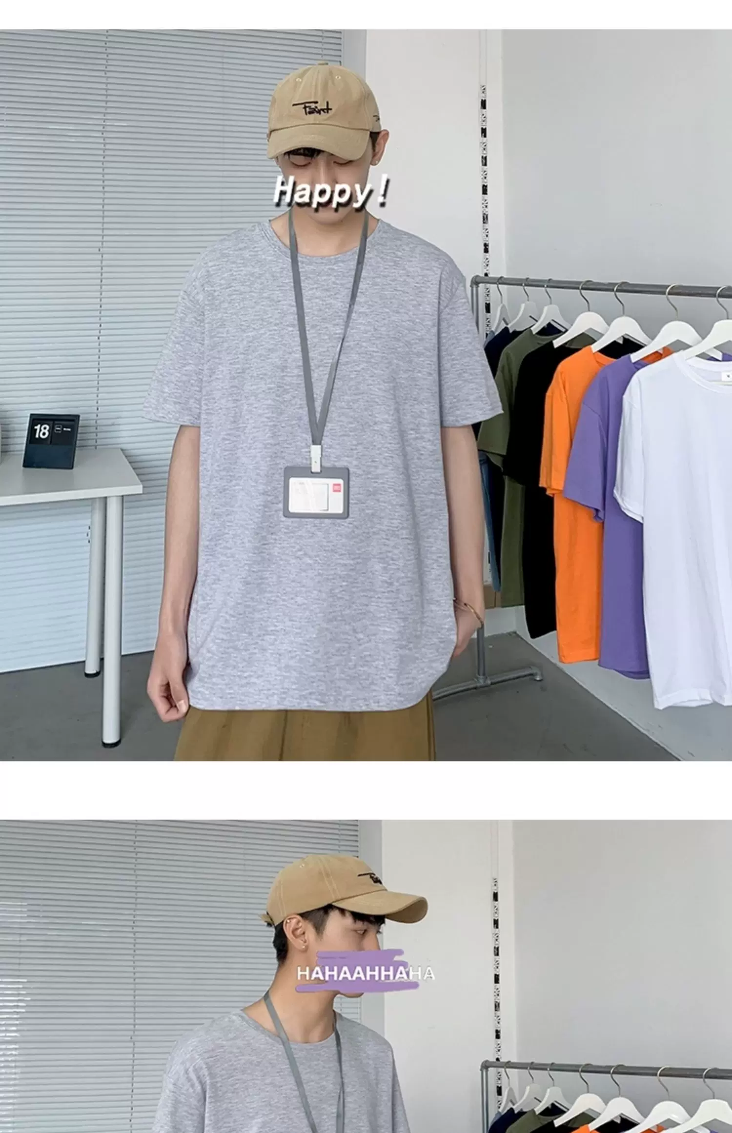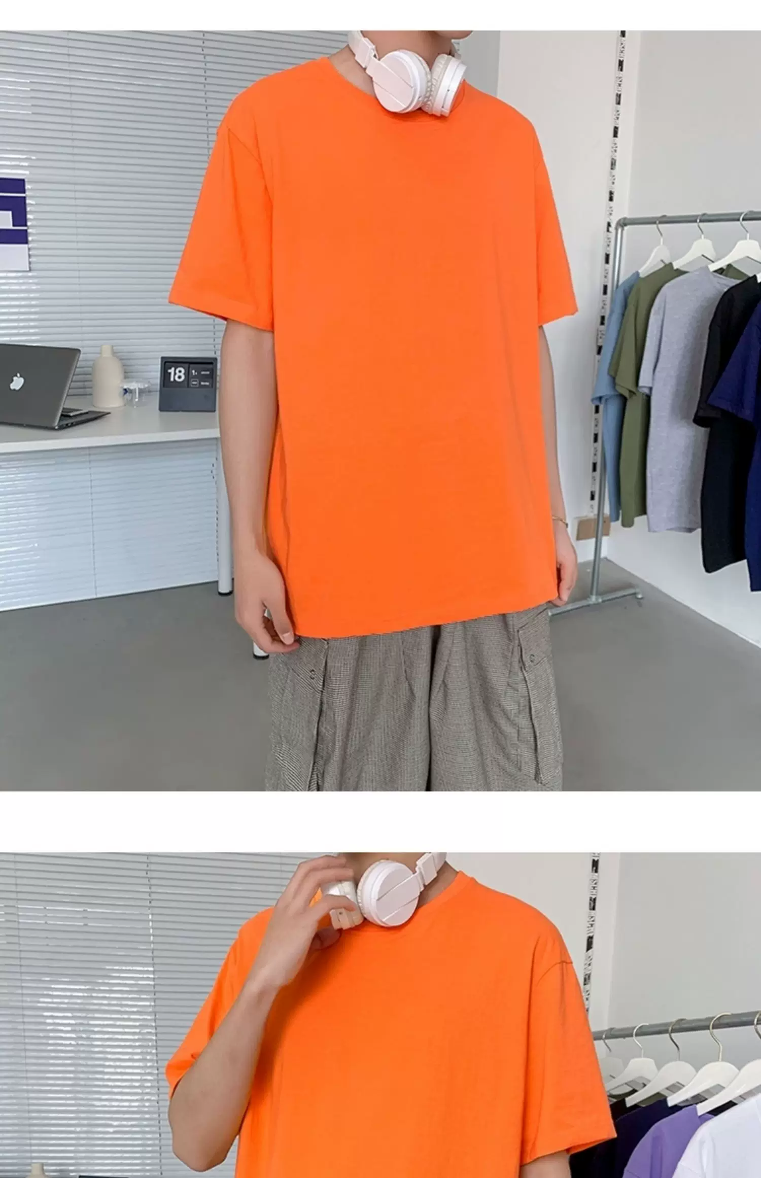 - Áo thun ngắn tay cho nam, thương hiệu thời thượng, dáng rộng, áo thun nửa tay cotton nguyên chất hợp thời trang, phong cách Hồng Kông mùa hè, trang phục màu trơn đơn giản và đa năng.