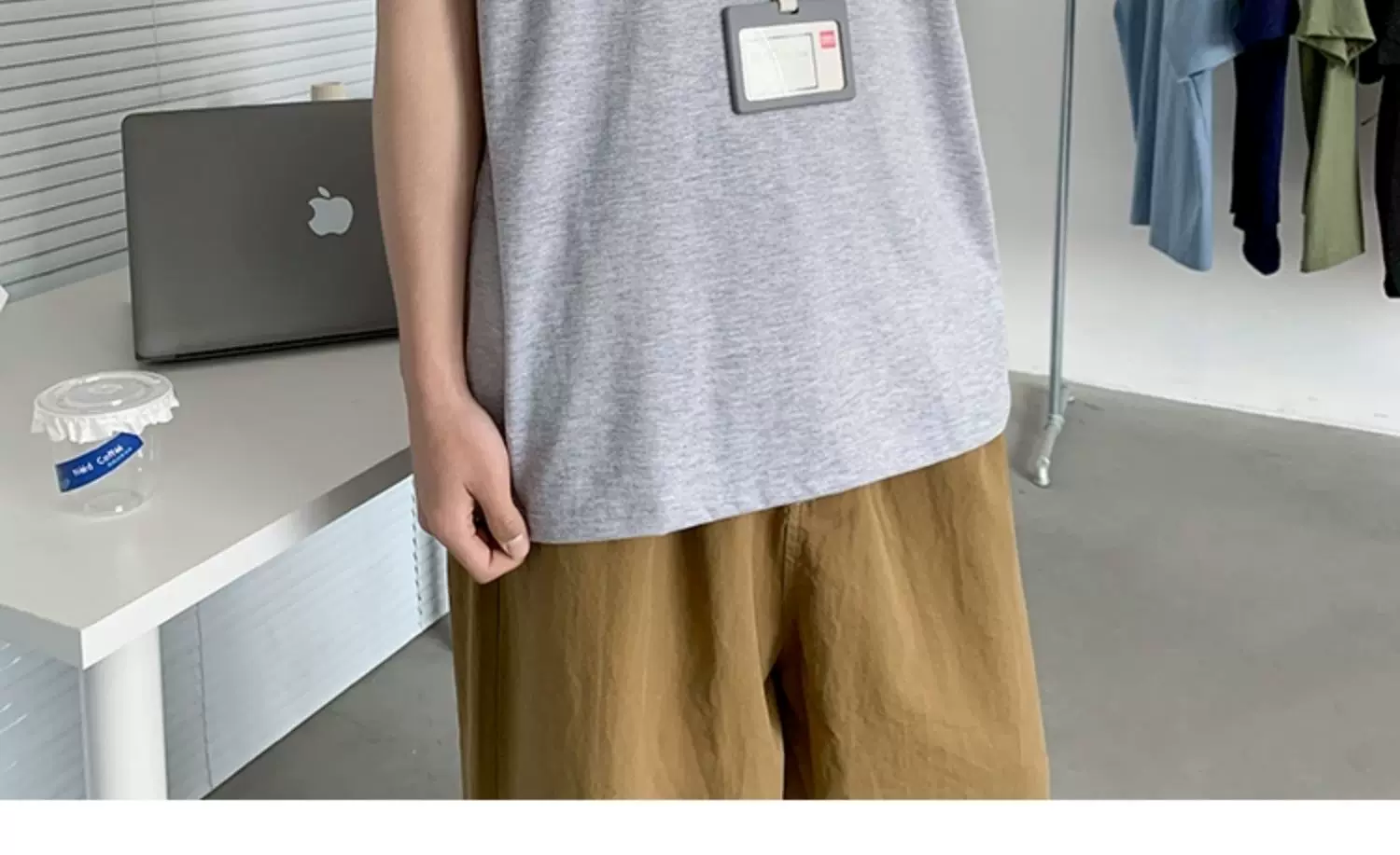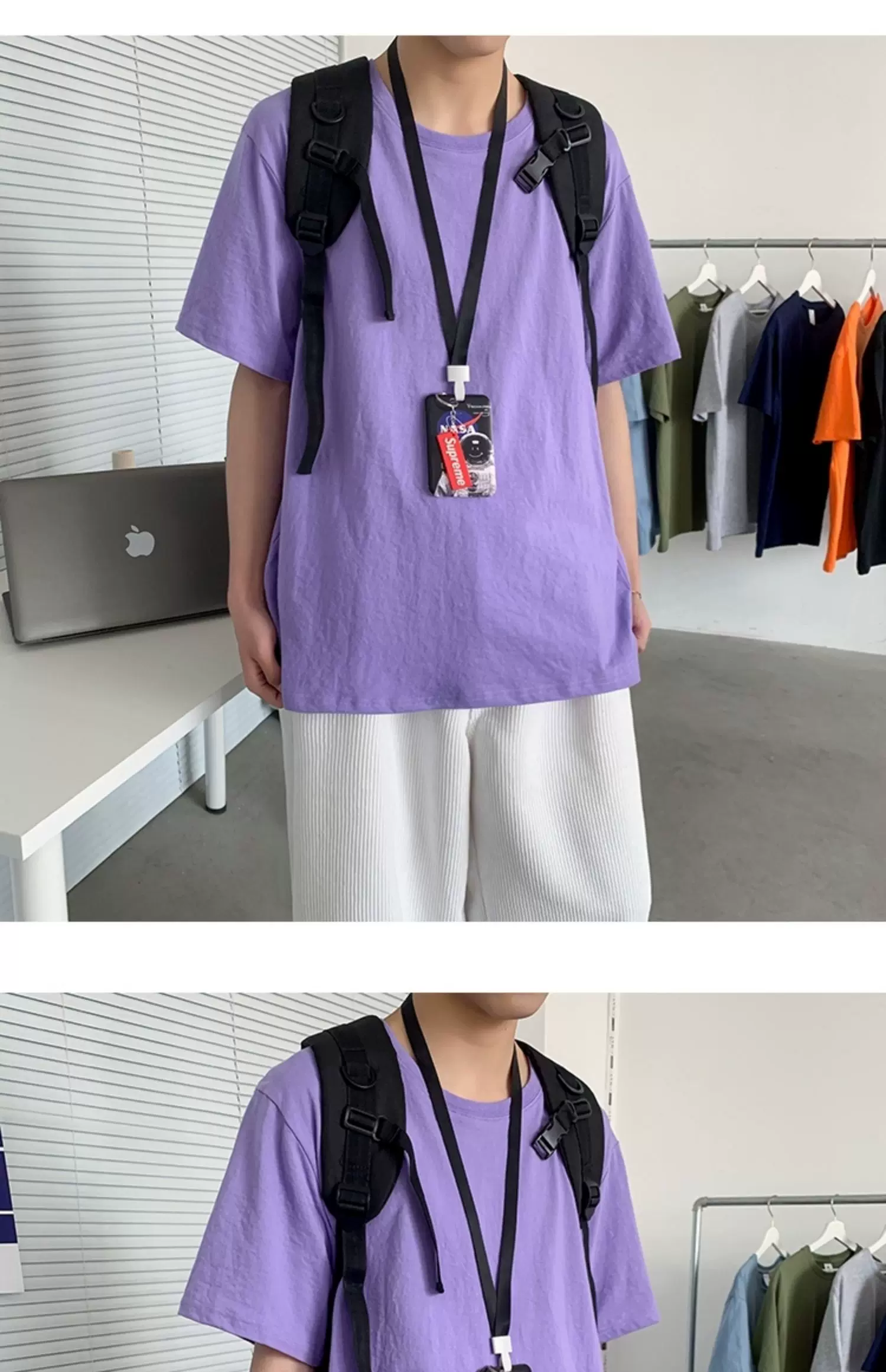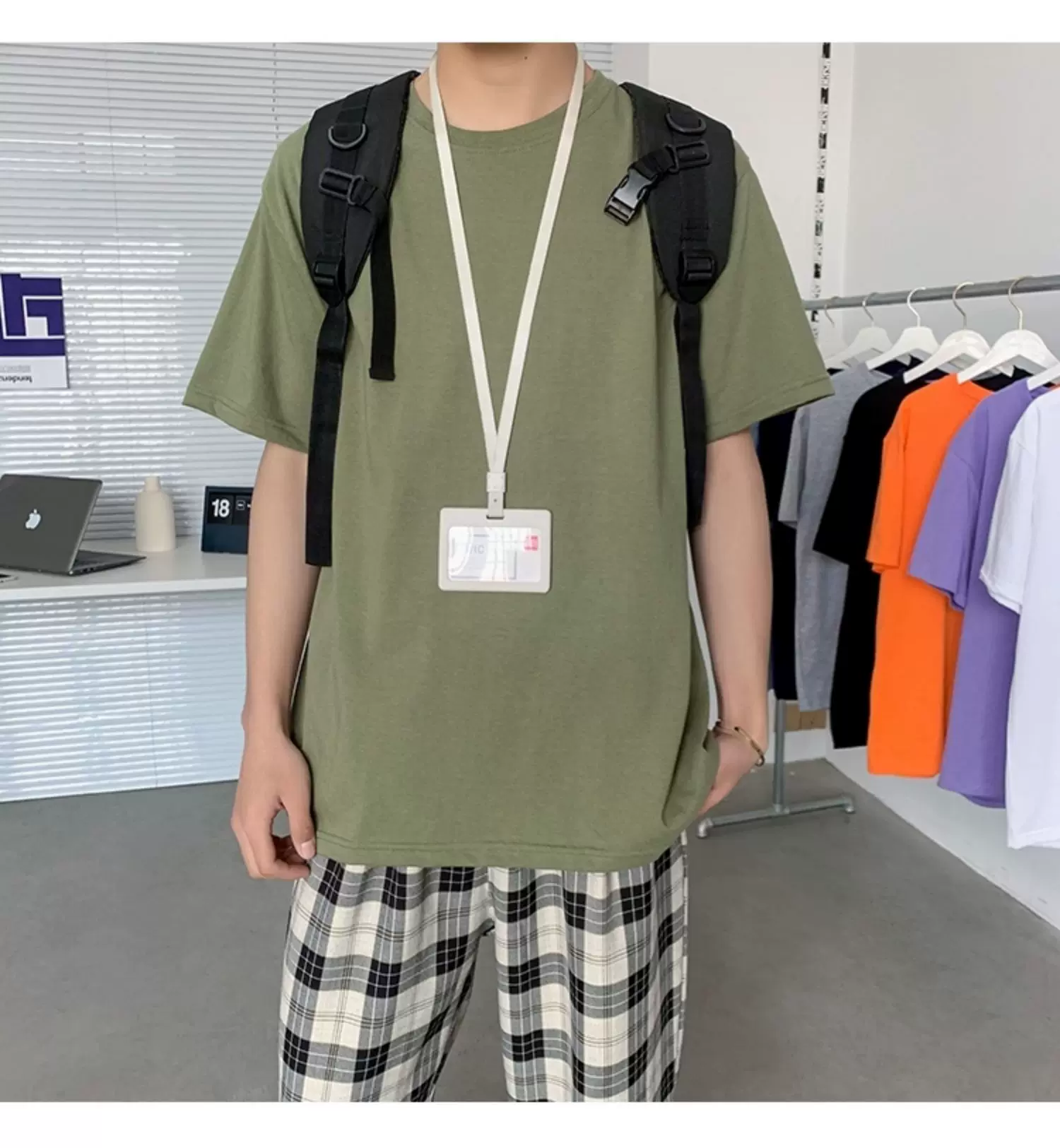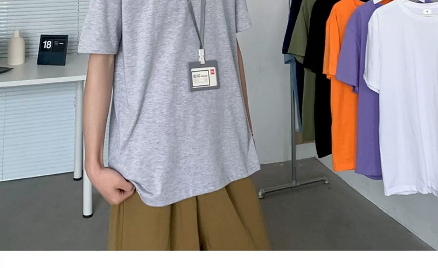 - Áo thun ngắn tay cho nam, thương hiệu thời thượng, dáng rộng, áo thun nửa tay cotton nguyên chất hợp thời trang, phong cách Hồng Kông mùa hè, trang phục màu trơn đơn giản và đa năng.