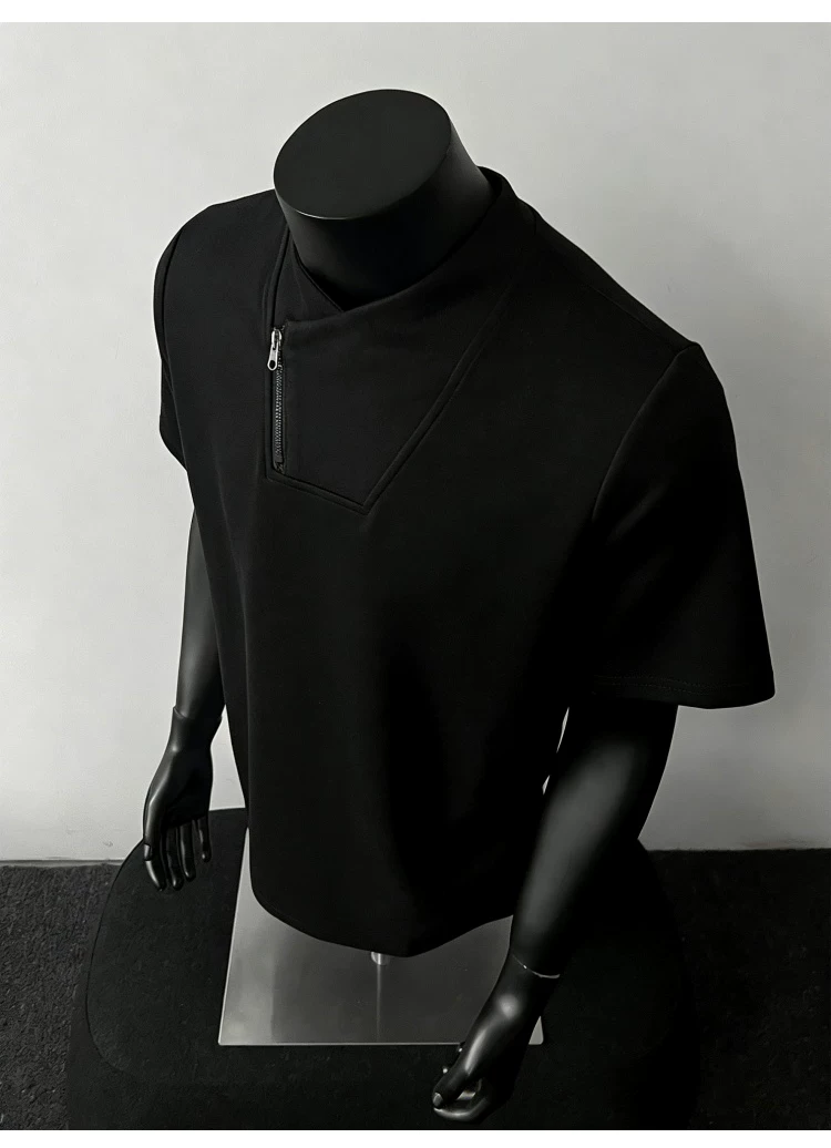 - Áo thun ngắn tay có khóa kéo kiểu Mỹ dành cho nam và nữ, thương hiệu thời thượng, dáng rộng, áo thun nửa tay phong cách cặp đôi giản dị mùa hè.