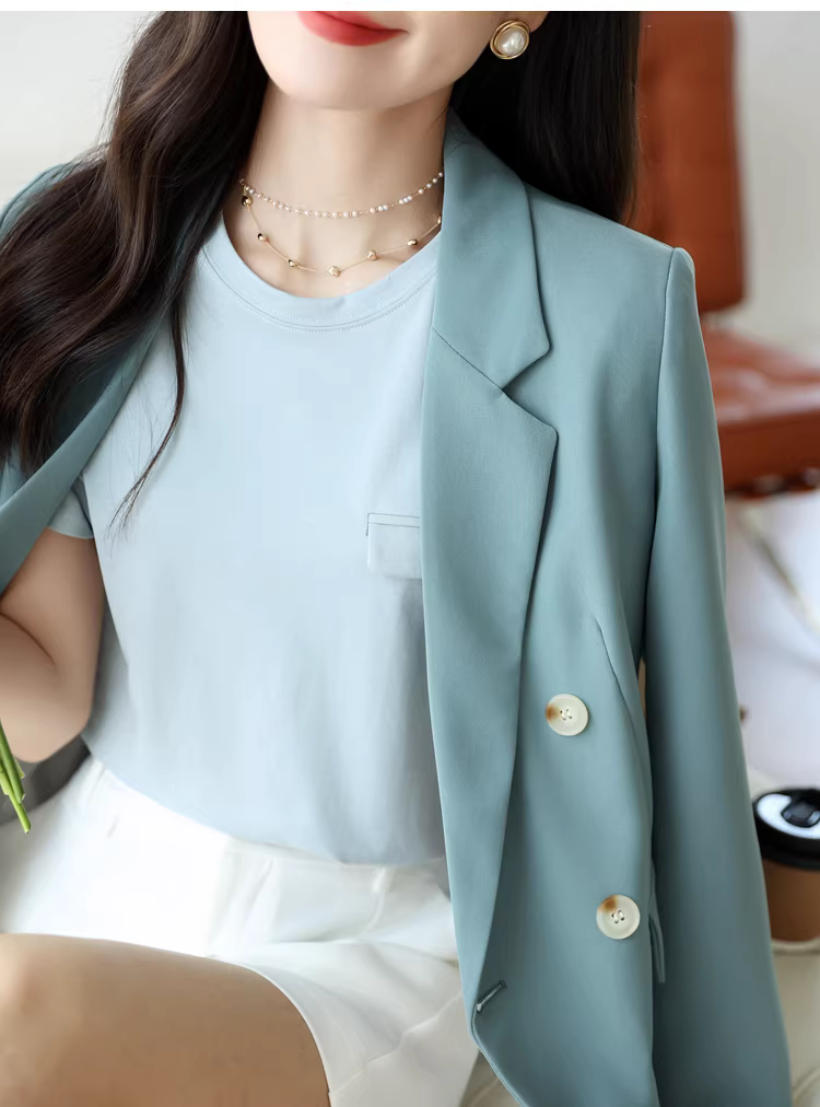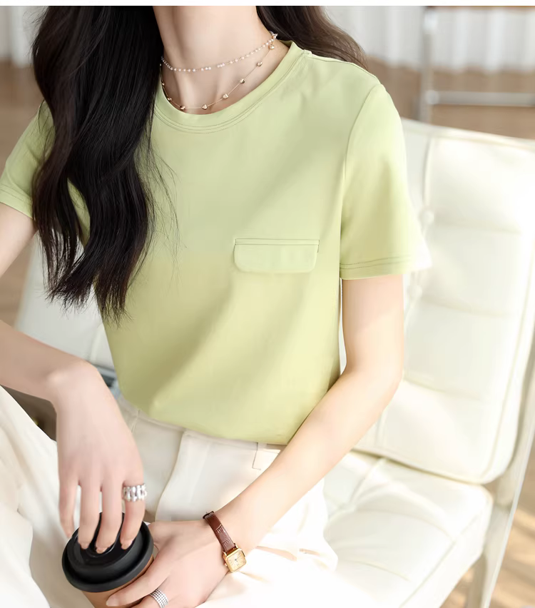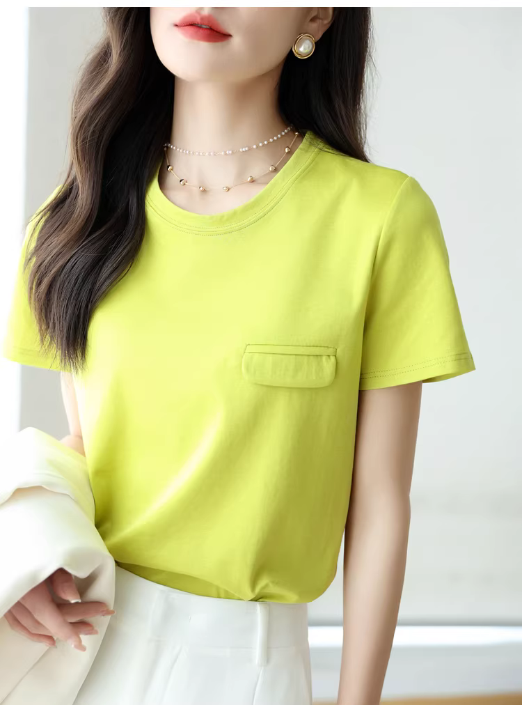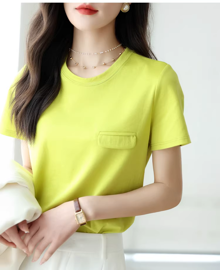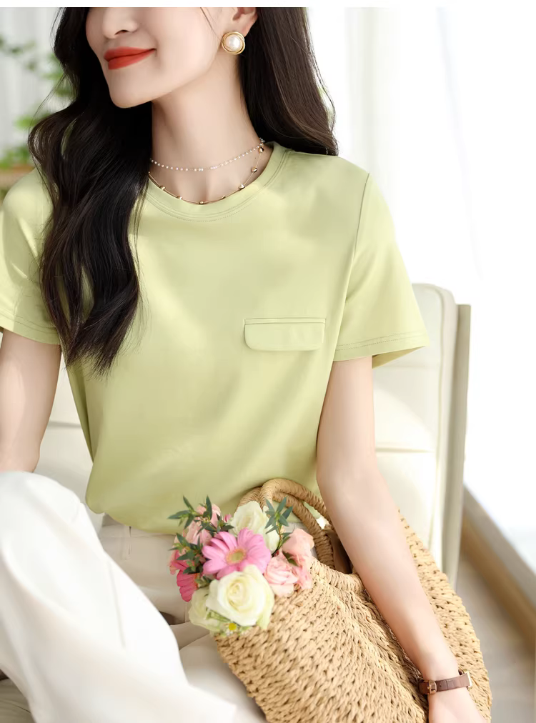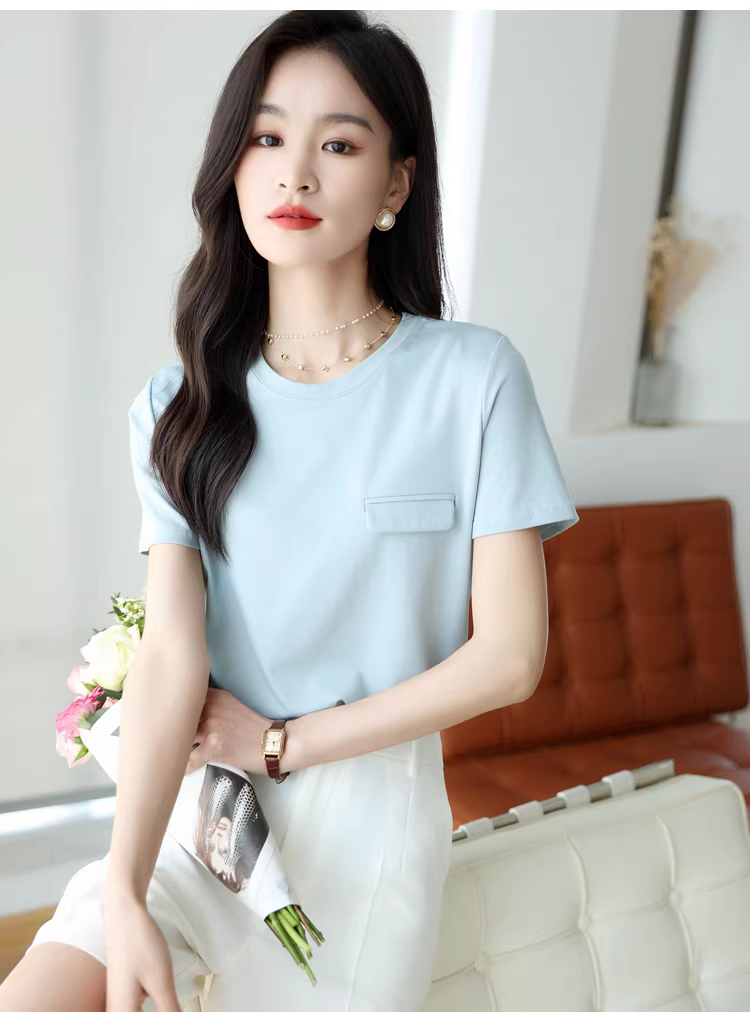 - Áo thun ngắn tay cổ tròn bằng lụa tencel dành cho nữ, màu trơn đa năng phong cách mới mùa hè