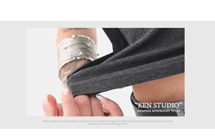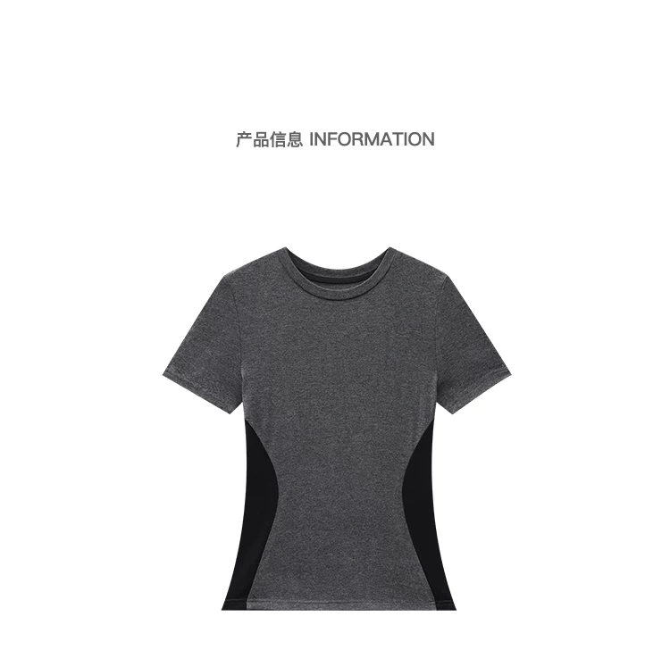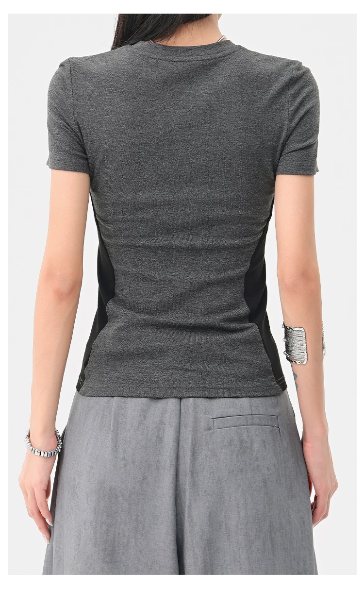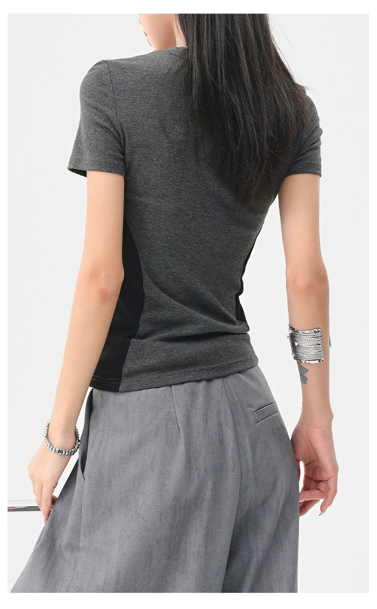 - Áo thun ngắn tay cổ tròn màu tương phản cổ điển của KEN STUDIO dành cho nữ mùa hè mới áo thon gọn eo thon gọn