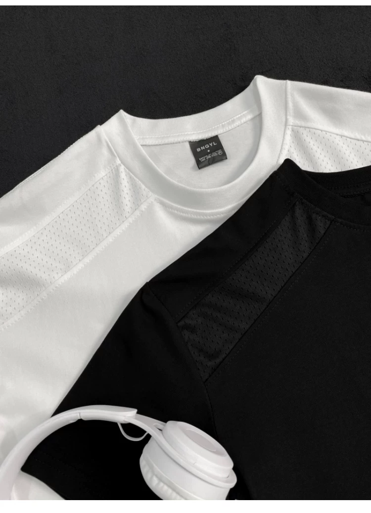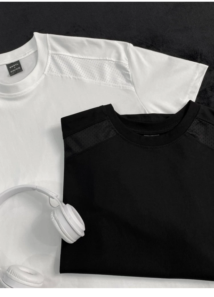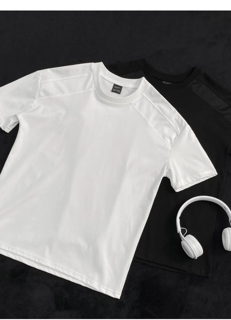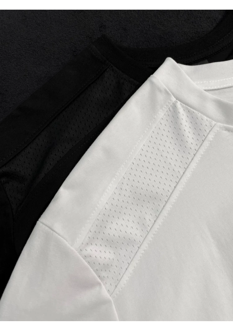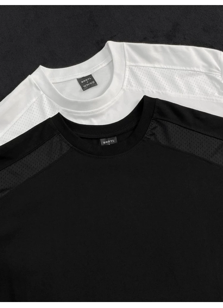 Áo thun ngắn tay kiểu Mỹ dành cho nam và nữ, áo lưới phối vải thoáng khí mùa hè, áo thun cơ bản dáng rộng thời trang dành cho cặp đôi.