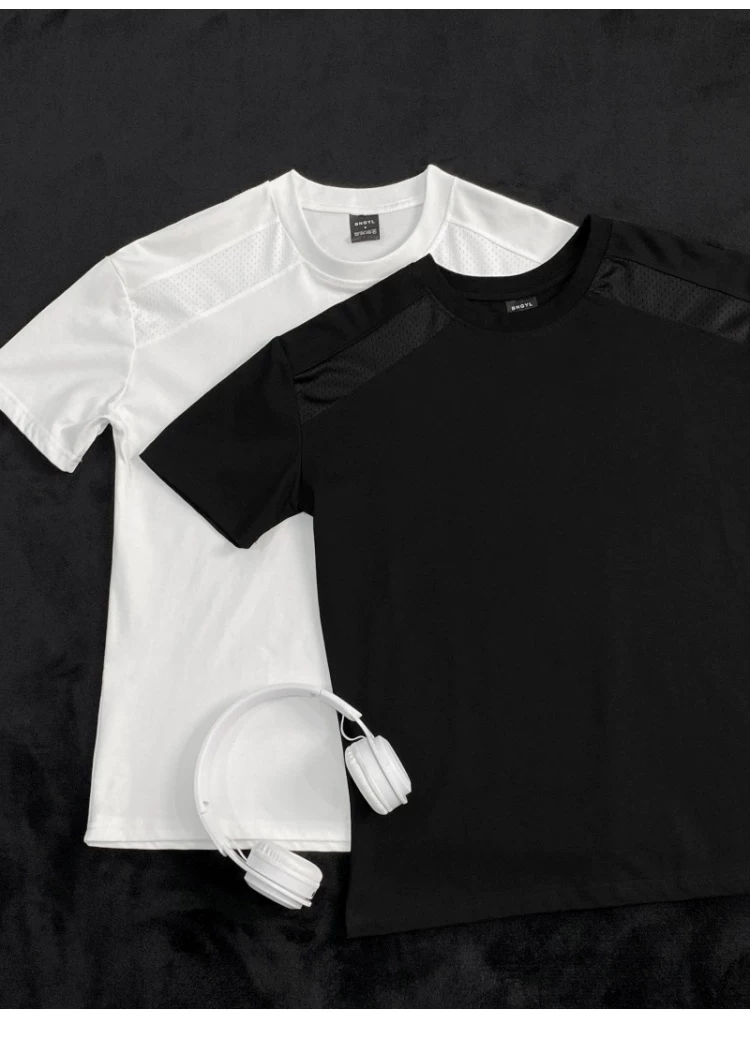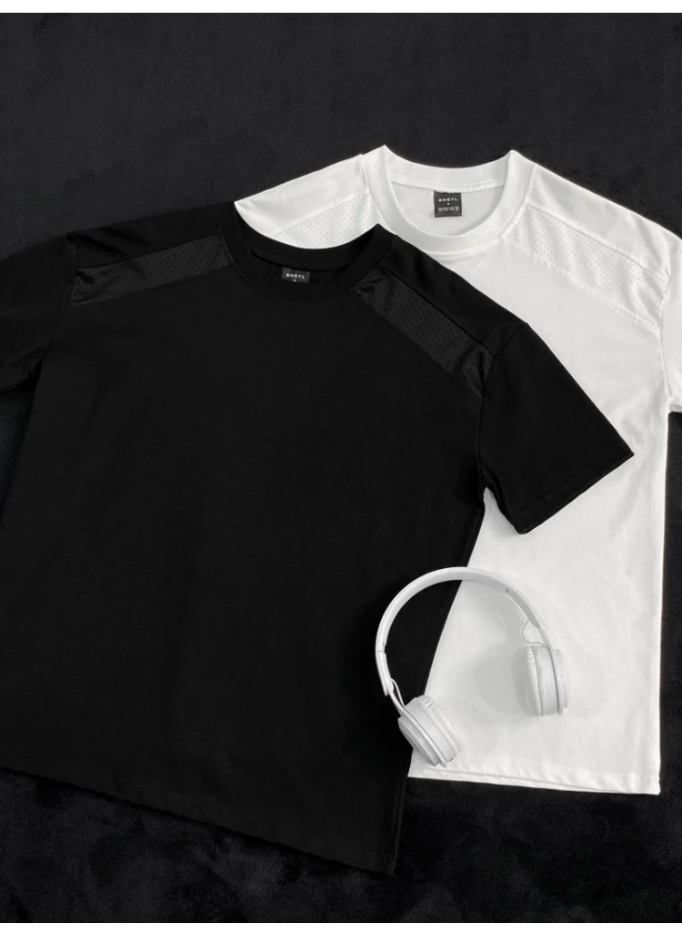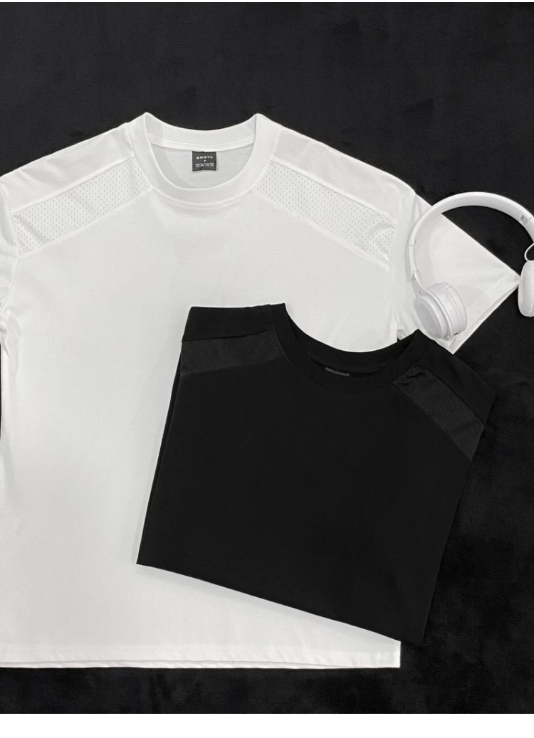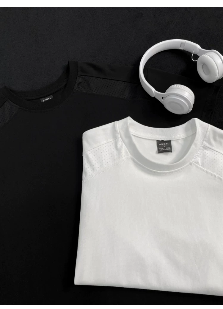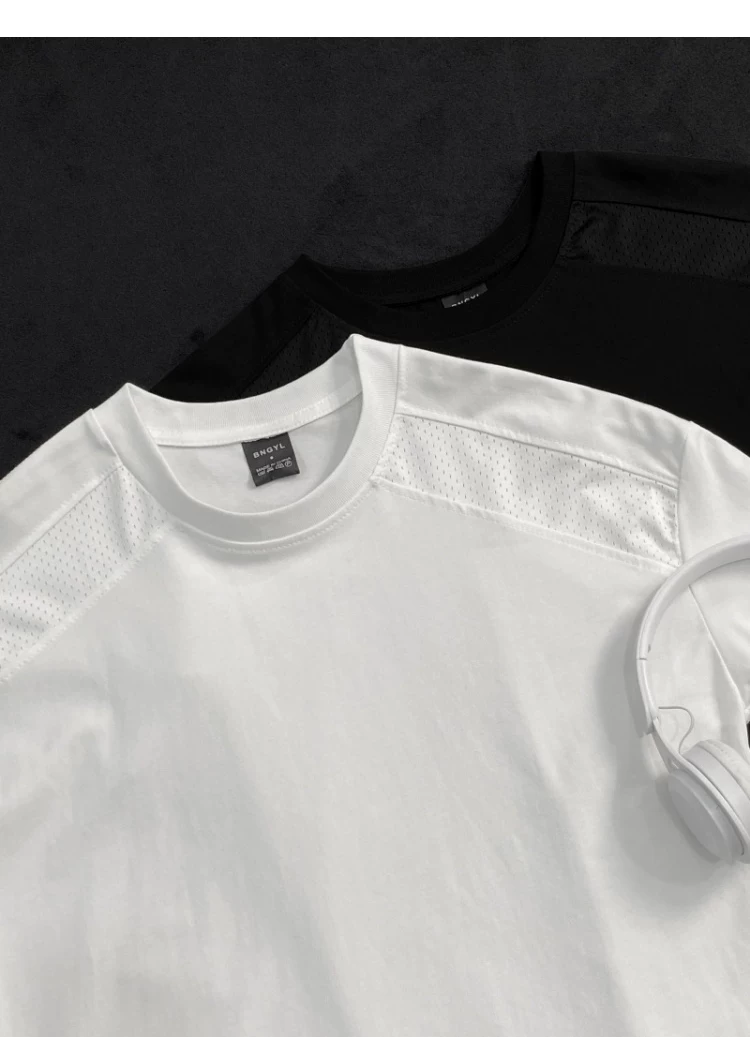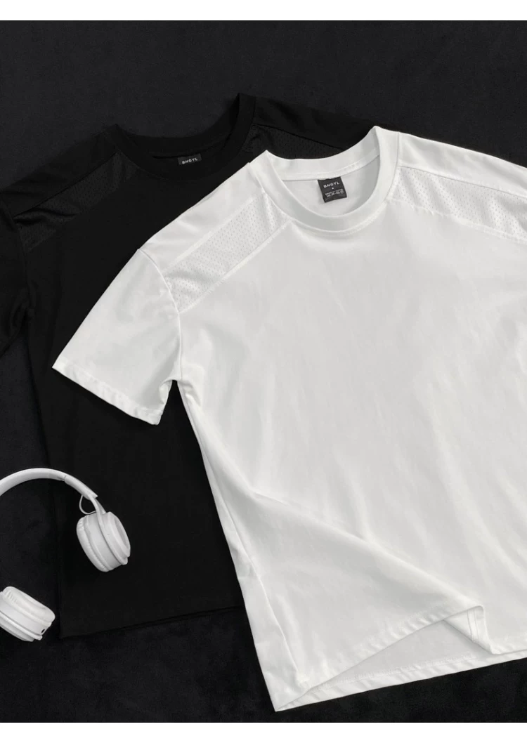 Áo thun ngắn tay kiểu Mỹ dành cho nam và nữ, áo lưới phối vải thoáng khí mùa hè, áo thun cơ bản dáng rộng thời trang dành cho cặp đôi.