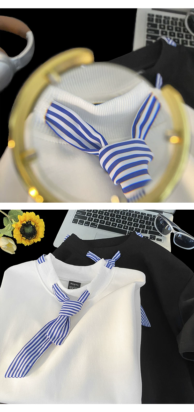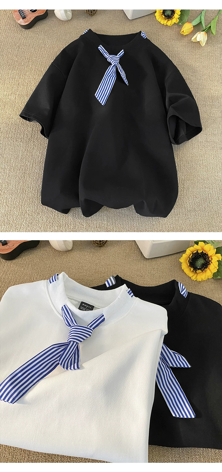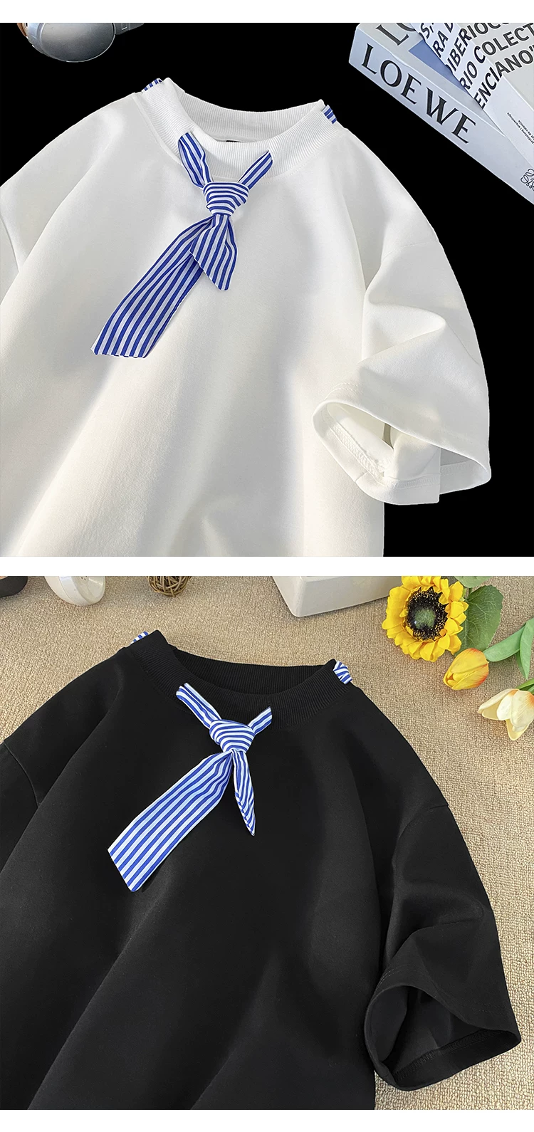 - Áo thun ngắn tay sọc kiểu Nhật dành cho nam, áo thun cổ tròn dáng rộng hợp thời trang mùa hè kiểu Mỹ.