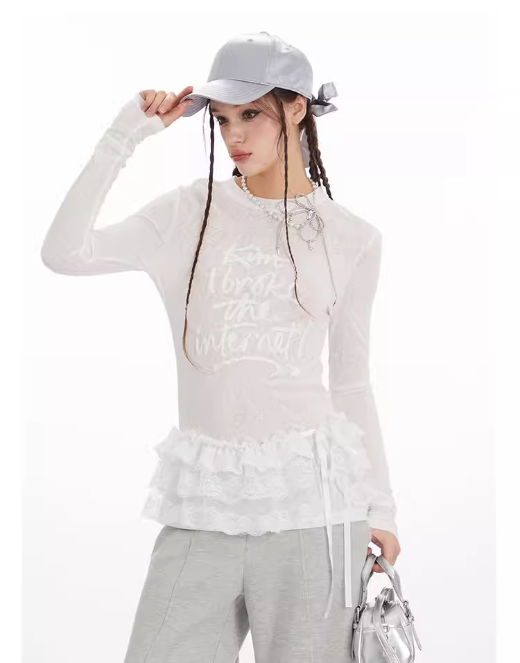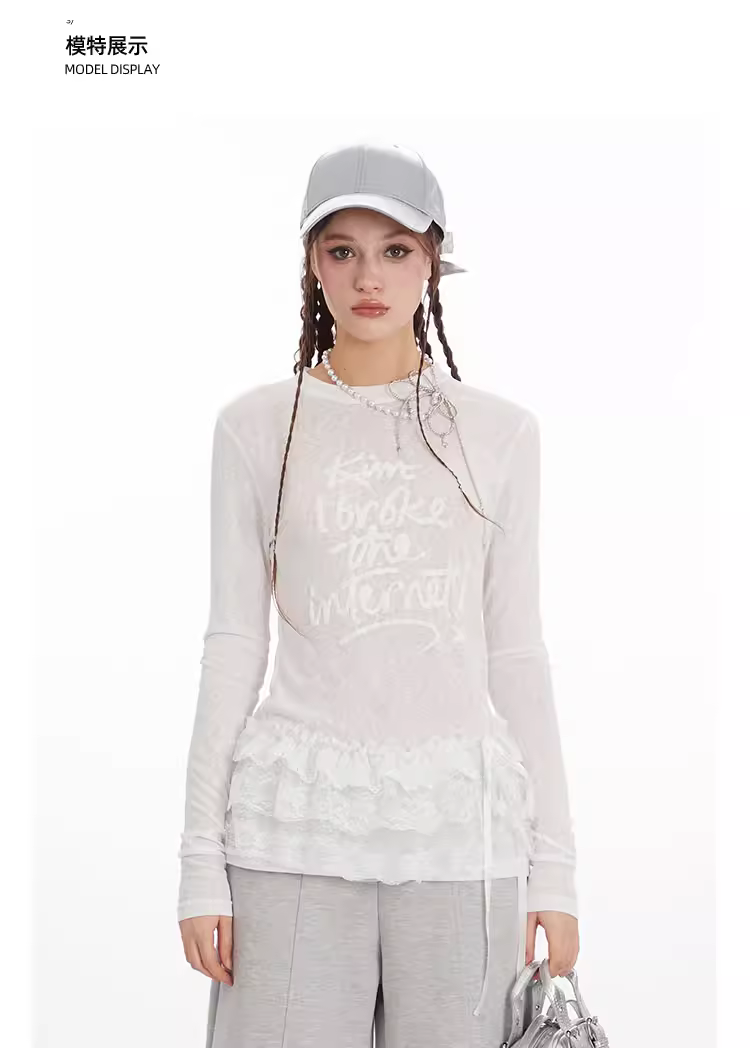 Áo thun nữ tay dài in chữ bọt xốp mỏng K787, kiểu dáng ôm body, thiết kế đa năng, áo lót