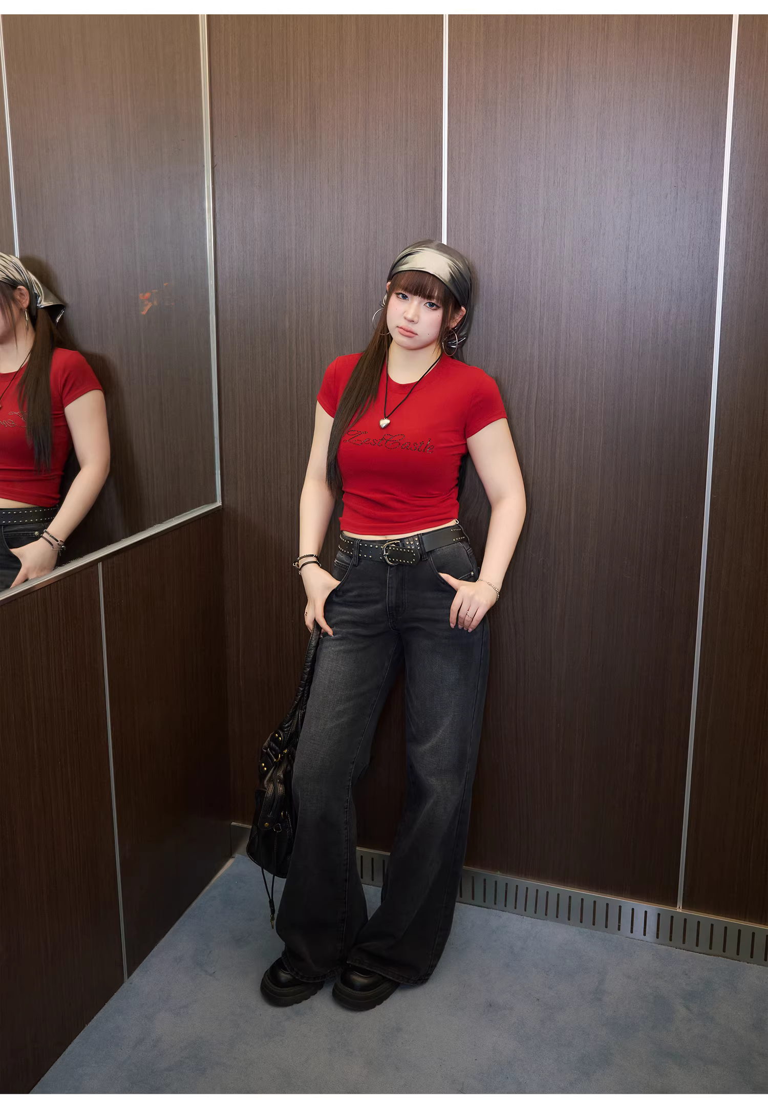 - Áo thun nữ Zhang Daren size lớn, kiểu dáng thon gọn, tay ngắn, mẫu mới 2025, màu đỏ, giúp thon eo.