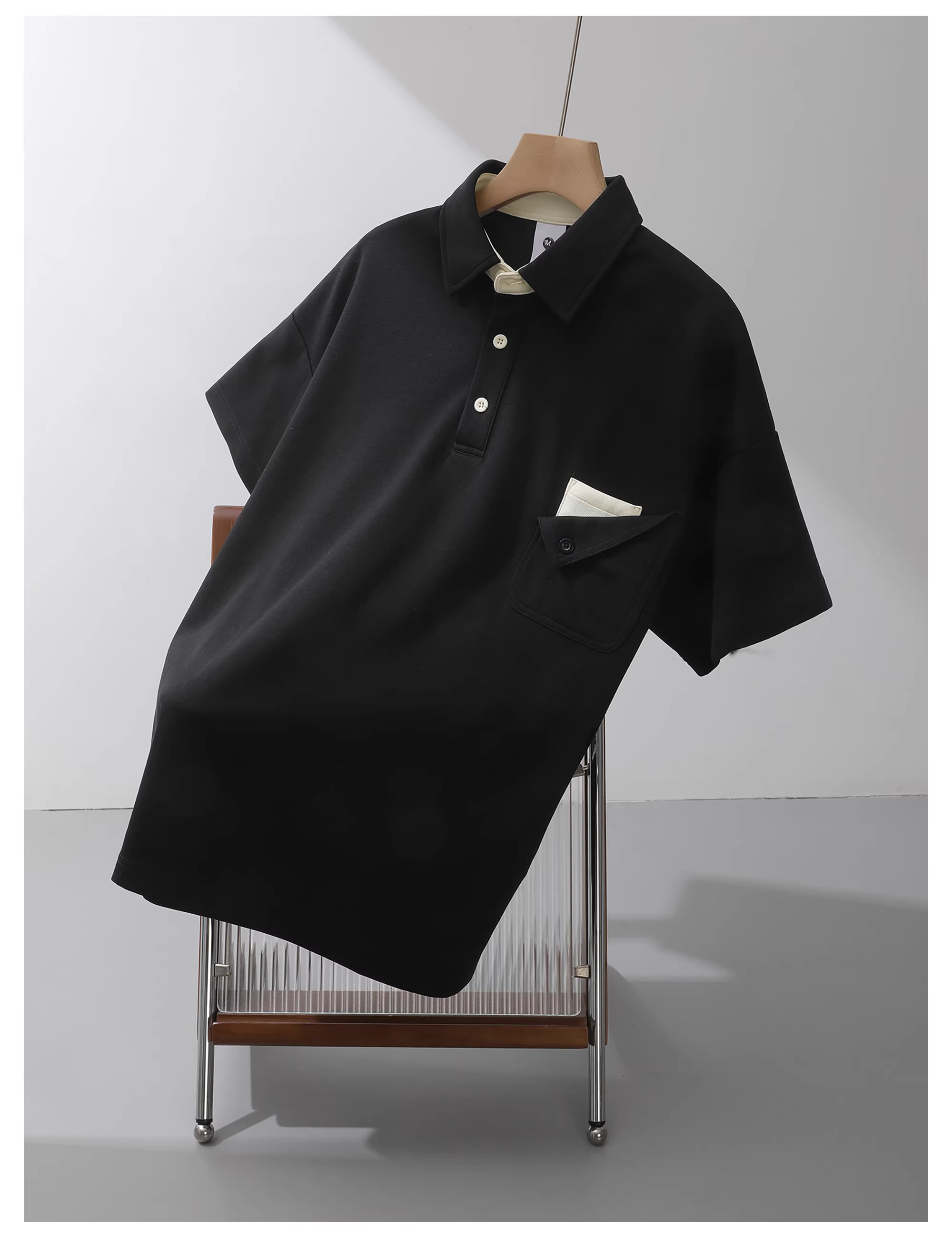 Áo thun polo ngắn tay kiểu Nhật LUUD retro dành cho nam, thương hiệu hợp thời trang mùa hè, áo thun thường ngày rộng rãi và đa năng có cổ bẻ.