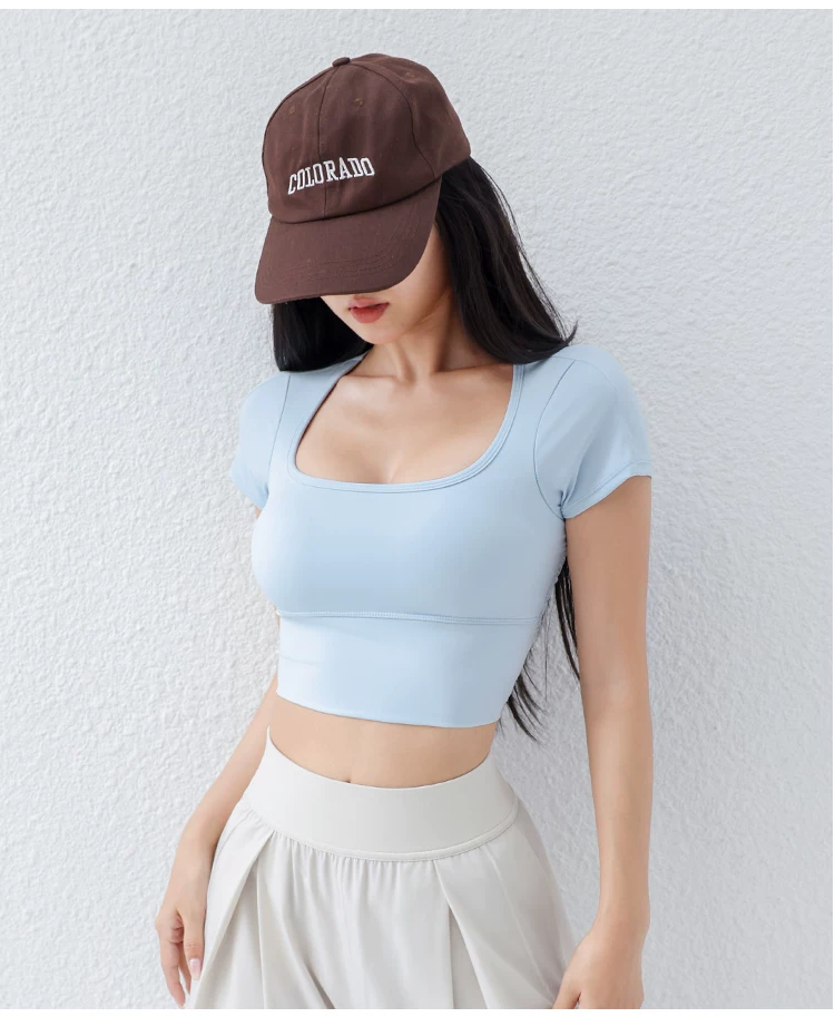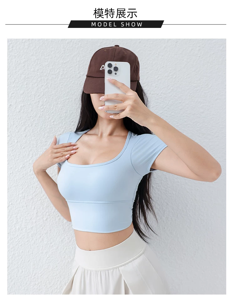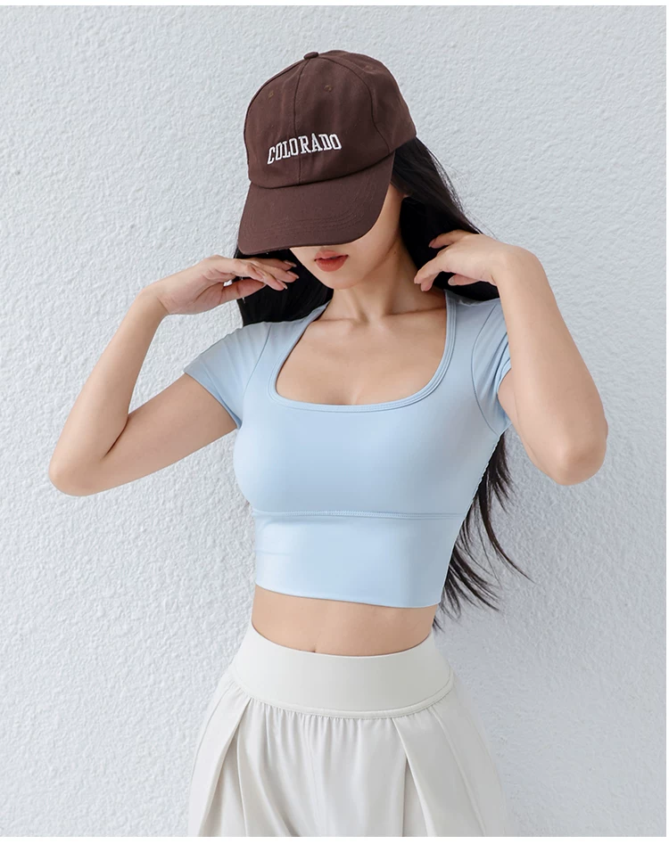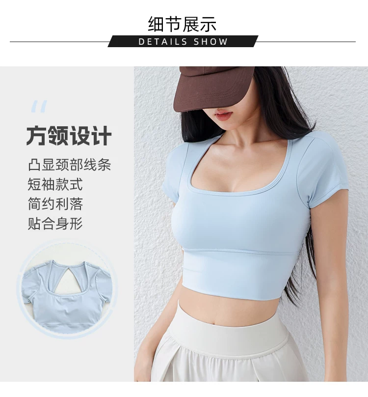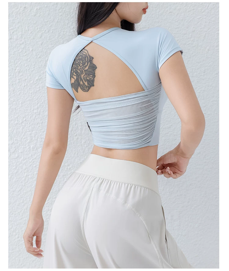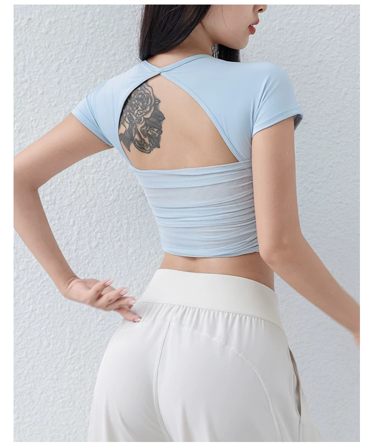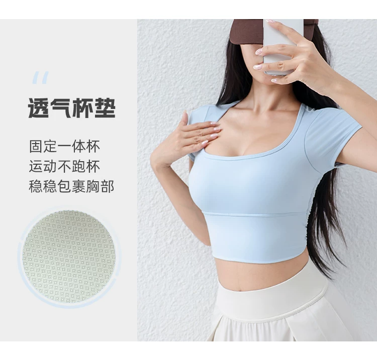 - Áo thun tập yoga có đệm ngực cho nữ, áo thể thao lưới mỏng thoáng khí, ôm vừa vặn, giảm béo, chạy bộ, tập thể dục, tay ngắn, mùa hè.